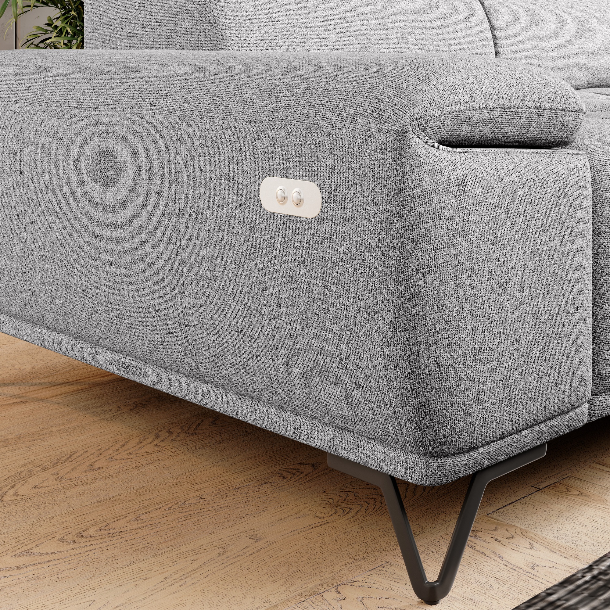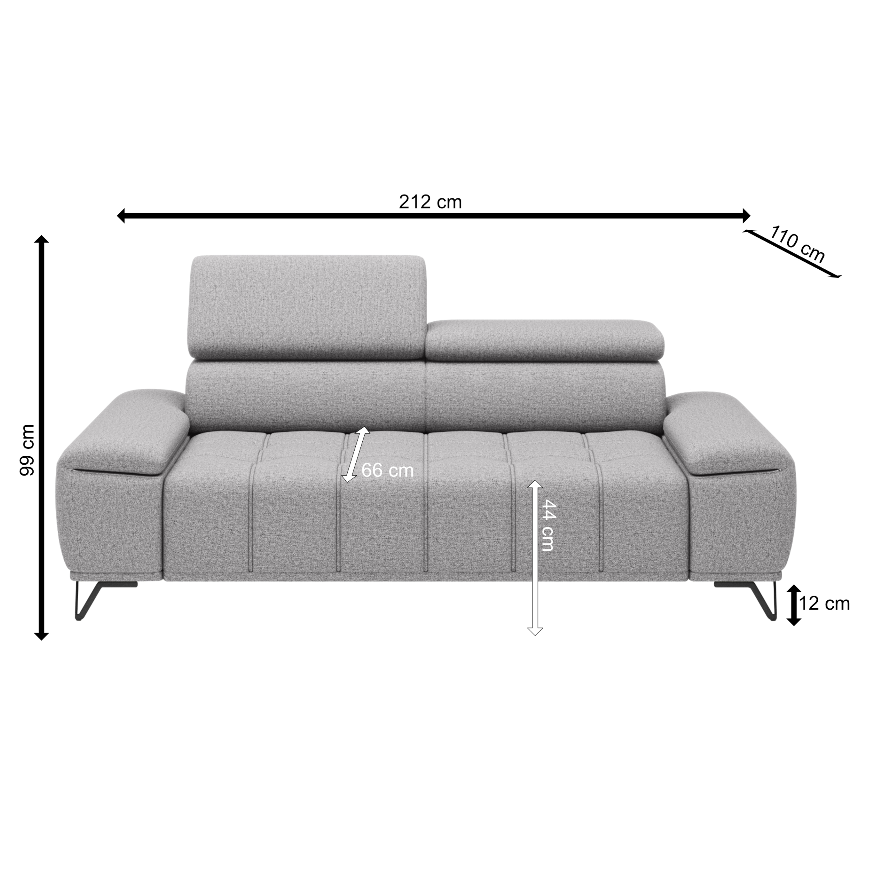 Svou velikostí poskytne dostatek prostoru pro komfortní sezení pro 3 osoby. O to pravé pohodlí se postarají také polohovatelné opěrky hlavy a elektrický vysouvací systém sedáku. Stačí jen pouhé stisknutí tlačítka a můžete si upravit hloubku sedu až o 27 cm. Tyto sofistikované funkce dovedou váš pocit z relaxace a odpočinku k dokonalosti. Vysoké kovové nožky oceníte i z praktického hlediska. Prostor pod gaučem zůstává snadno dostupný, a tak i podlaha pod ním se snadno udržuje v čistotě. Celočalouněné provedení vám dovolí umístit sedačku do prostoru i ke stěně.