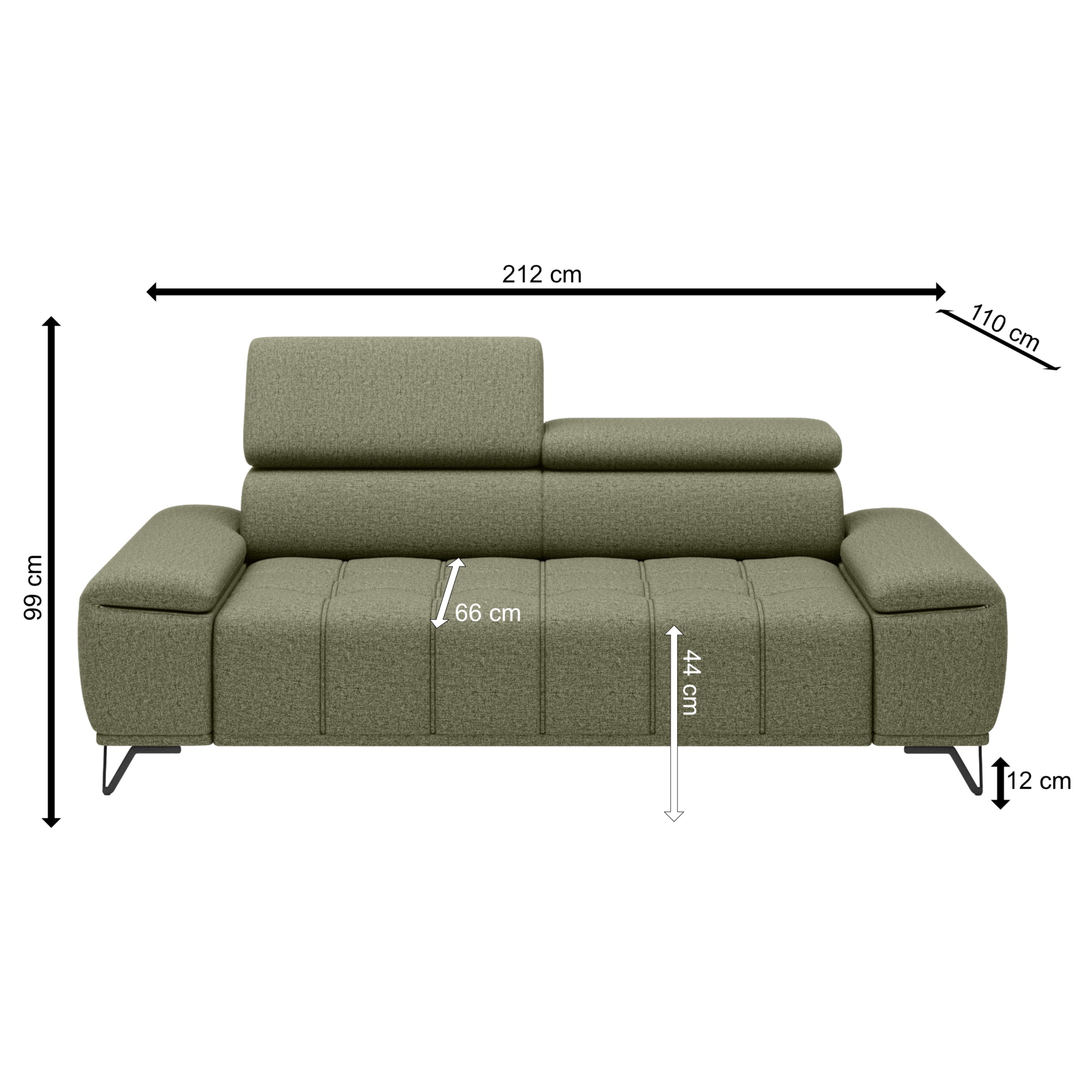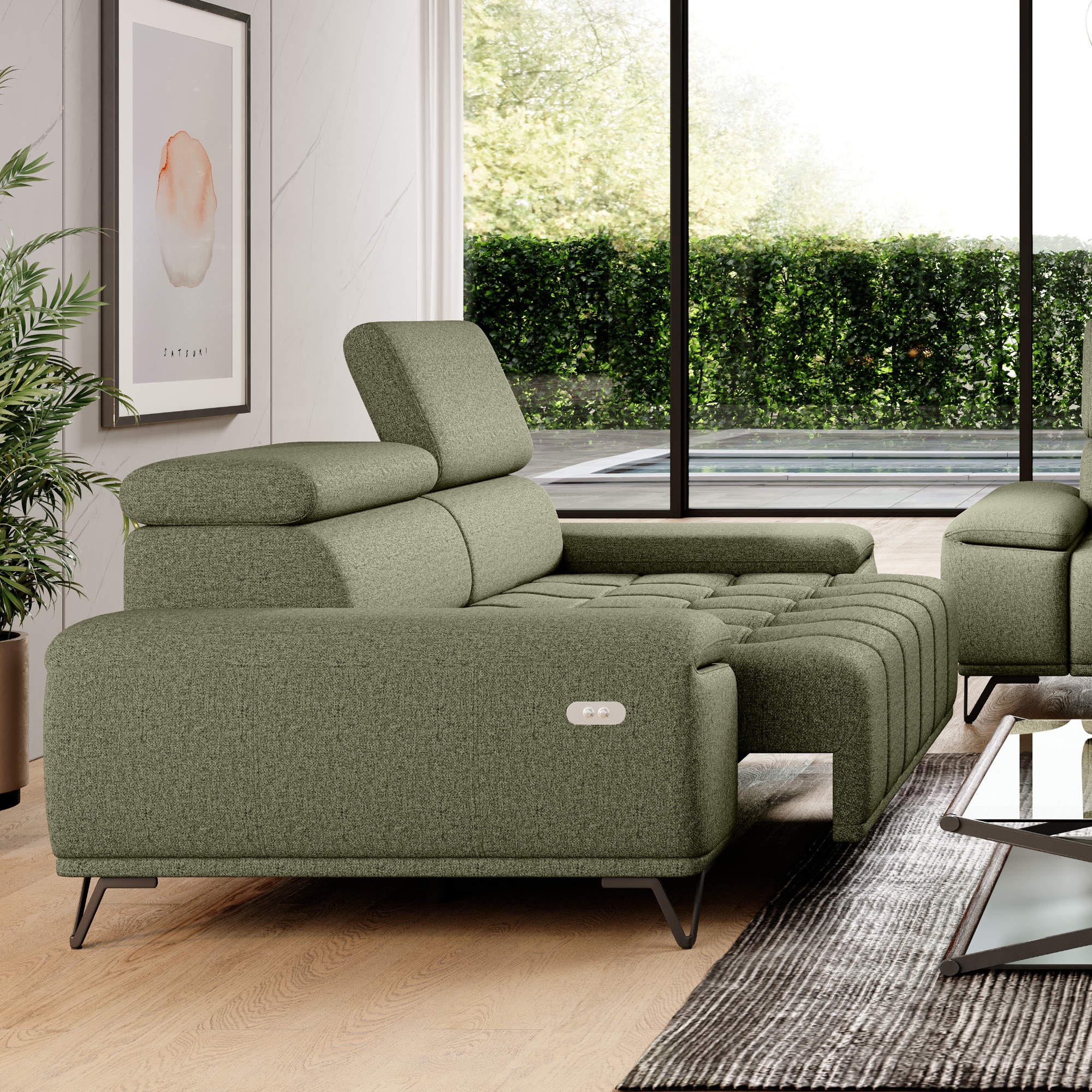 Svou velikostí poskytne dostatek prostoru pro komfortní sezení pro 3 osoby. O to pravé pohodlí se postarají také polohovatelné opěrky hlavy a elektrický vysouvací systém sedáku. Stačí jen pouhé stisknutí tlačítka a můžete si upravit hloubku sedu až o 27 cm. Tyto sofistikované funkce dovedou váš pocit z relaxace a odpočinku k dokonalosti. Vysoké kovové nožky oceníte i z praktického hlediska. Prostor pod gaučem zůstává snadno dostupný, a tak i podlaha pod ním se snadno udržuje v čistotě. Celočalouněné provedení vám dovolí umístit sedačku do prostoru i ke stěně.