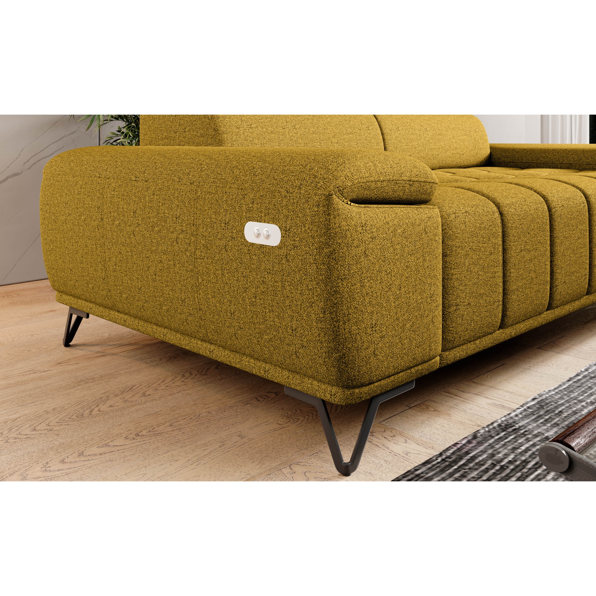 Svou velikostí poskytne dostatek prostoru pro komfortní sezení pro 3 osoby. O to pravé pohodlí se postarají také polohovatelné opěrky hlavy a elektrický vysouvací systém sedáku. Stačí jen pouhé stisknutí tlačítka a můžete si upravit hloubku sedu až o 27 cm. Tyto sofistikované funkce dovedou váš pocit z relaxace a odpočinku k dokonalosti. Vysoké kovové nožky oceníte i z praktického hlediska. Prostor pod gaučem zůstává snadno dostupný, a tak i podlaha pod ním se snadno udržuje v čistotě. Celočalouněné provedení vám dovolí umístit sedačku do prostoru i ke stěně.