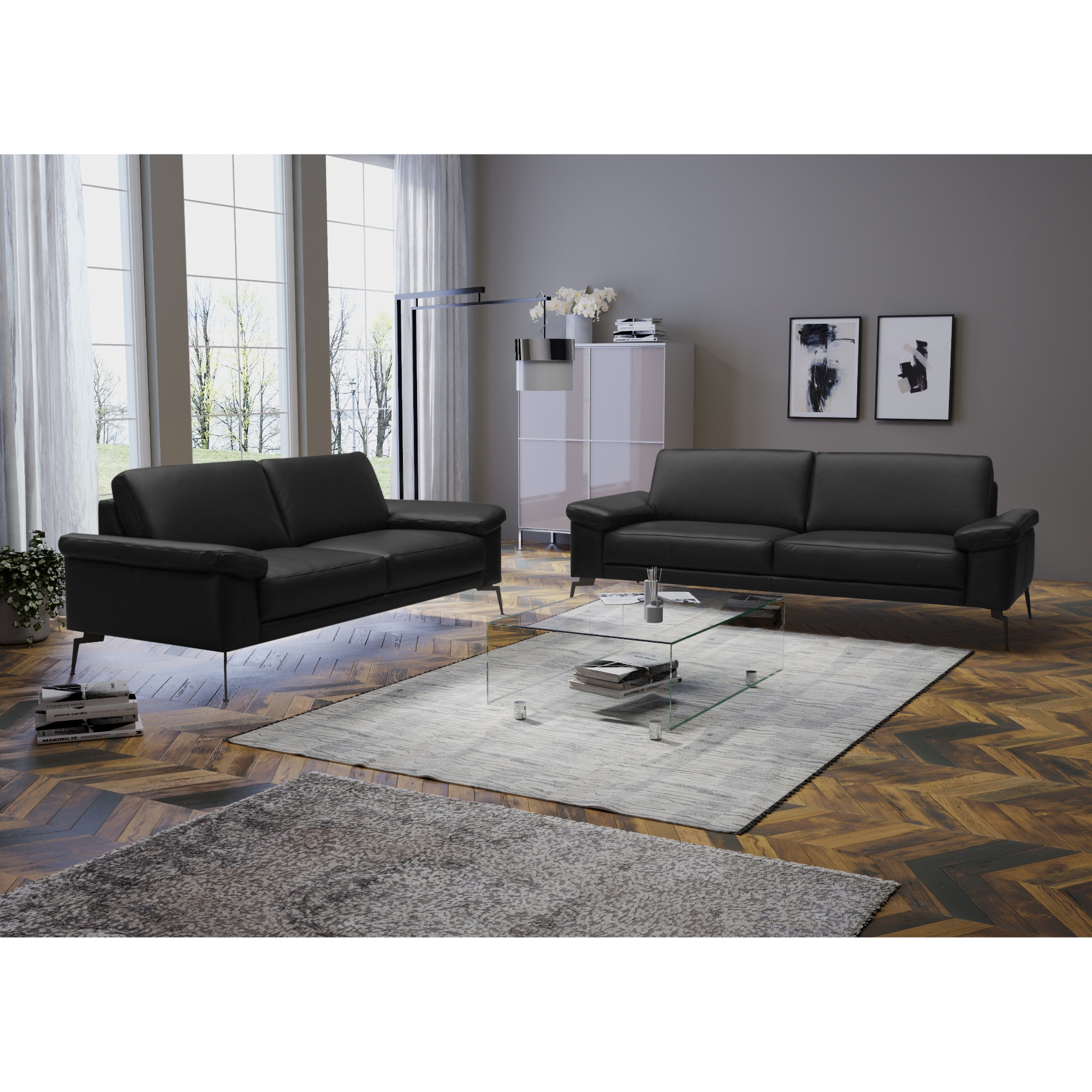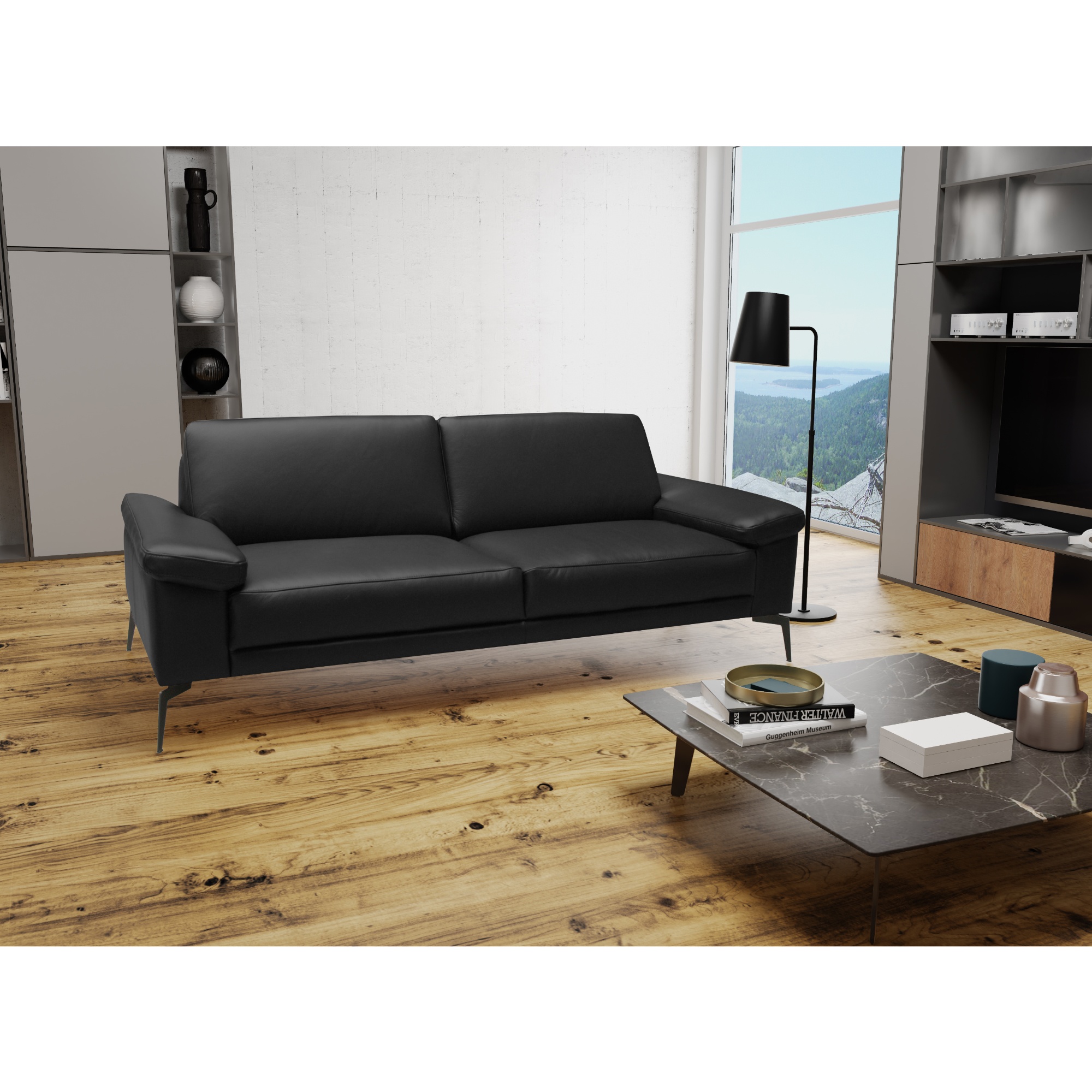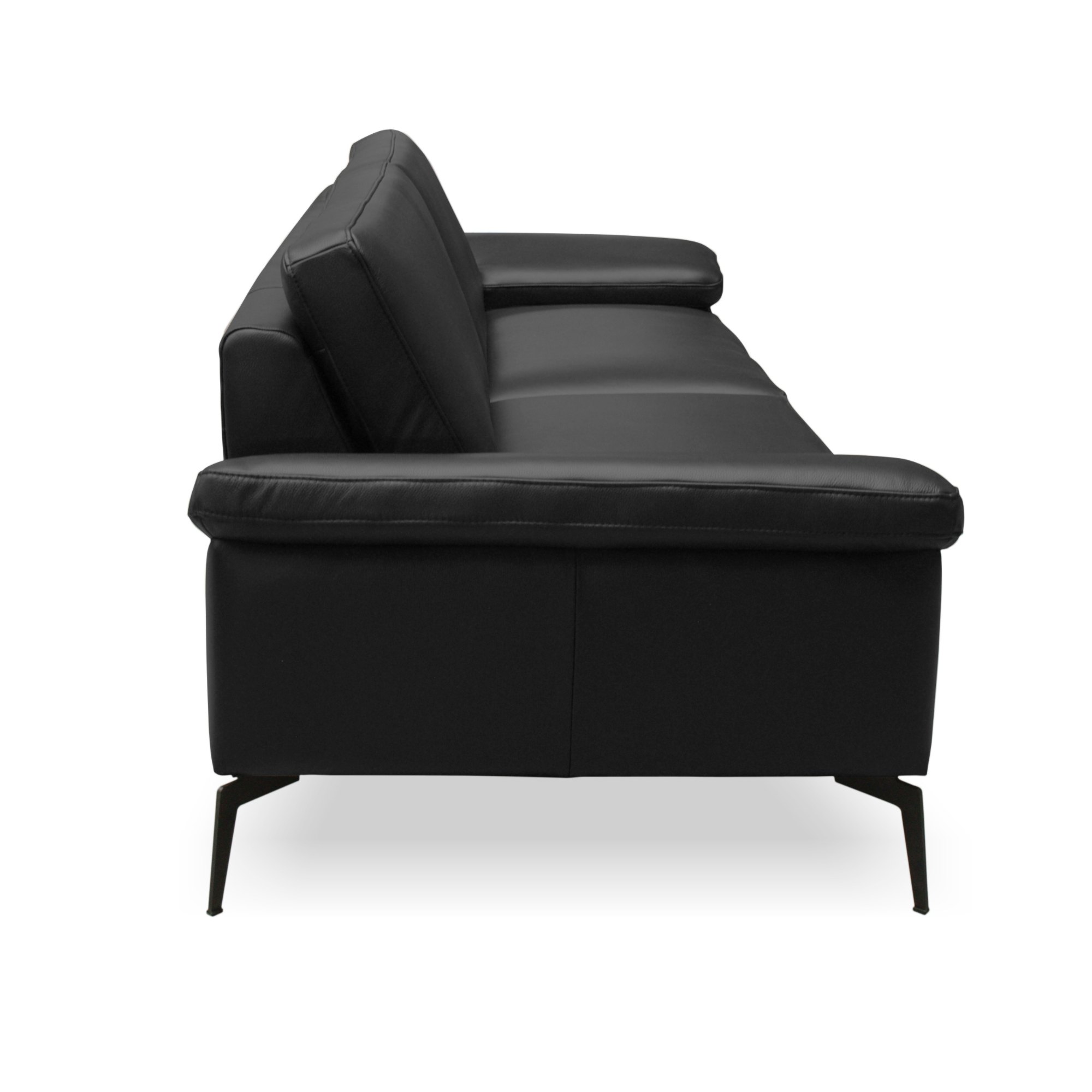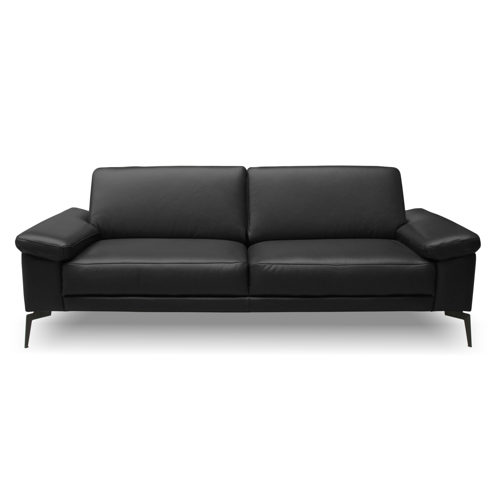 Velkou předností této pohovky je její potah z pravé kůže, což přidává na celkovém luxusním vzhledu. Dalším praktickým doplňkem jsou vysoké kovové nožky černé barvy. Díky nim je prostor pod pohovkou přístupný, a tak se pod ní snadno udržuje pořádek. Pohovka je vyvedena v celočalouněném provedení, takže ji můžete umístit i do prostoru, pokud vám to dispozice obývacího pokoje dovolí.