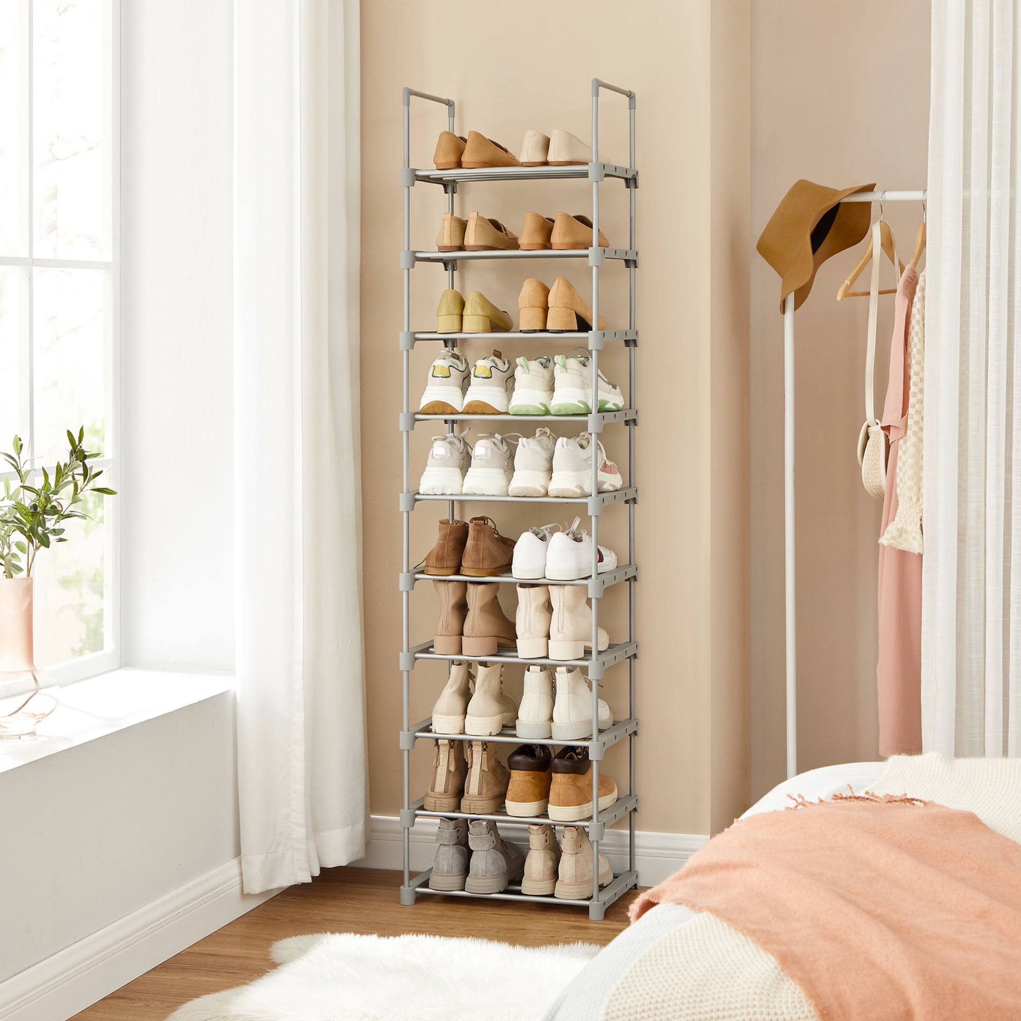 Zabírá málo místa a přesto 10 odstranitelných polic nabízí bohatý odkládací prostor. Díky pevné konstrukci je stohovatelný i do výšky a můžete si tak vytvořit policový úložný systém dle vašich představ.