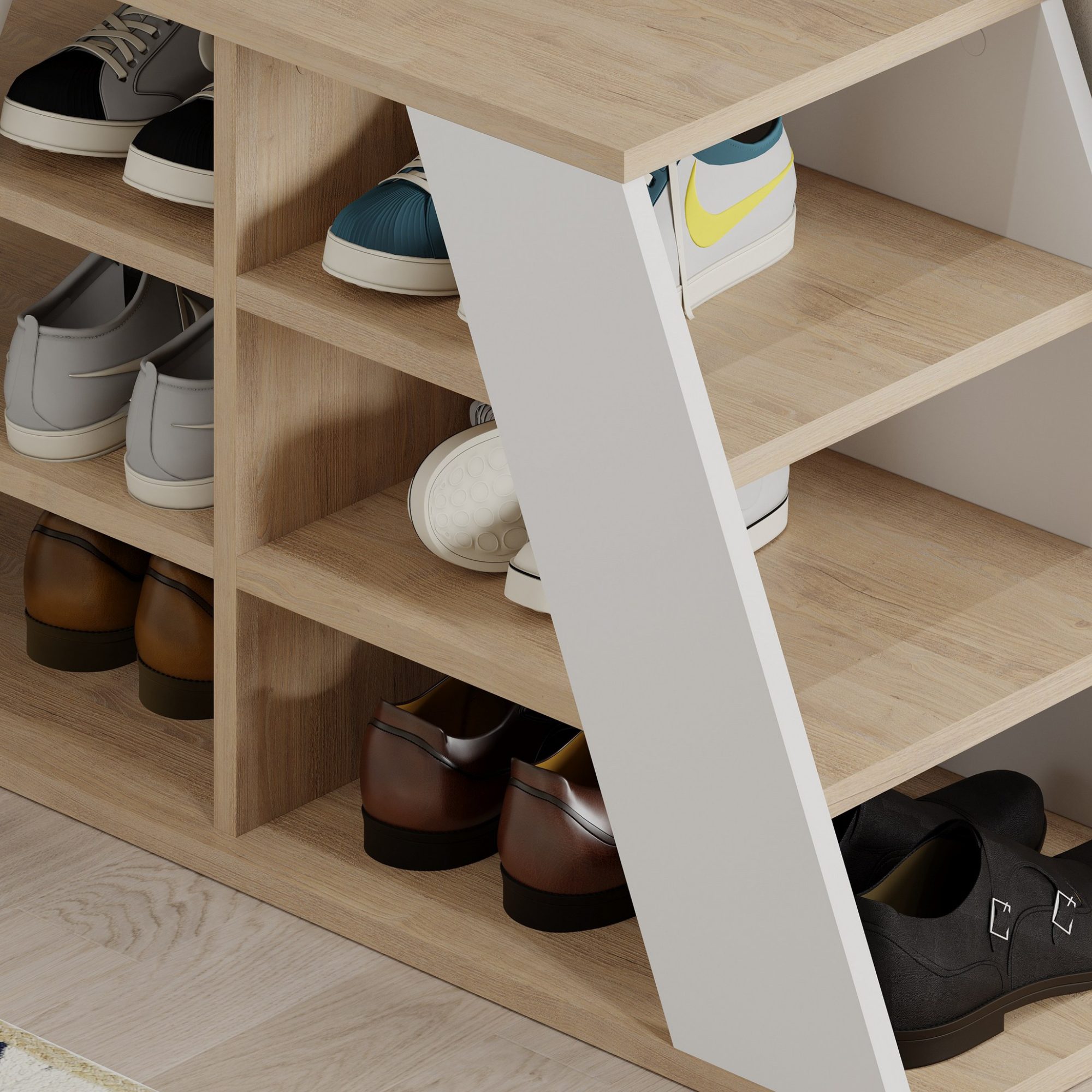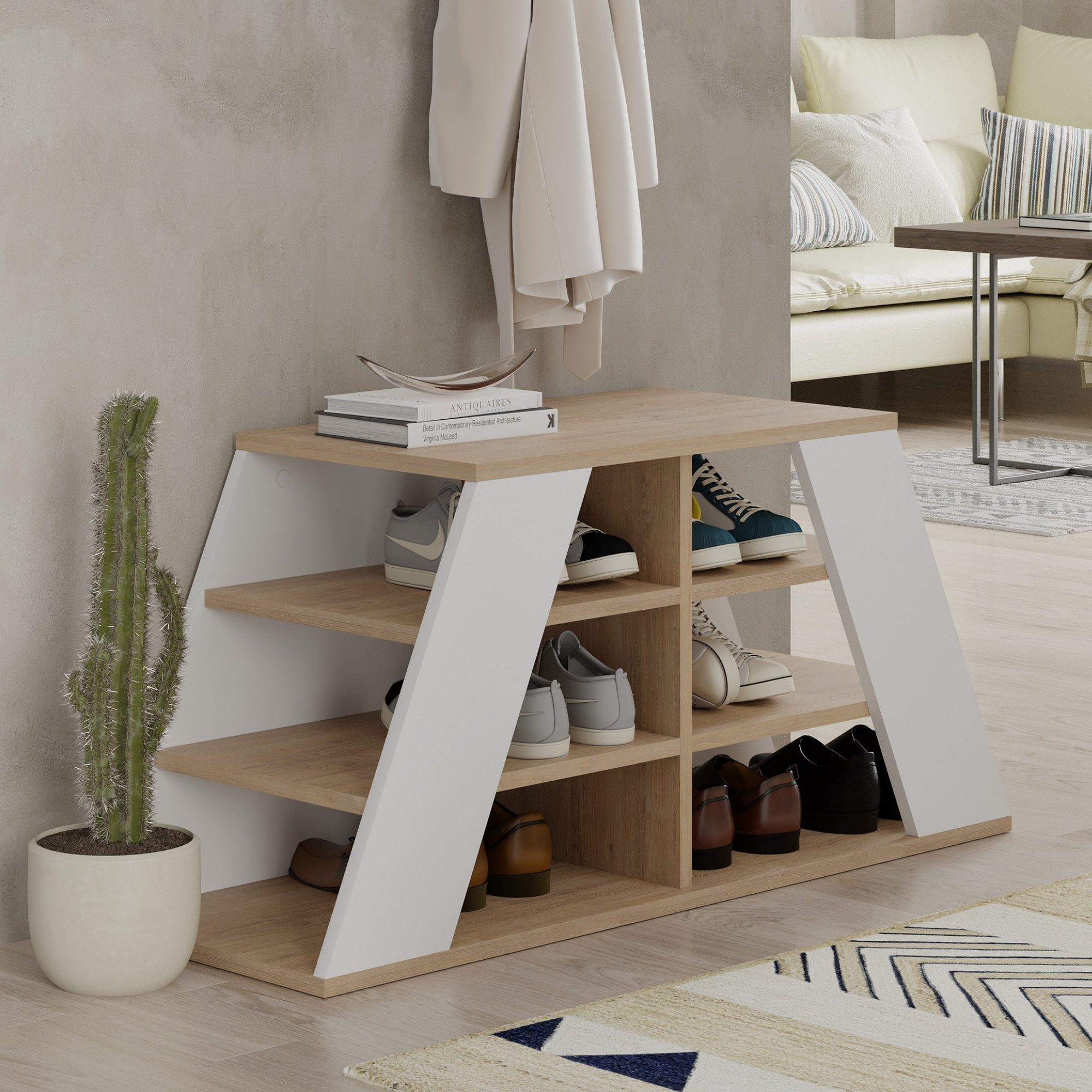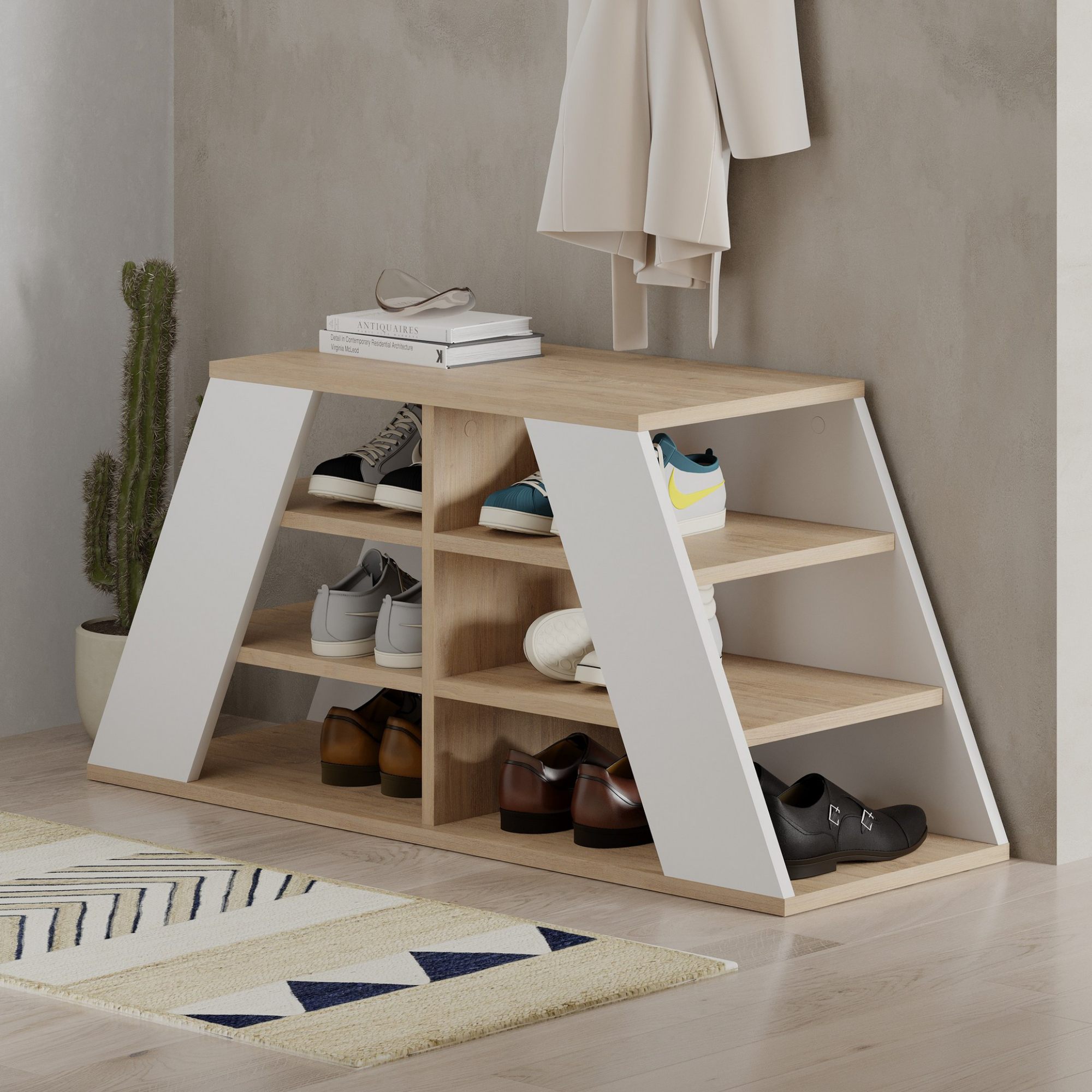 Praktický botník PYRAMID vyvedený v moderním stylu pomůže udržet vaši předsíň uklizenou a organizovanou.