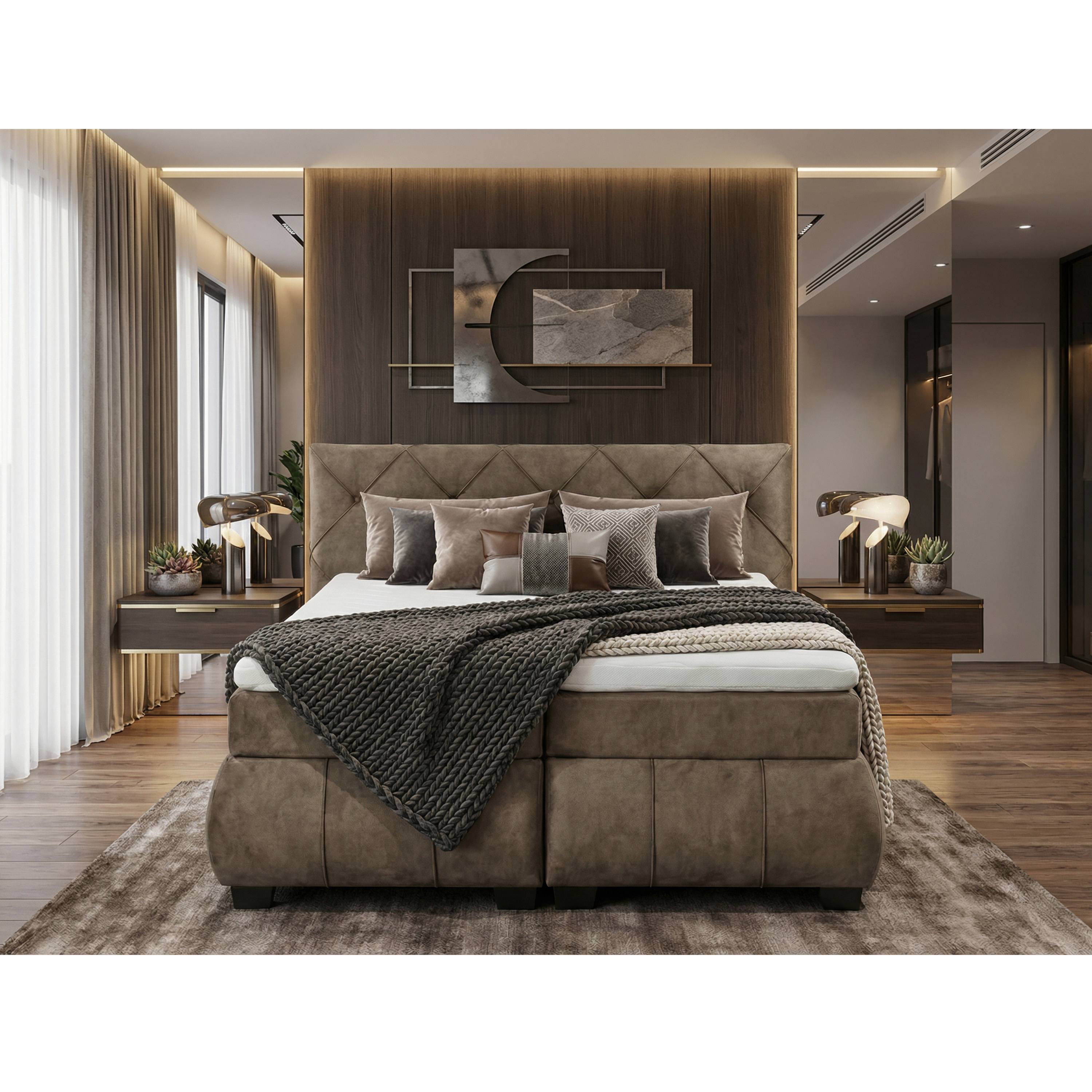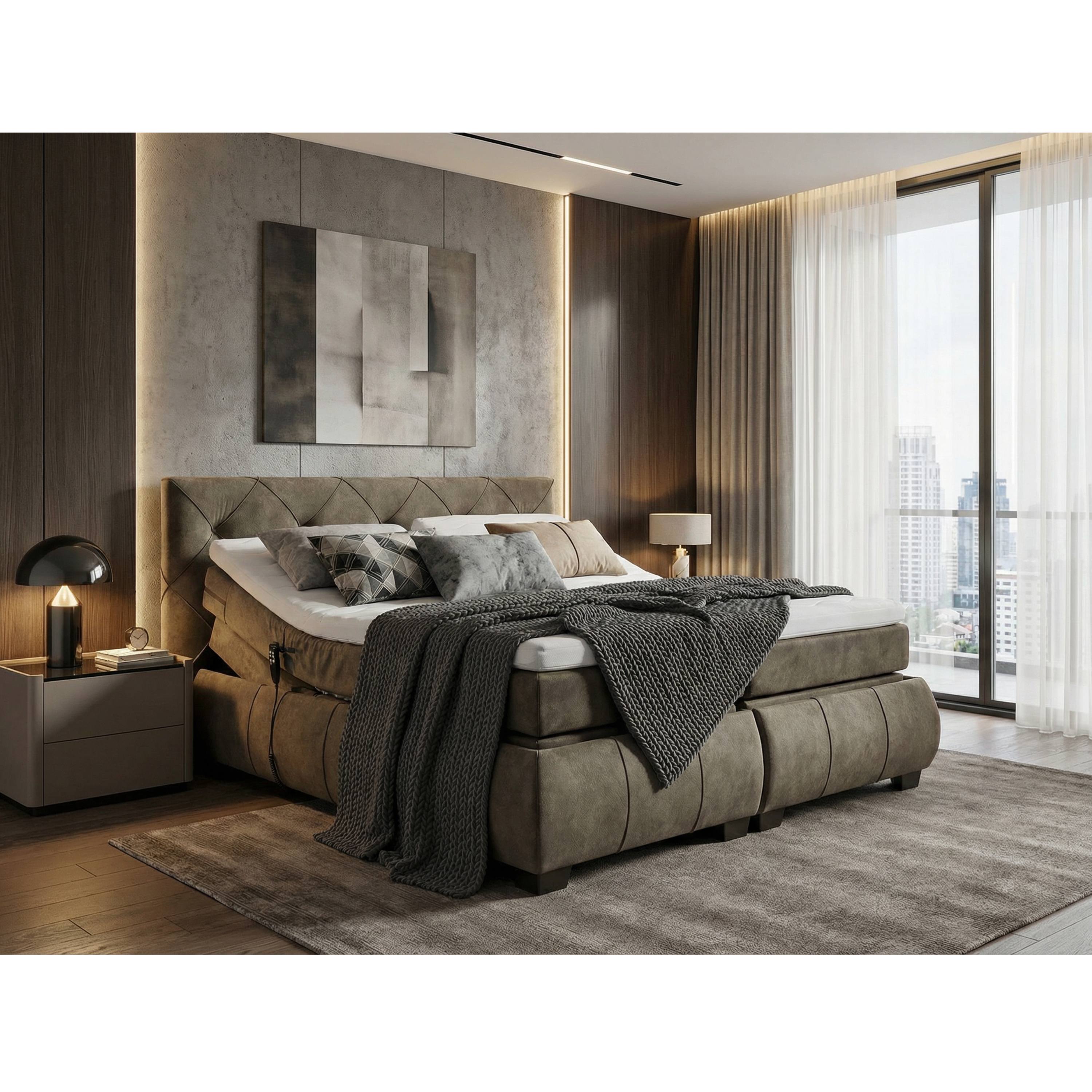 Polohovací postel s matrací a topperem SALENA - hnědošedá, 180x200 cm