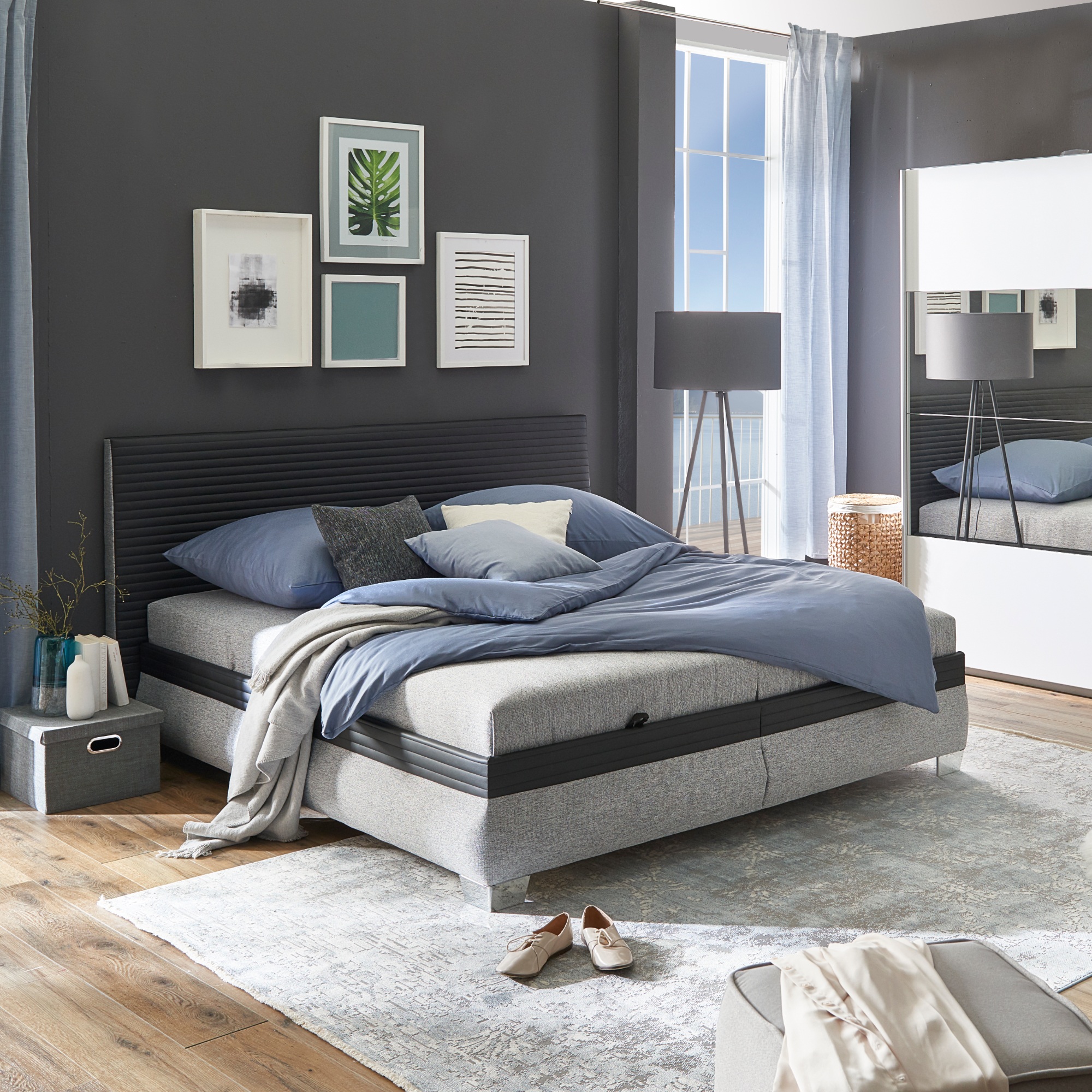 Polohovací postel s matrací GENOVIA - černá/šedá, 180x200 cm