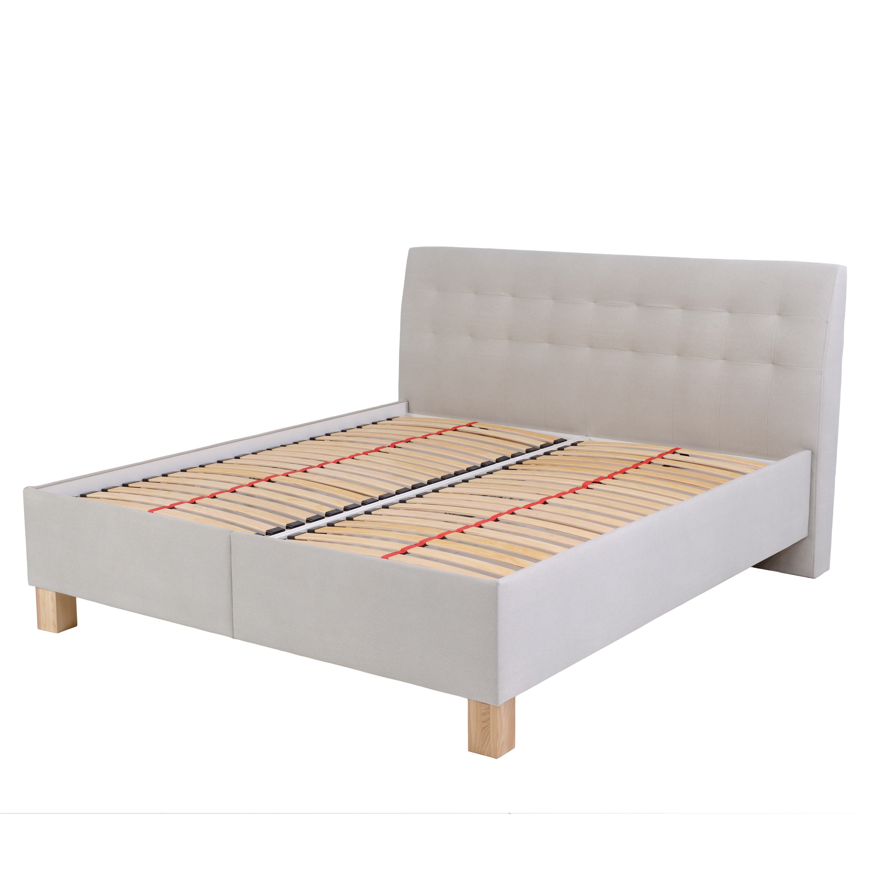 Dominantním prvkem je vysoké čelo s decentním dekorativním prošíváním, které kromě estetické funkce umožňuje pohodlné opření. Postel je dodávána včetně 2 lamelových roštů, které jsou polohovatelné pod hlavou do 5 různých relaxačních poloh a navíc u nohou je lze zvednout do zvýšené pozice pro uvolnění unavených nohou. Postel nabízí také praktický úložný prostor v rámu se snadným čelním přístupem. Celkový vzhled postele podtrhují nohy z bukového dřeva v přírodním odstínu.
