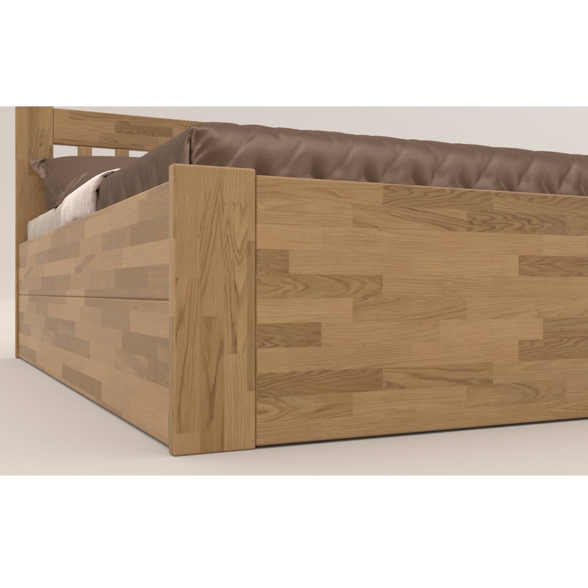 Konstrukce je vyrobena z kvalitního masivního dřeva, které se může pochlubit svojí pevností, odolností, vysokou nosností a dlouhou životností. Povrchová olejovaná úprava jeho životnost ještě prodlužuje a také zvyšuje odolnost proti oděru. Díky této úpravě nejsou škrábance tolik vidět a dají se snadněji odstranit. Postel je dodávána bez matrace a roštu, ale věříme, že si ty ideální pro zkompletování lůžka vyberete z našeho širokého sortimentu.