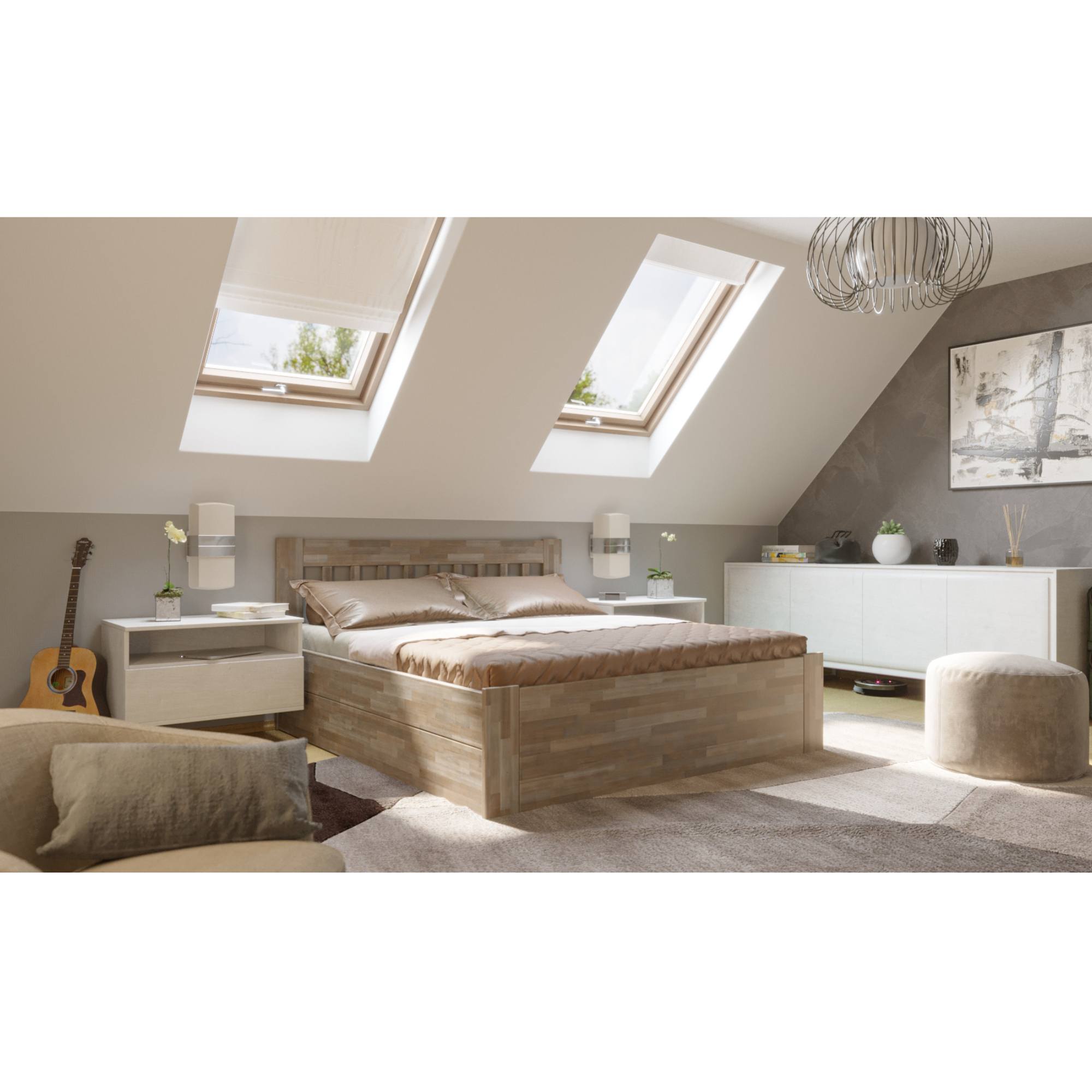 Postel APOLONIE BOX II - buk/šedá, 160x200 cm