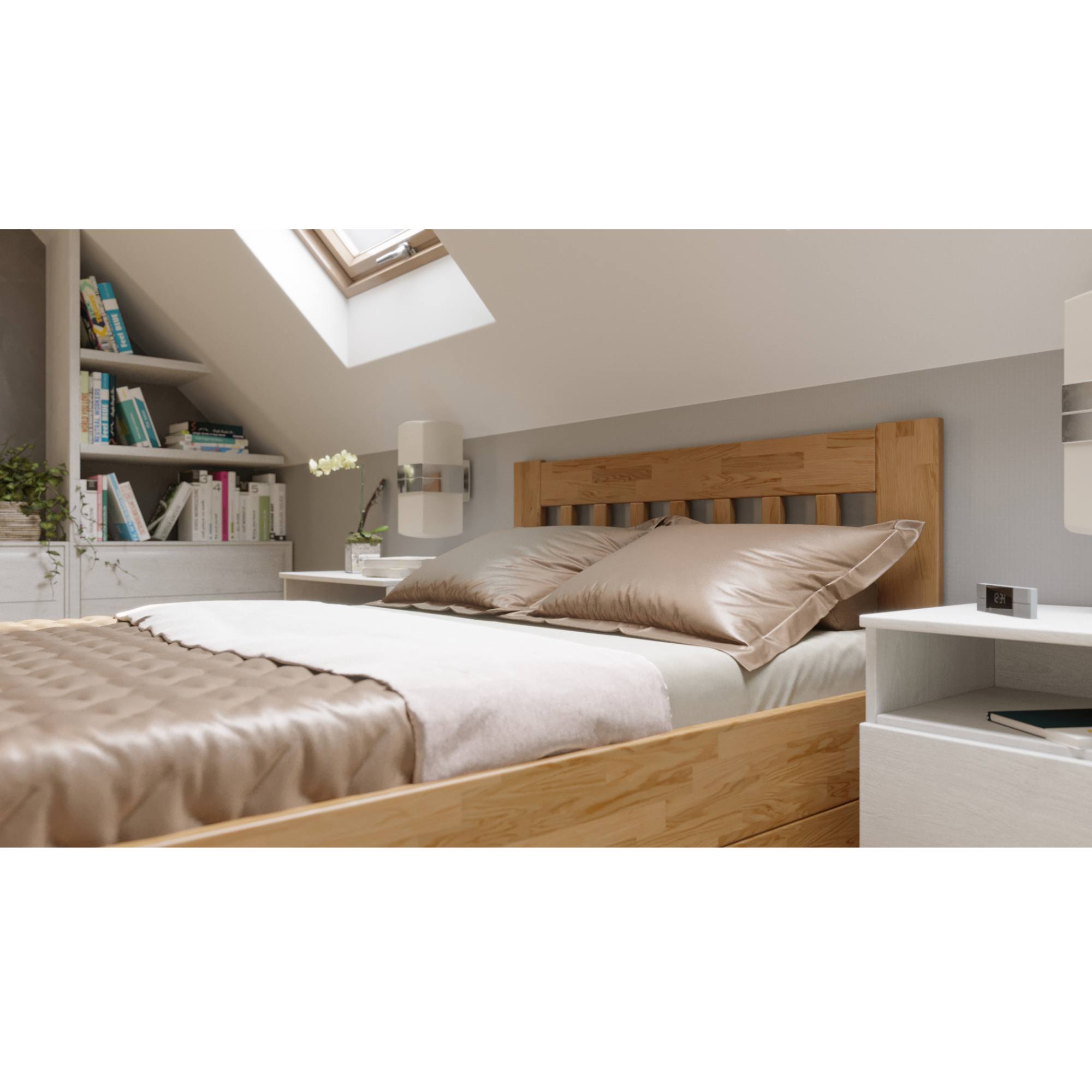 - Doplňující poznámka: Postel z dubového masivního dřeva je mořená do odstínu světlý ořech. Nosnost pro jednu ložnou plochu 98 kg.