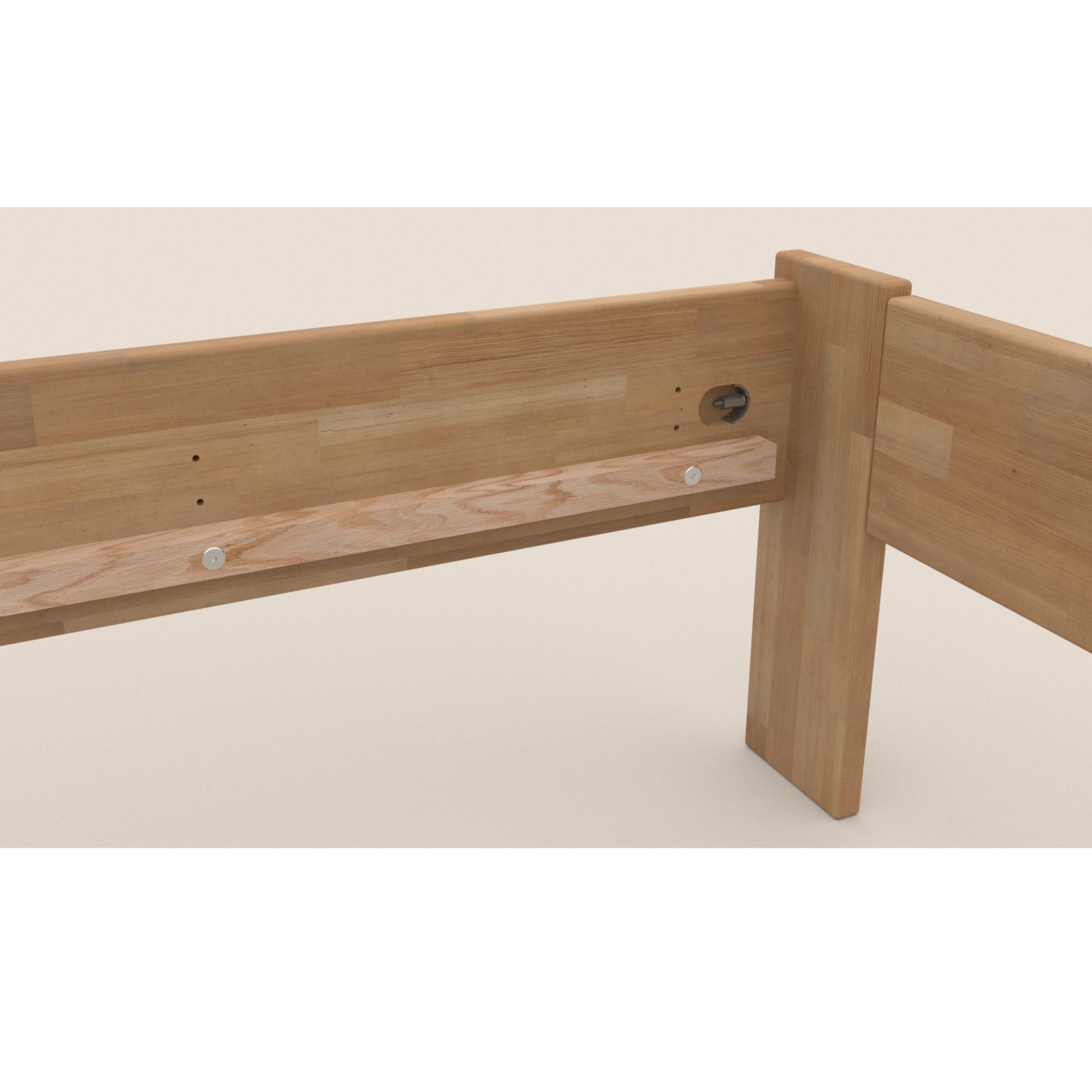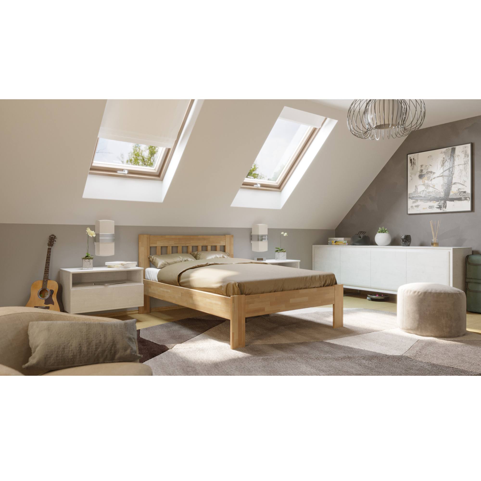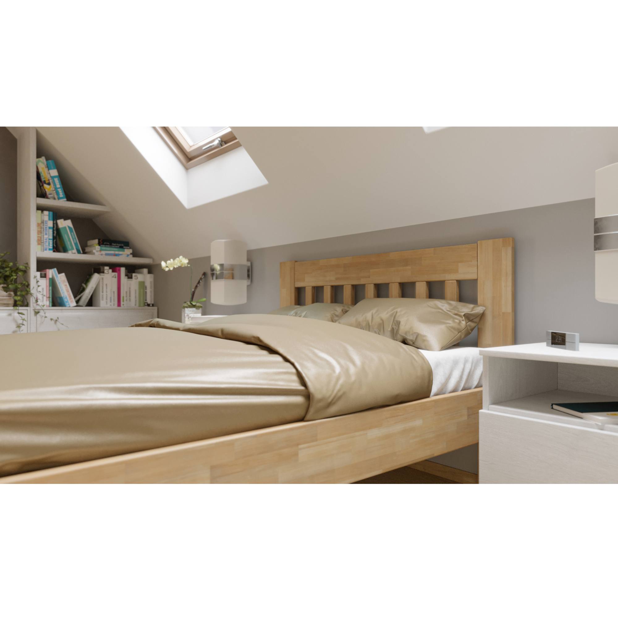 Konstrukce je vyrobena z kvalitního, masivního bukového či dubového dřeva v závislosti na jednotlivých variantách postele. Dřevo se může pochlubit svojí pevností, odolností, vysokou nosností a dlouhou životností. Povrchová olejovaná úprava jeho životnost ještě prodlužuje a také zvyšuje odolnost proti oděru. Díky této úpravě nejsou škrábance tolik vidět a dají se snadněji odstranit. Pod postelí se vám bude snadno uklízet díky vysokým, pevným noháma projede pod ní i robotický vysavač. Postel je dodávána bez matrace a roštu, ale věříme, že si ty ideální pro zkompletování lůžka vyberete právě z našeho širokého sortimentu.