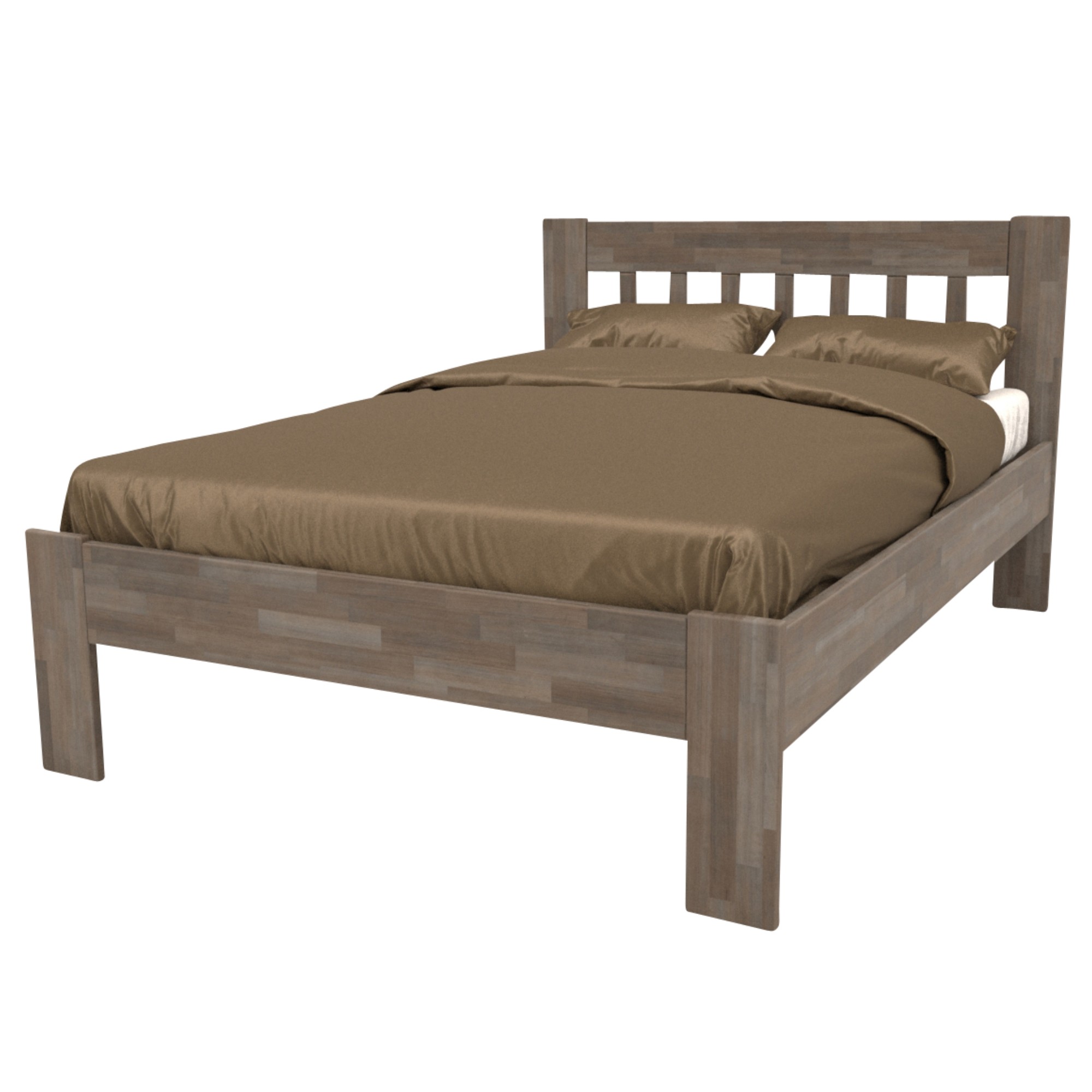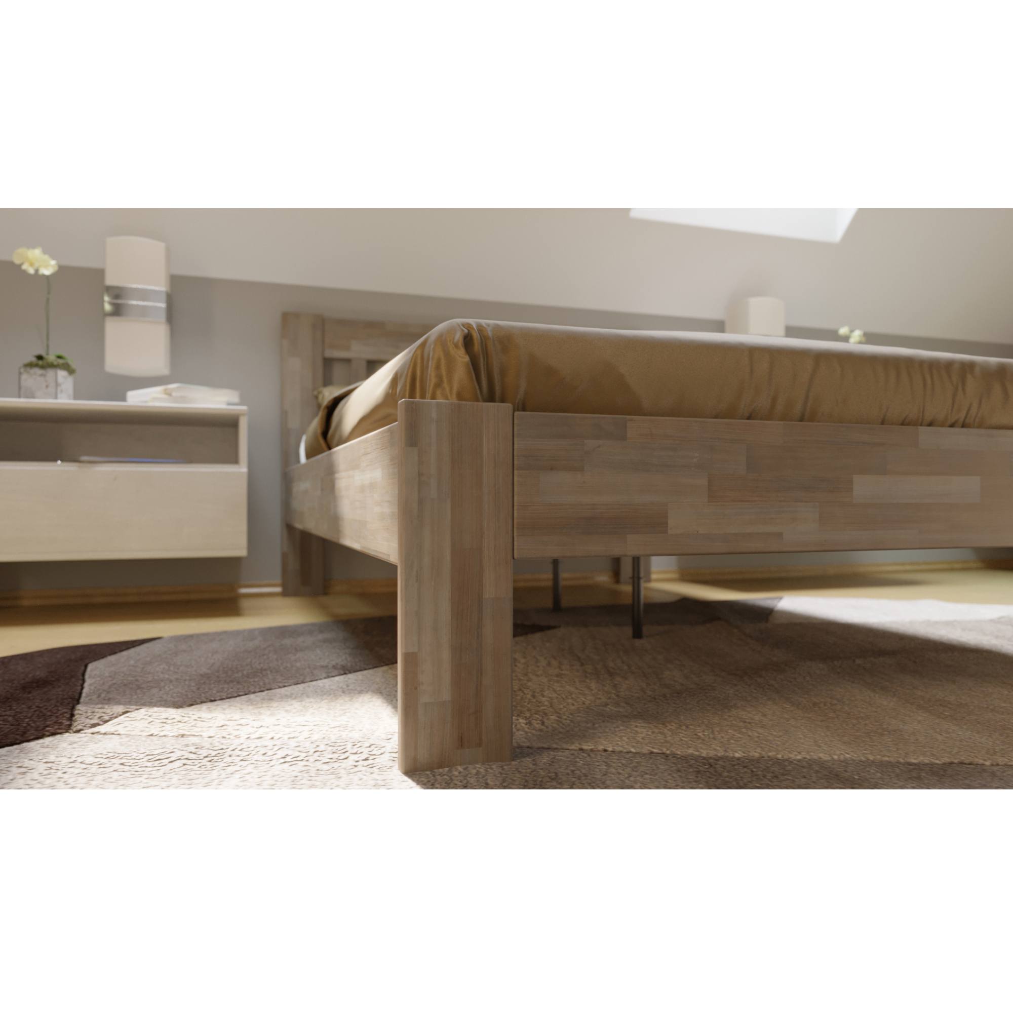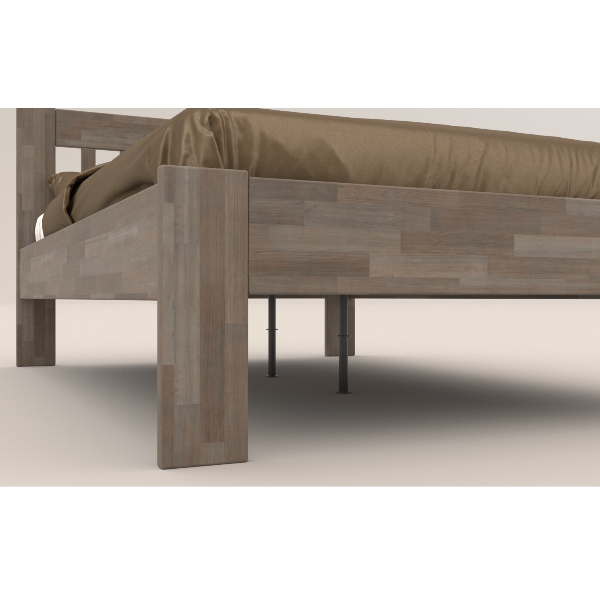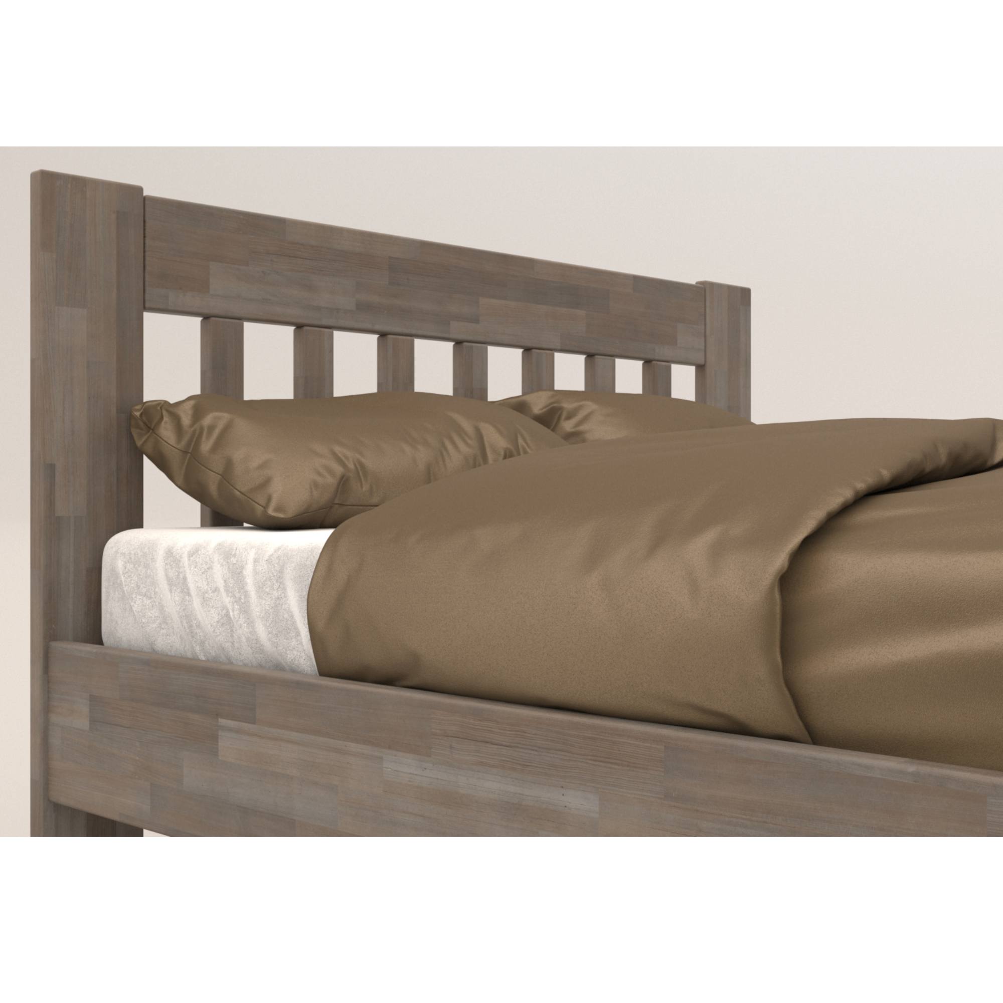 - Doplňující poznámka: Postel z bukového masivního dřeva je mořená do šedého odstínu. Maximální nosnost celé postele je 195 kg.