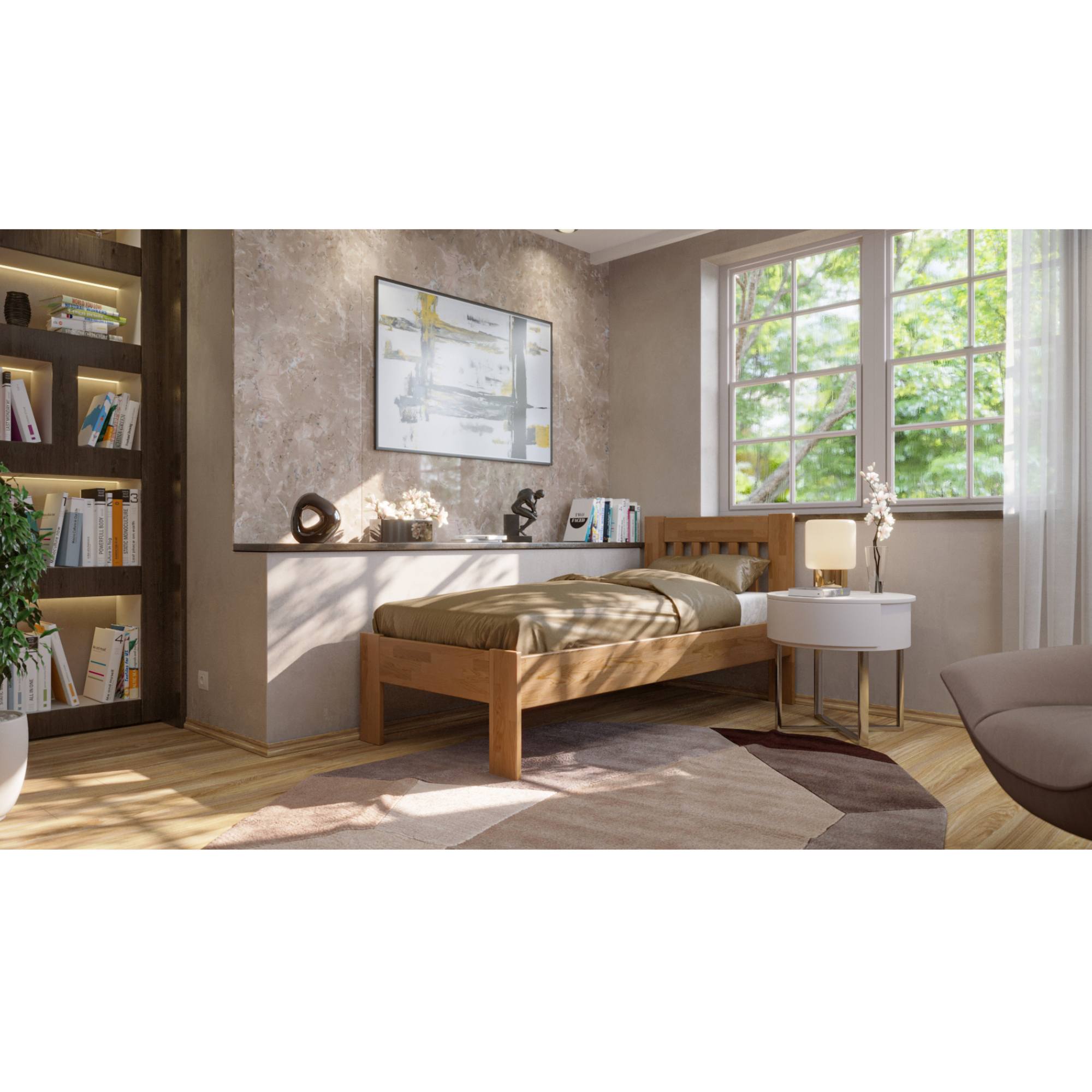 Jednolůžková postel APOLONIE I se díky svému minimalistickému, nadčasovému provedení hodí téměř do jakéhokoli stylu interiéru.