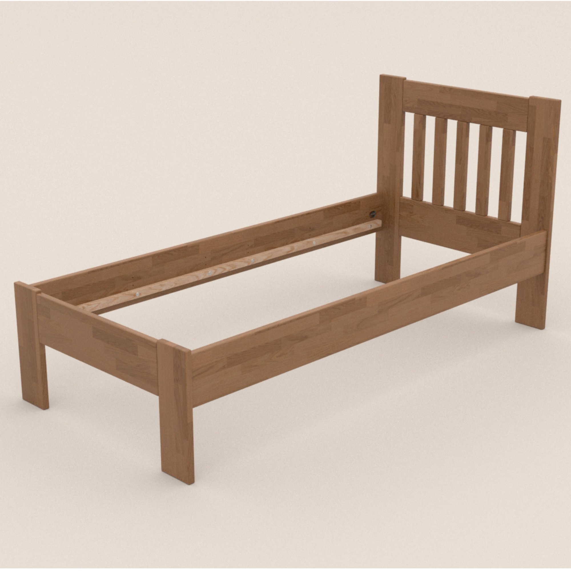 - Doplňující poznámka: Postel z dubového masivního dřeva je mořená do odstínu světlý ořech. Maximální nosnost celé postele je 130 kg.