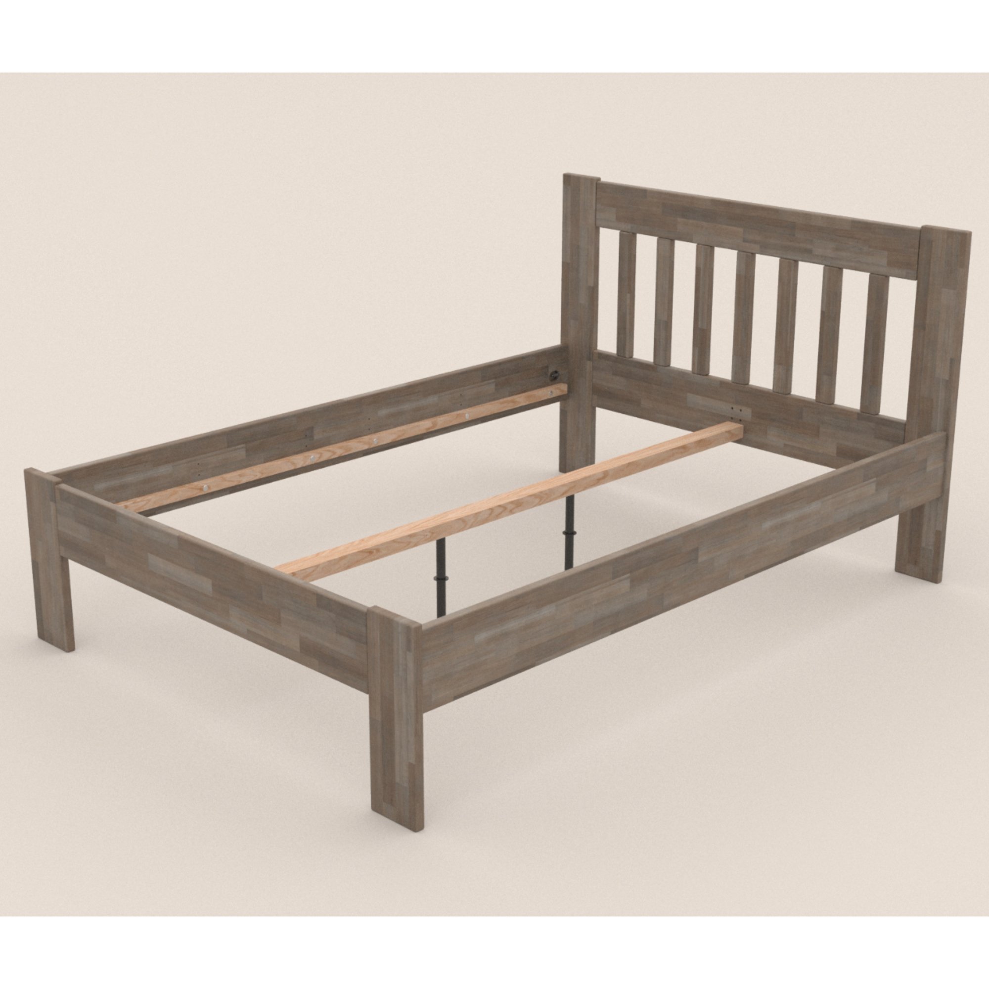 - Doplňující poznámka: Postel z bukového masivního dřeva je mořená do šedého odstínu. Nosnost 98 kg pro jednu ložnou plochu.