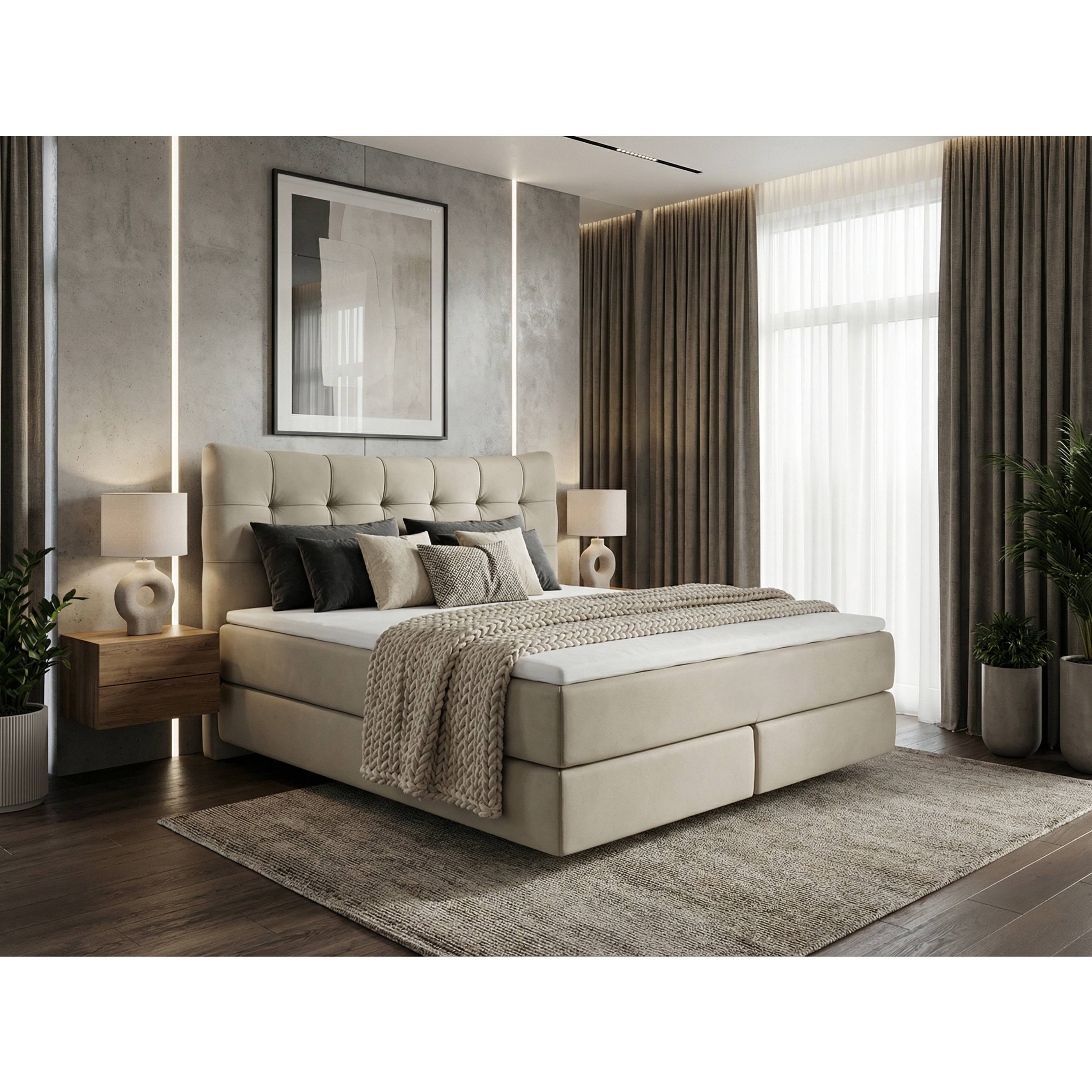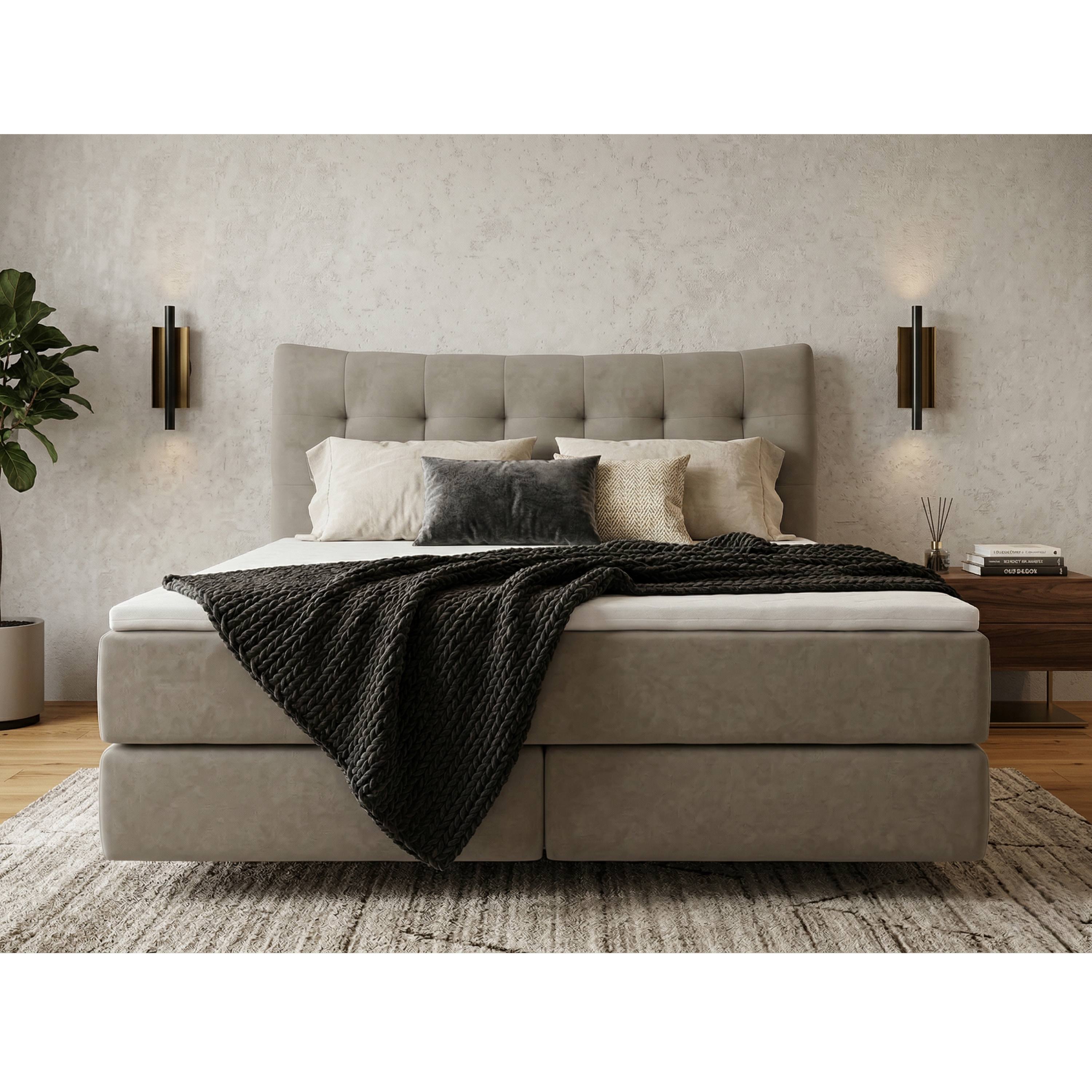 Postel boxspring LIMONE - šedobéžová, 140x200 cm