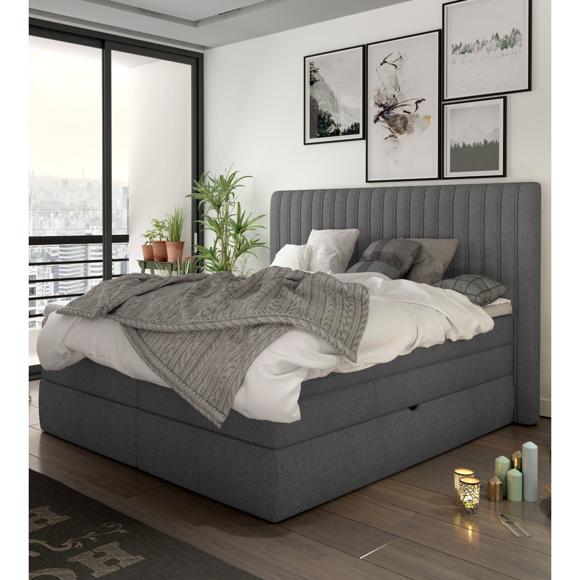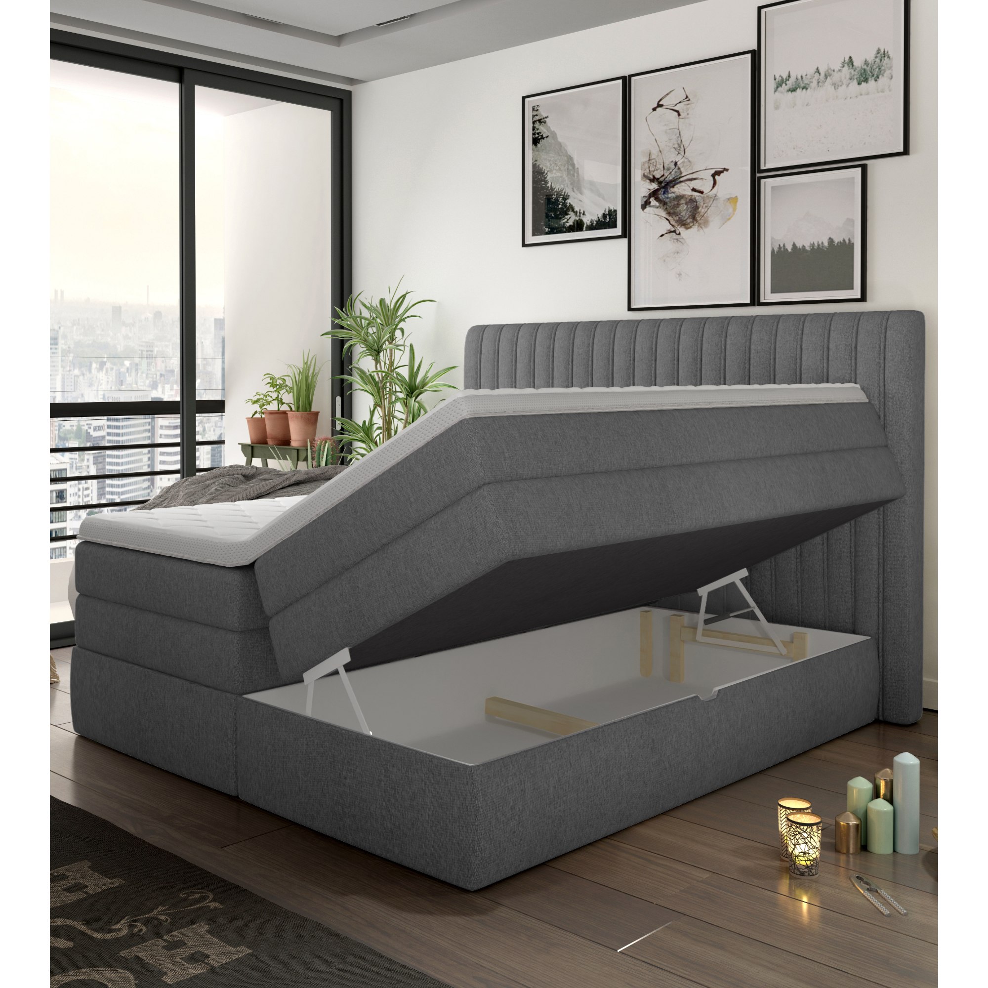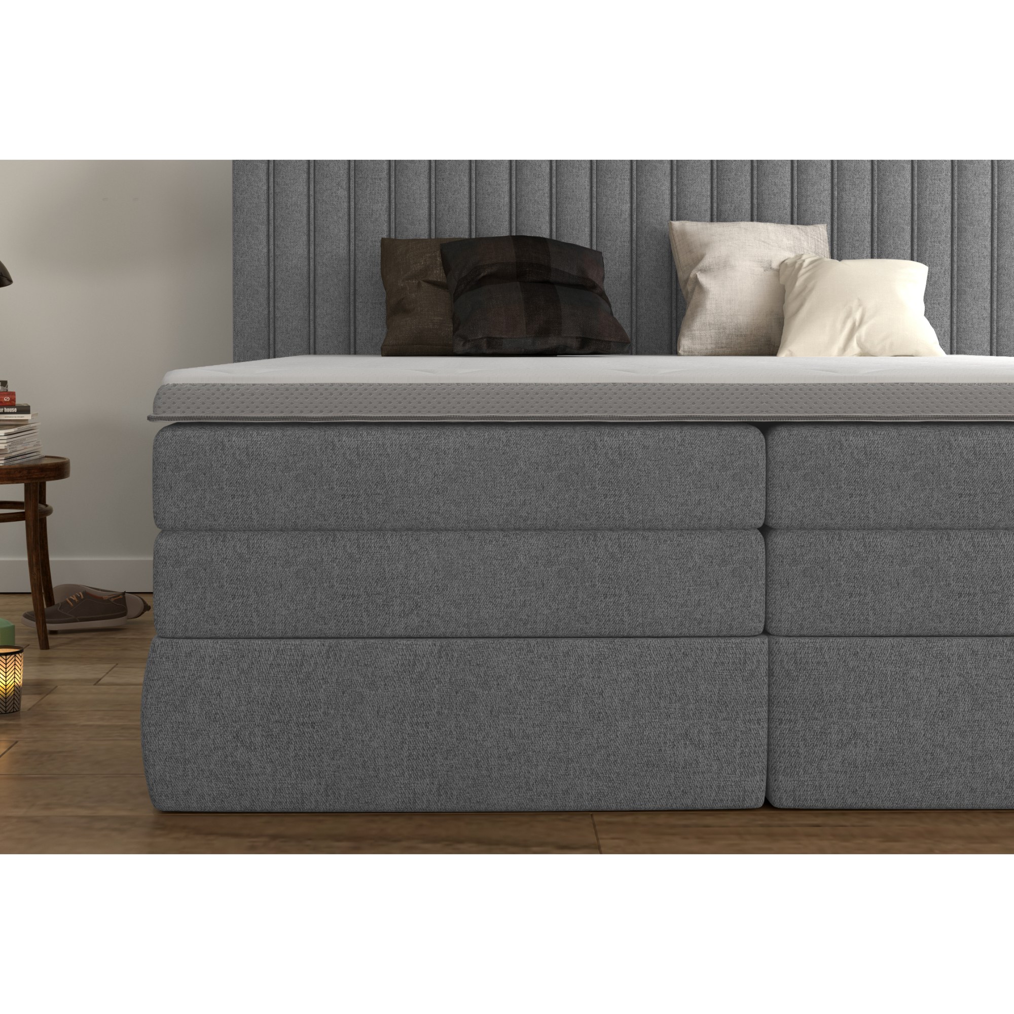 Postel boxspring TAIFA - šedá, 140x200 cm