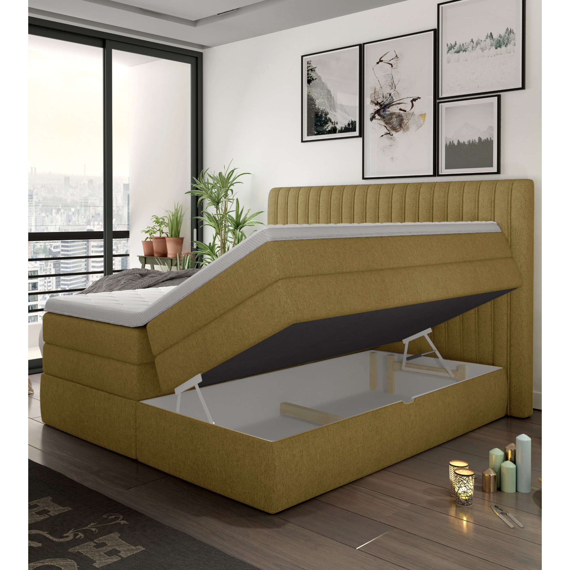 Postel boxspring TAIFA - žlutá, 140x200 cm