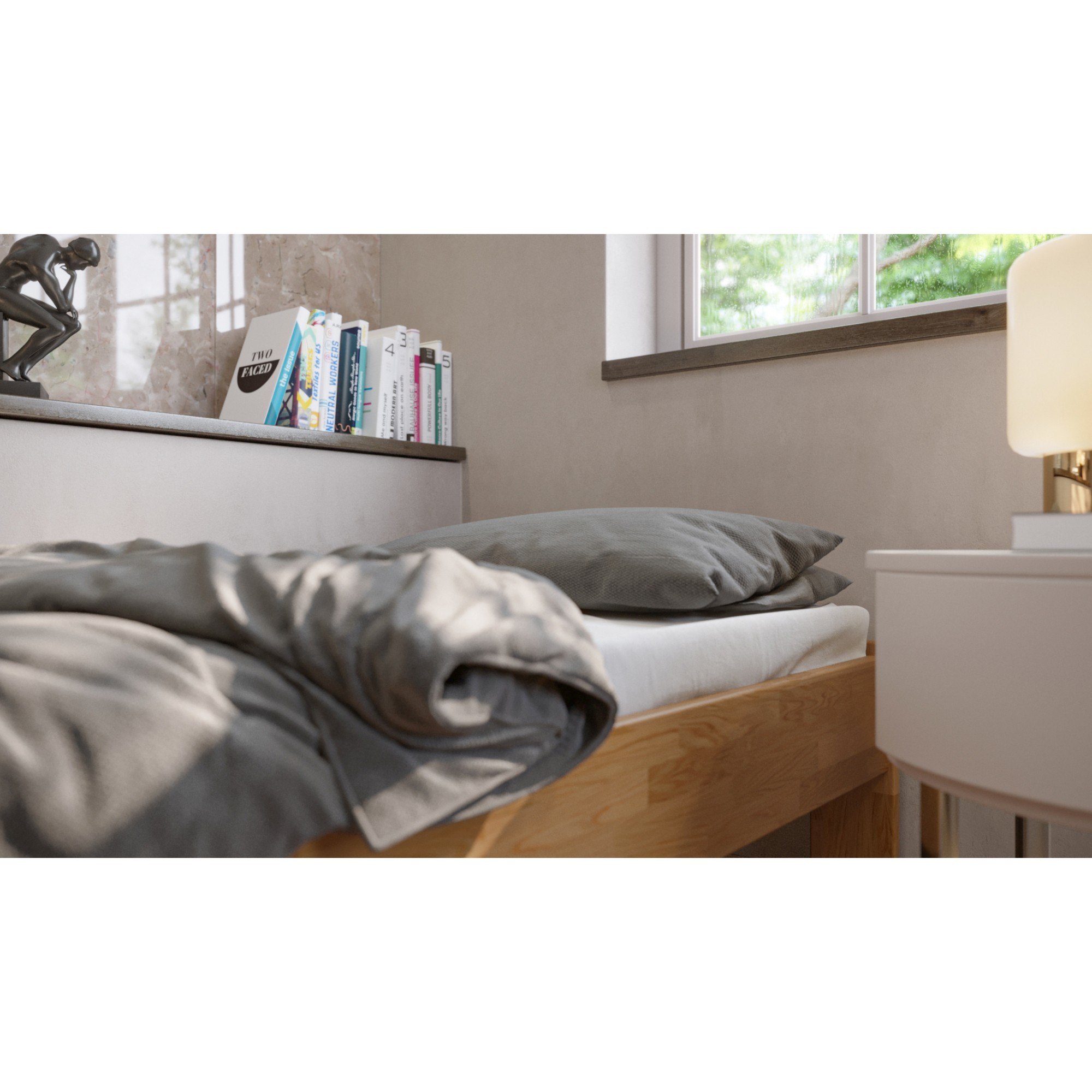 Futonová postel ELODIE I zaujme svými čistými liniemi a moderním provedení s přírodním nádechem. Díky konstrukci bez čela můžete postel maximálně přizpůsobit interiéru. Toto jednolůžko je skvělou volbou do dětských či studentských pokojů, pokojů pro hosty i ložnic.