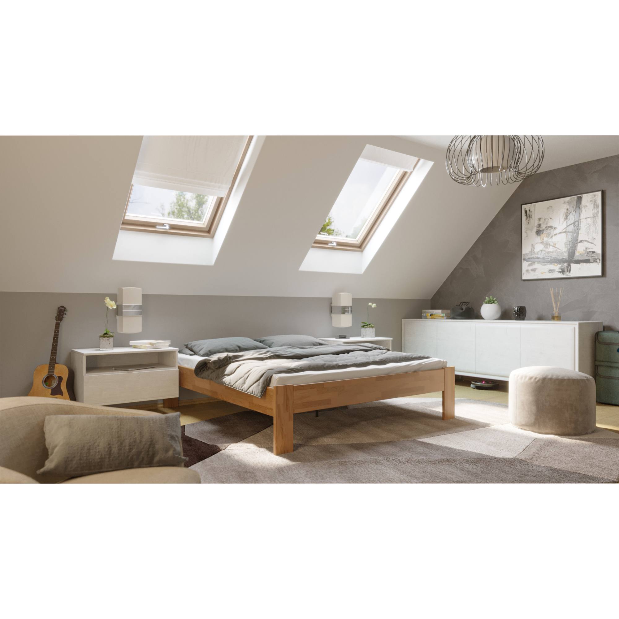 Lůžko je vyrobeno z masivního dřeva, které se vyznačuje svoji vysokou odolností a dlouhou životností. Navíc je ošetřeno olejovým nátěrem, který dřevo napouští a zvyšuje tak odolnost postele proti oděru. Škrábance potom nejsou tak viditelné a hlubší stopy se dají odstranit čištěním či lokální opravou. Postel je dodávána jako samostatný rám bez matrace a roštu, ale věříme, že si ty ideální vyberete z našeho širokého sortimentu.