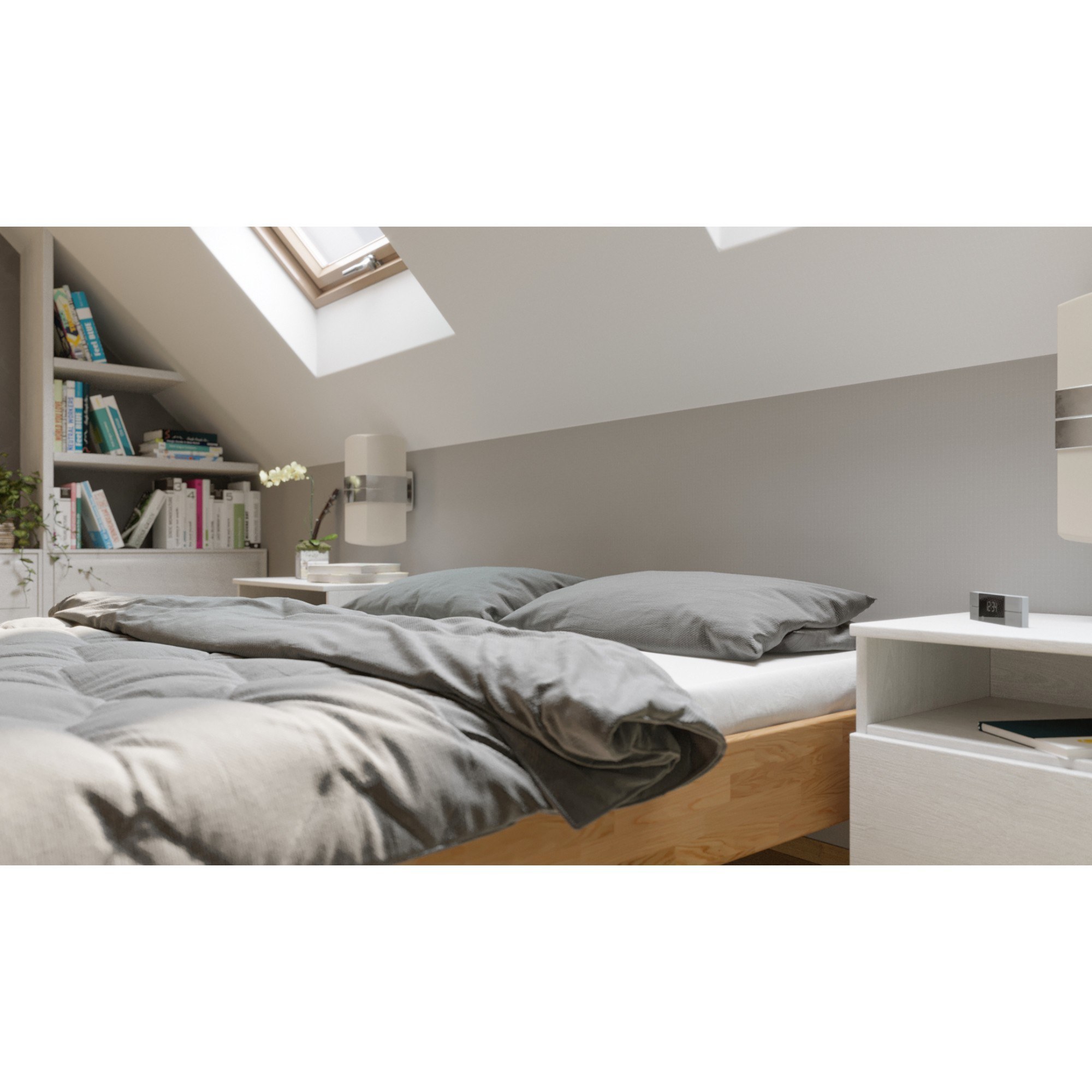 Futonová postel ELODIE II vás zaujme svým čistým, moderním vzhledem s přírodním nádechem. Masivní dřevěná konstrukce bez čela umožňuje maximální přizpůsobení se danému prostoru.