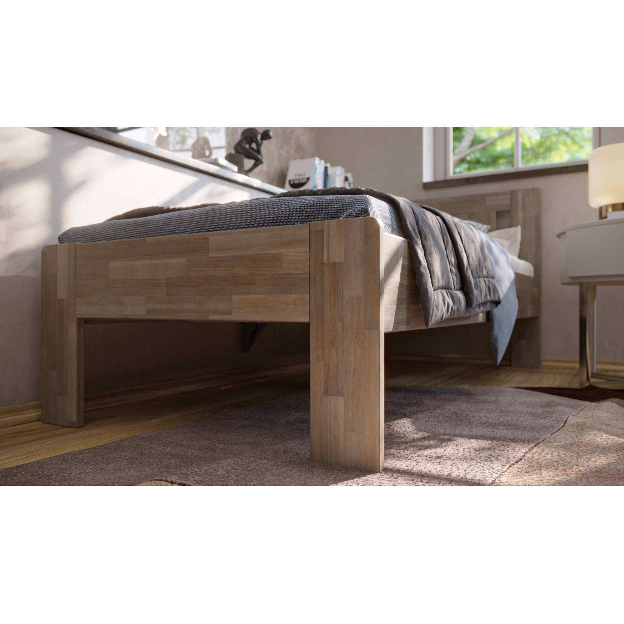 - Doplňující poznámka: Maximální nosnost celé postele je 130 kg. Postel z bukového masivního dřeva je mořená do šedého odstínu.