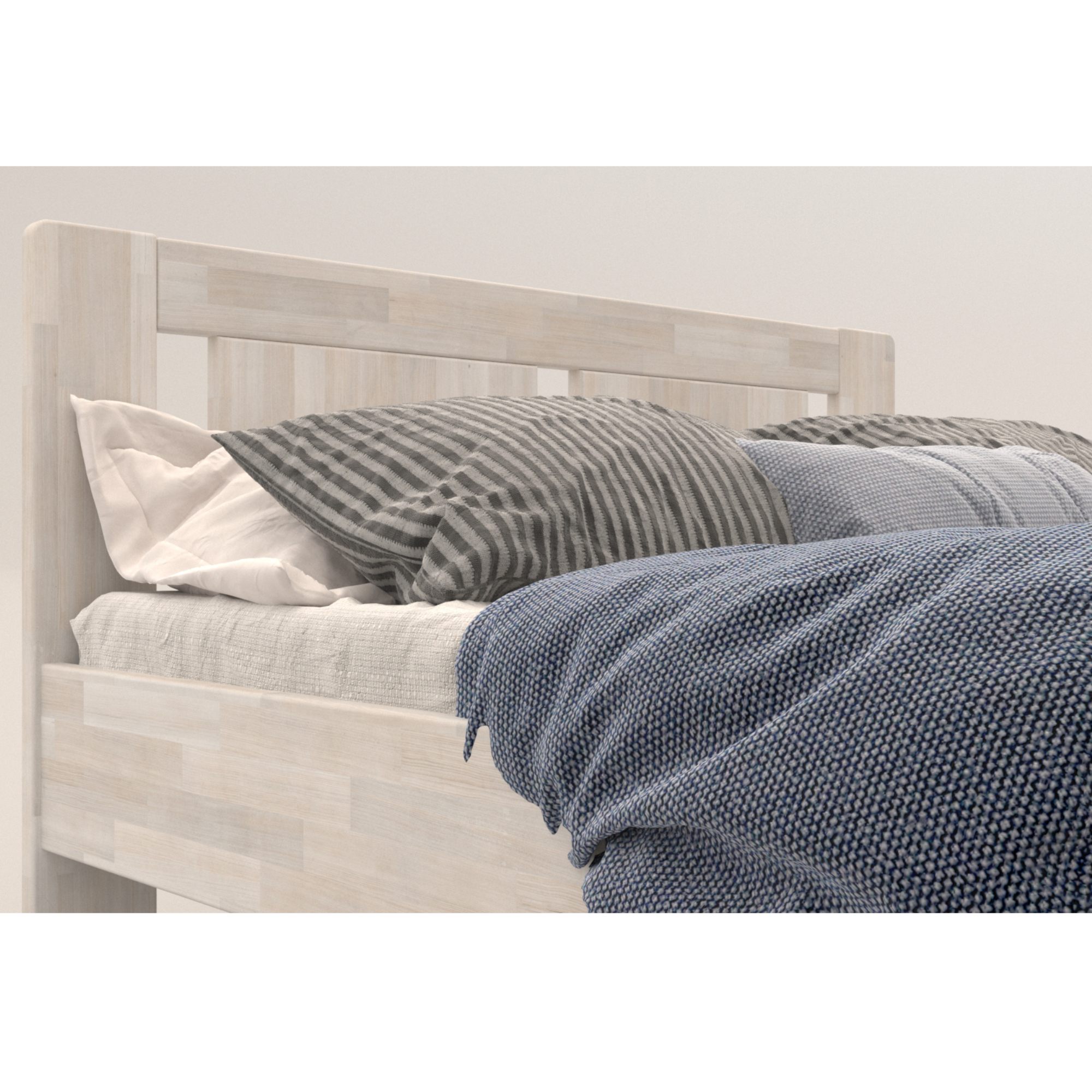 - Doplňující poznámka: Nosnost pro jednu ložnou plochu 195 kg. Postel z bukového masivního dřeva je mořená do bílého odstínu.