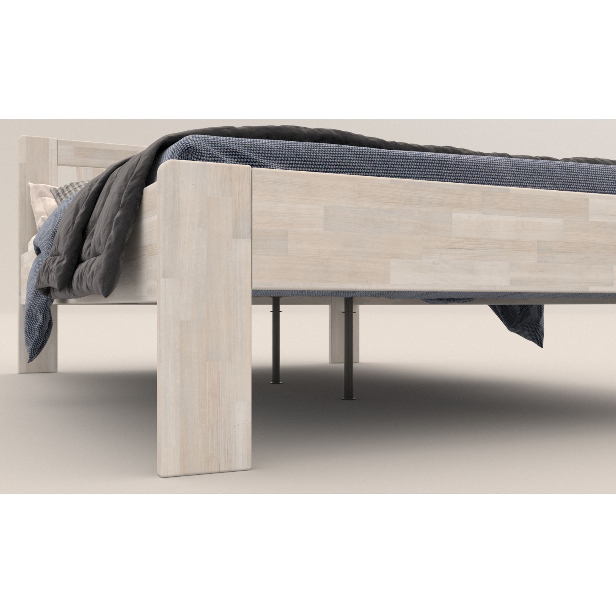 Dřevěná konstrukce zajišťuje pevnost, odolnost, vysokou nosnost a delší životnost postele. Povrchová olejovaná úprava dodává na odolnosti proti oděru. Díky ní nejsou škrábance na první pohled viditelné a dají se odstranit čištěním či lokální opravou. Vysoké, dřevěné nohy zajišťují celkovou stabilitu postele a prostor pod ní můžete snadno uklidit pomocí robotického vysavače. Matraci a rošt je nutné dokoupit samostatně, ale věříme, že si ty perfektní přímo pro vás vyberete z našeho širokého sortimentu.