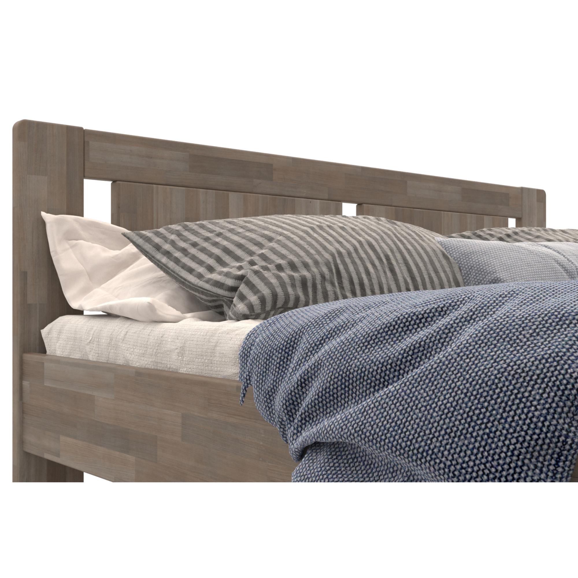 - Doplňující poznámka: Postel z bukového masivního dřeva je mořená do šedého odstínu. Nosnost 130 kg pro jednu ložnou plochu