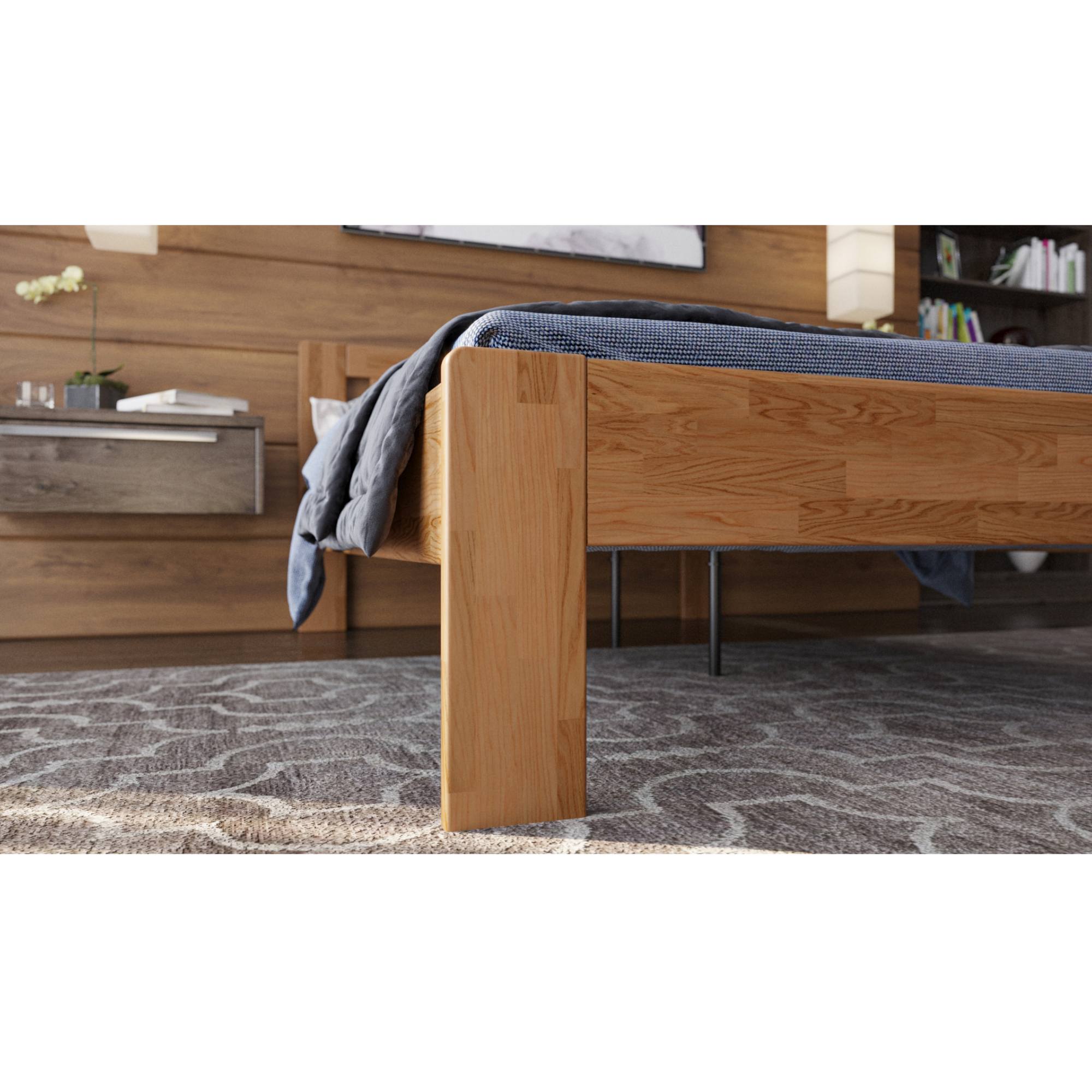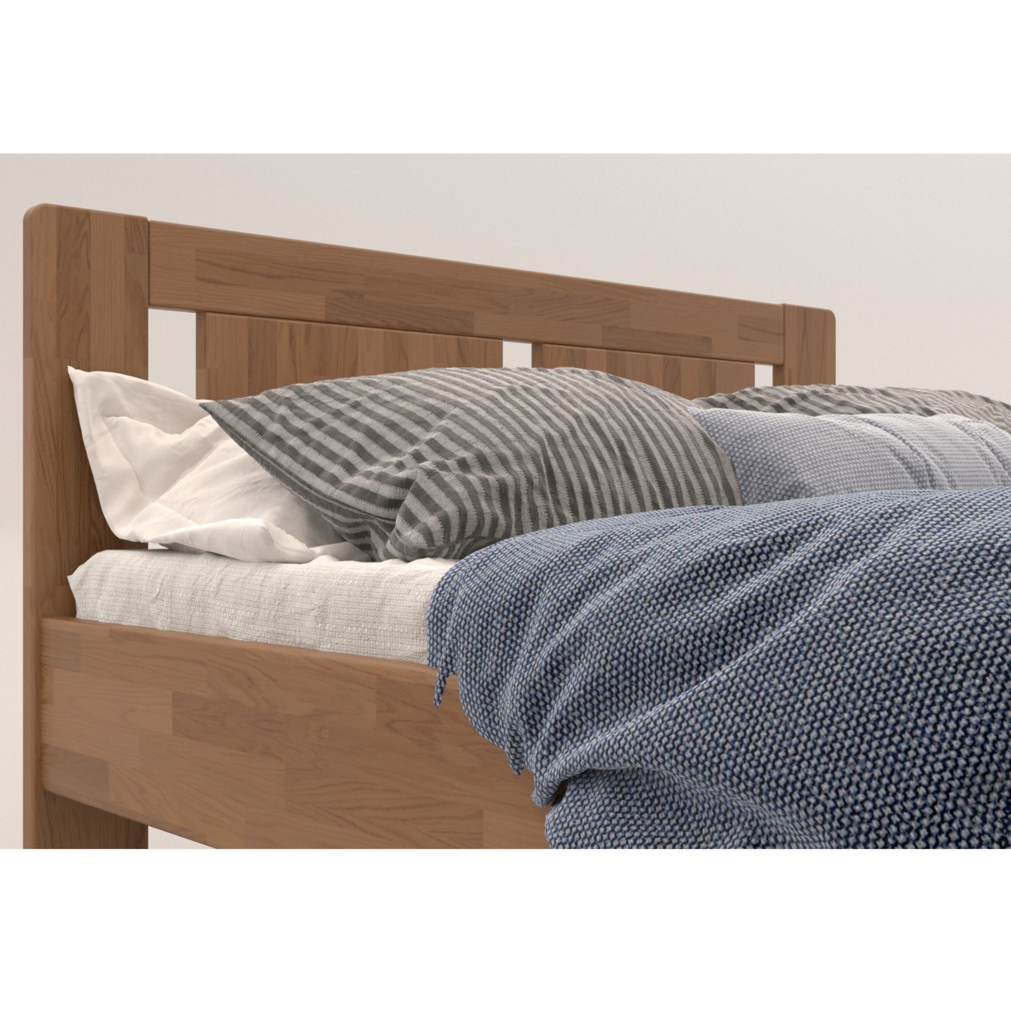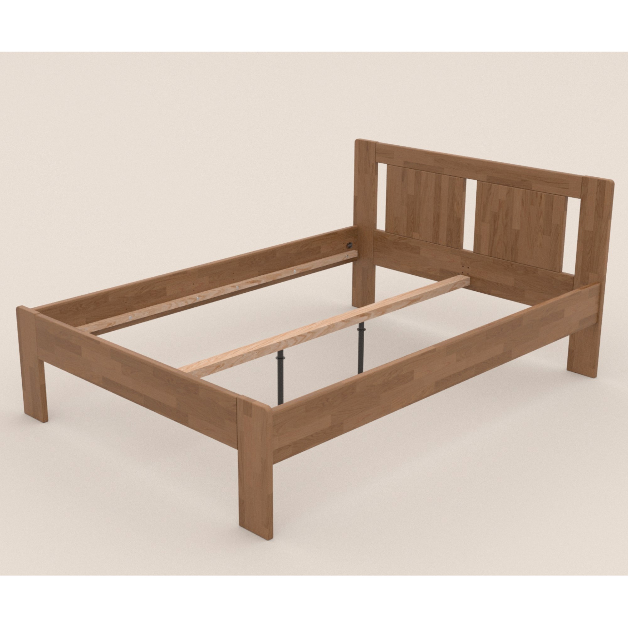 - Doplňující poznámka: Nosnost pro jednu ložnou plochu 195 kg. Postel z dubového masivního dřeva je mořená do odstínu světlý ořech.