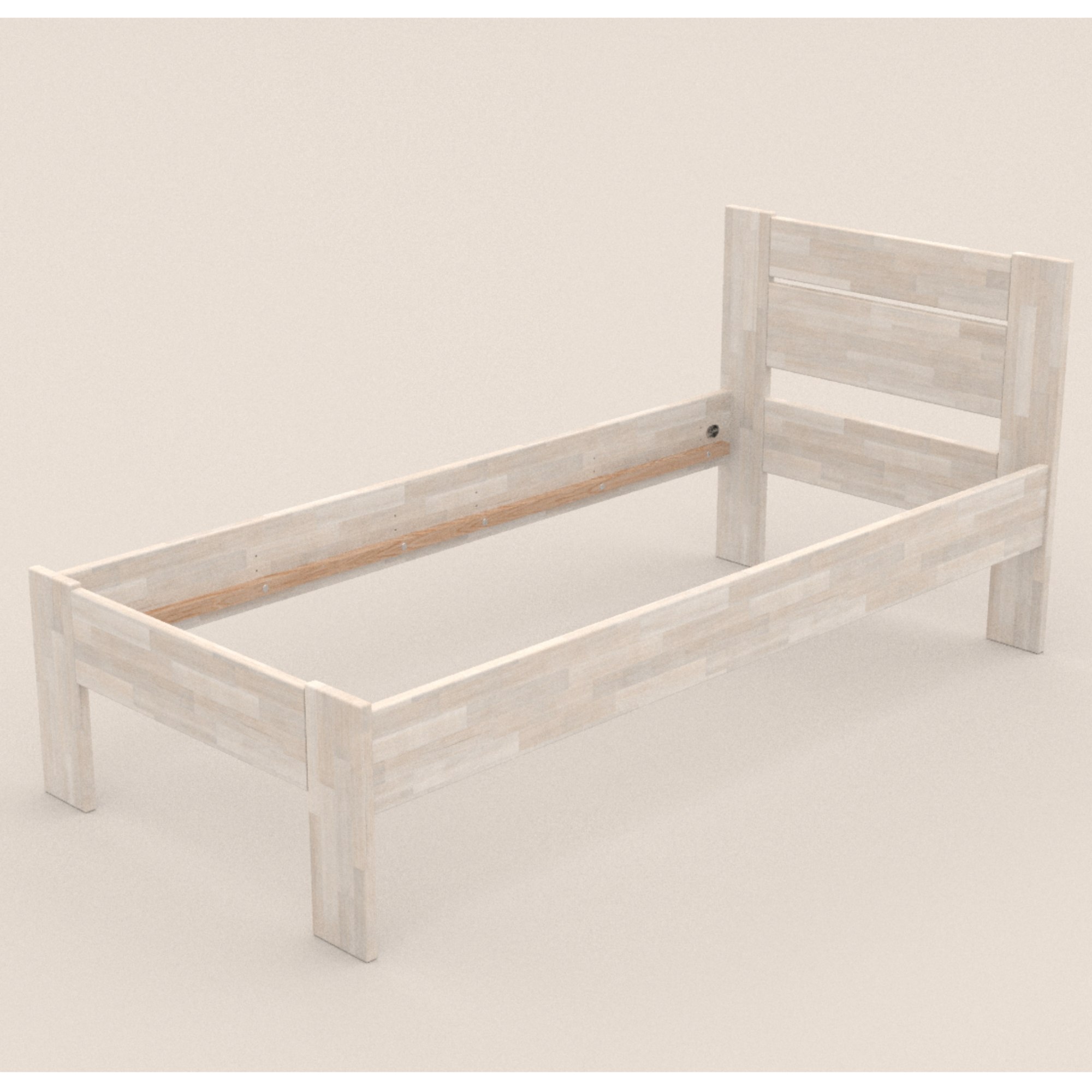 - Doplňující poznámka: Postel z bukového masivního dřeva je mořená do bílého odstínu. Maximální nosnost celé matrace je 130 kg.