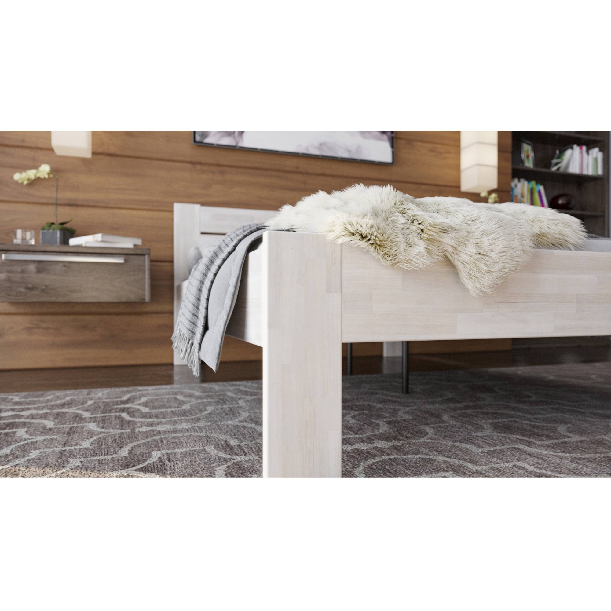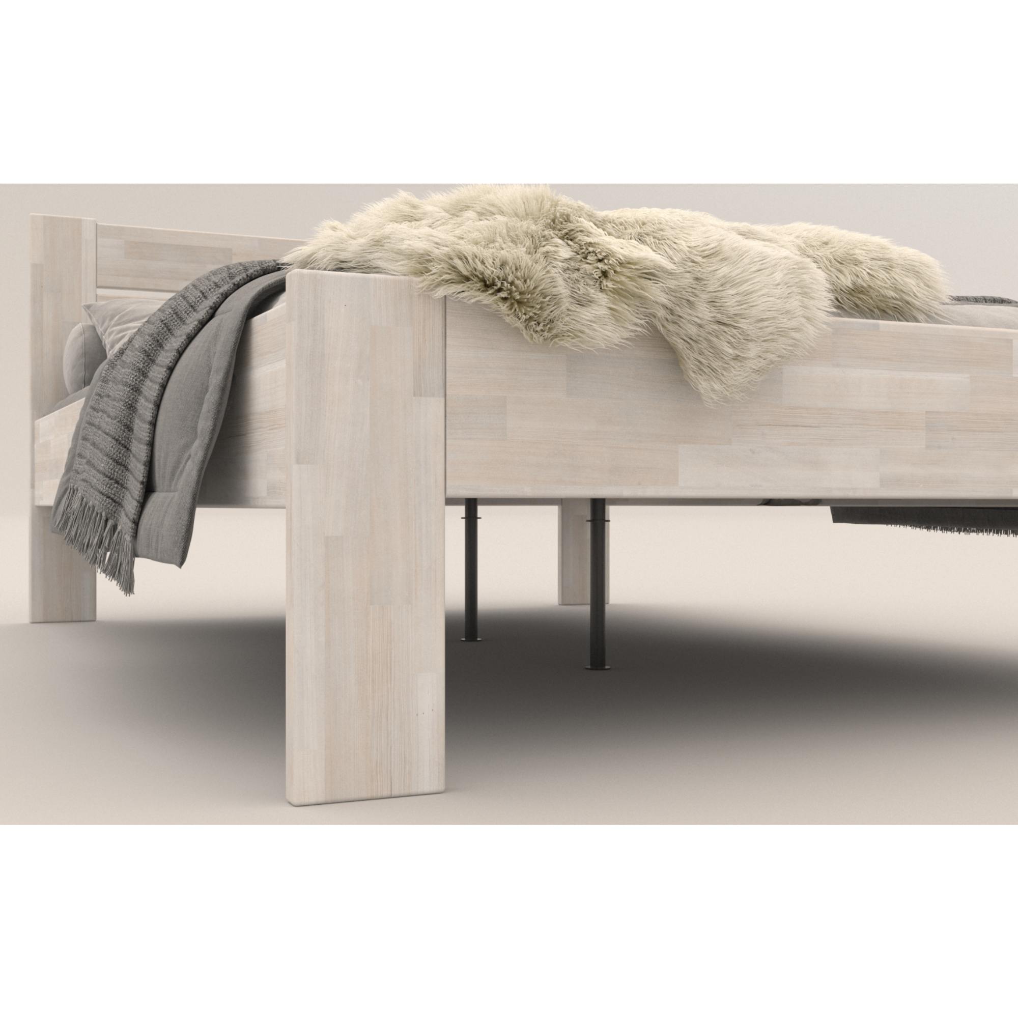 - Doplňující poznámka: Postel z bukového masivního dřeva je mořená do bílého odstínu. Maximální nosnost celé postele je 195 kg.