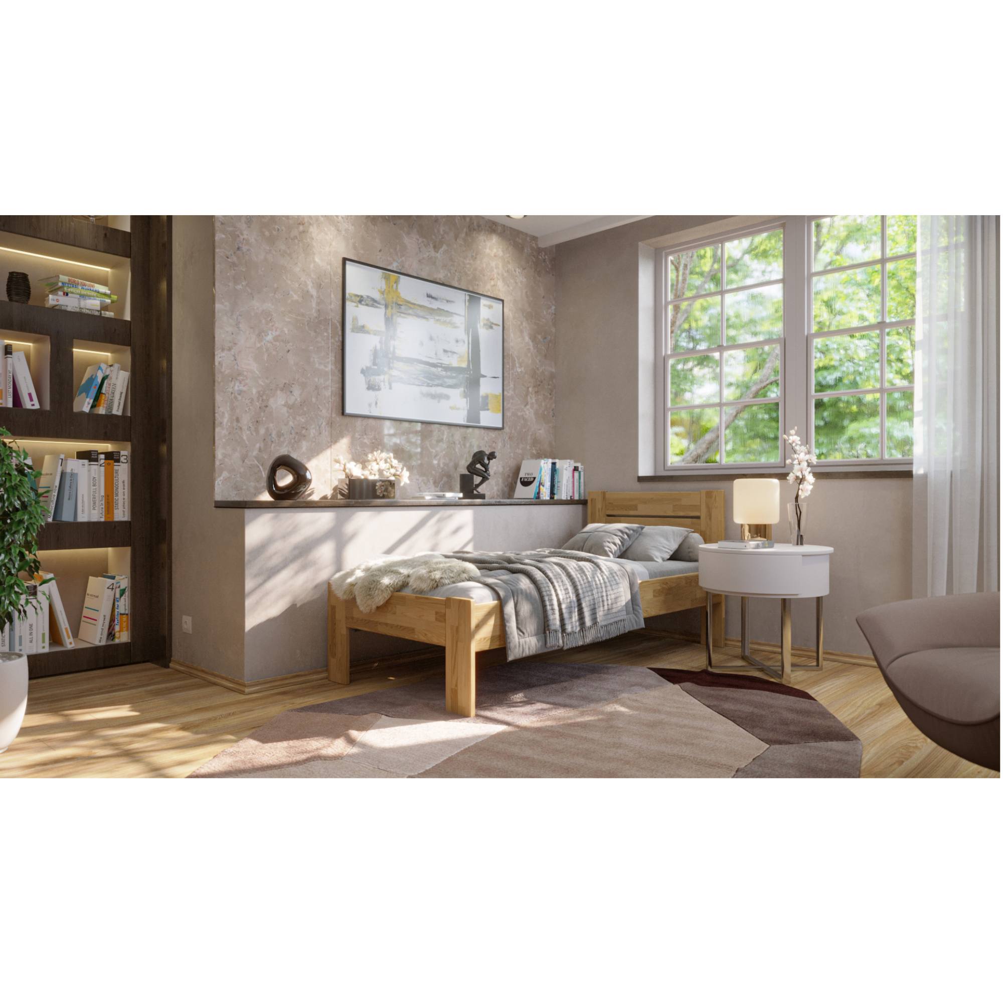Jednolůžková postel JOHANA I se díky svému minimalistickému, nadčasovému vzhledu hodí téměř do jakéhokoli interiéru.