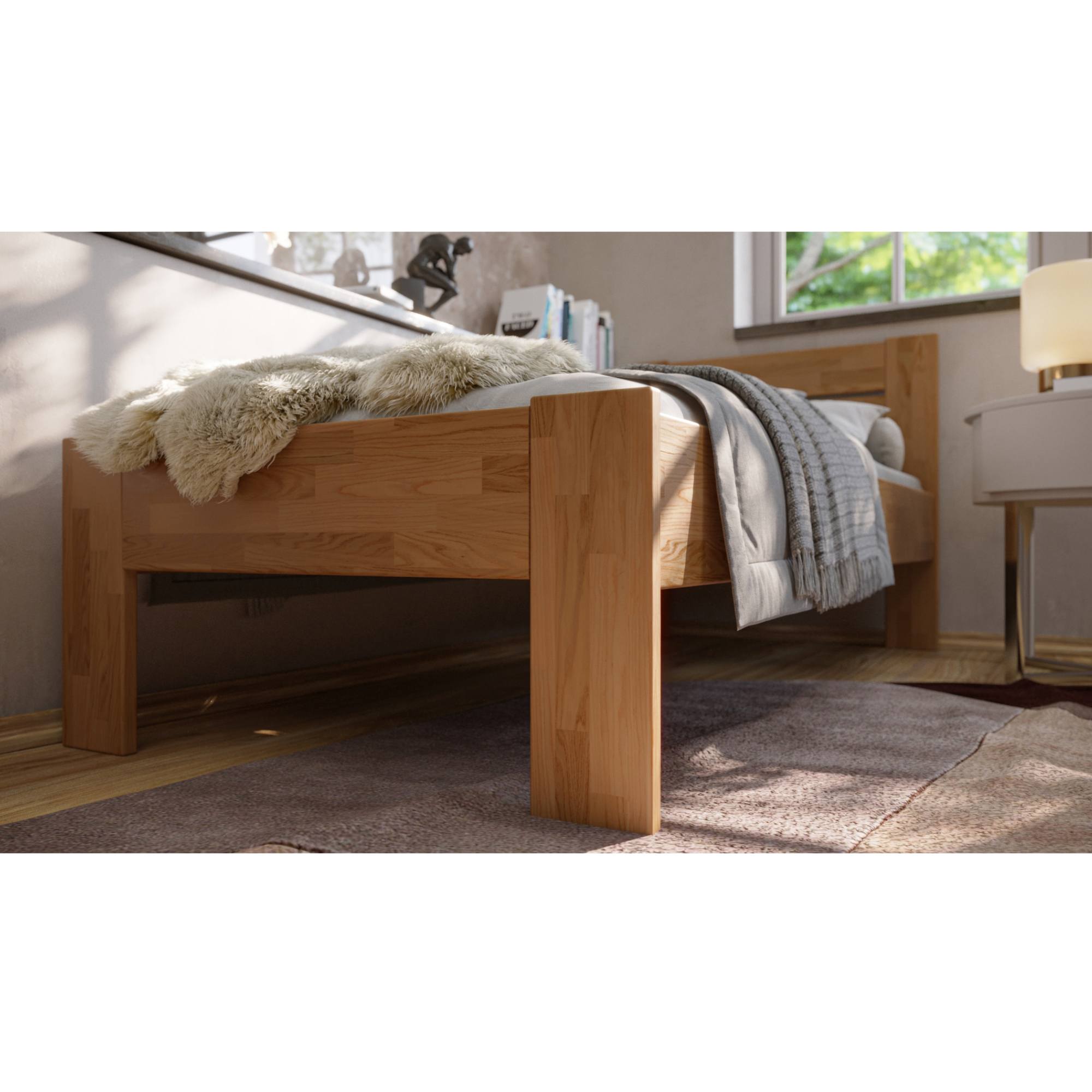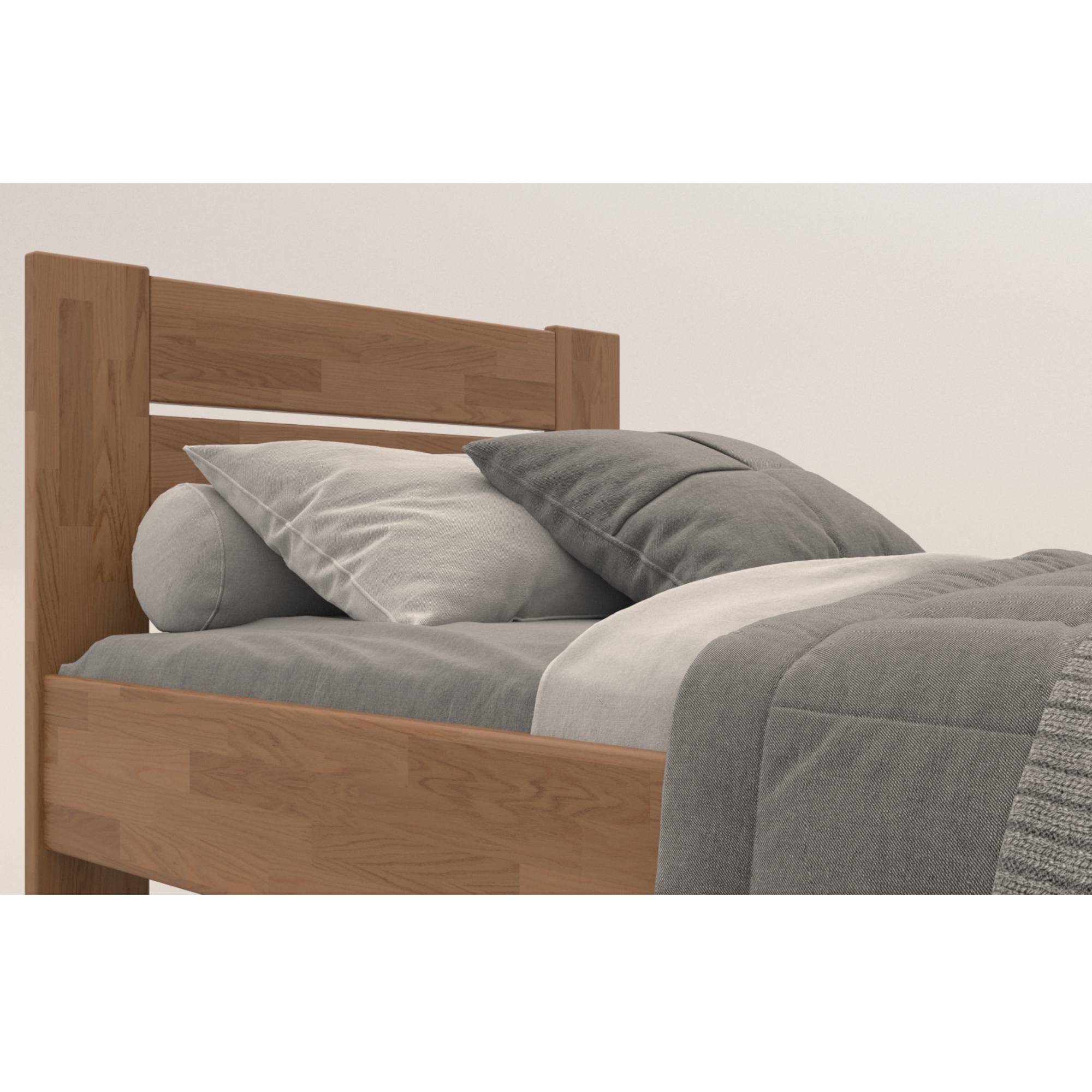 Vyrobena je z masivního bukového a dubového dřeva, zaleží jen na vás, jaký typ dřeva si vyberete. Masivní dřevo má vysokou nosnost, odolnost a dlouhou životnost. Povrchová olejová úprava jeho životnost ještě prodlužuje a zároveň poskytuje odolnost proti oděru. Pohodlné opření během odpočinku zajišťuje vyšší čelo. O celkovou stabilitu postele se starají pevné dřevěné nohy, které zároveň umožňují snadný úklid pod postelí. Postel je dodávána bez matrace a roštu, ale věříme, že si ty ideální vyberete z našeho širokého sortimentu a vytvoříte kompletní lůžko dle vašich představ.
