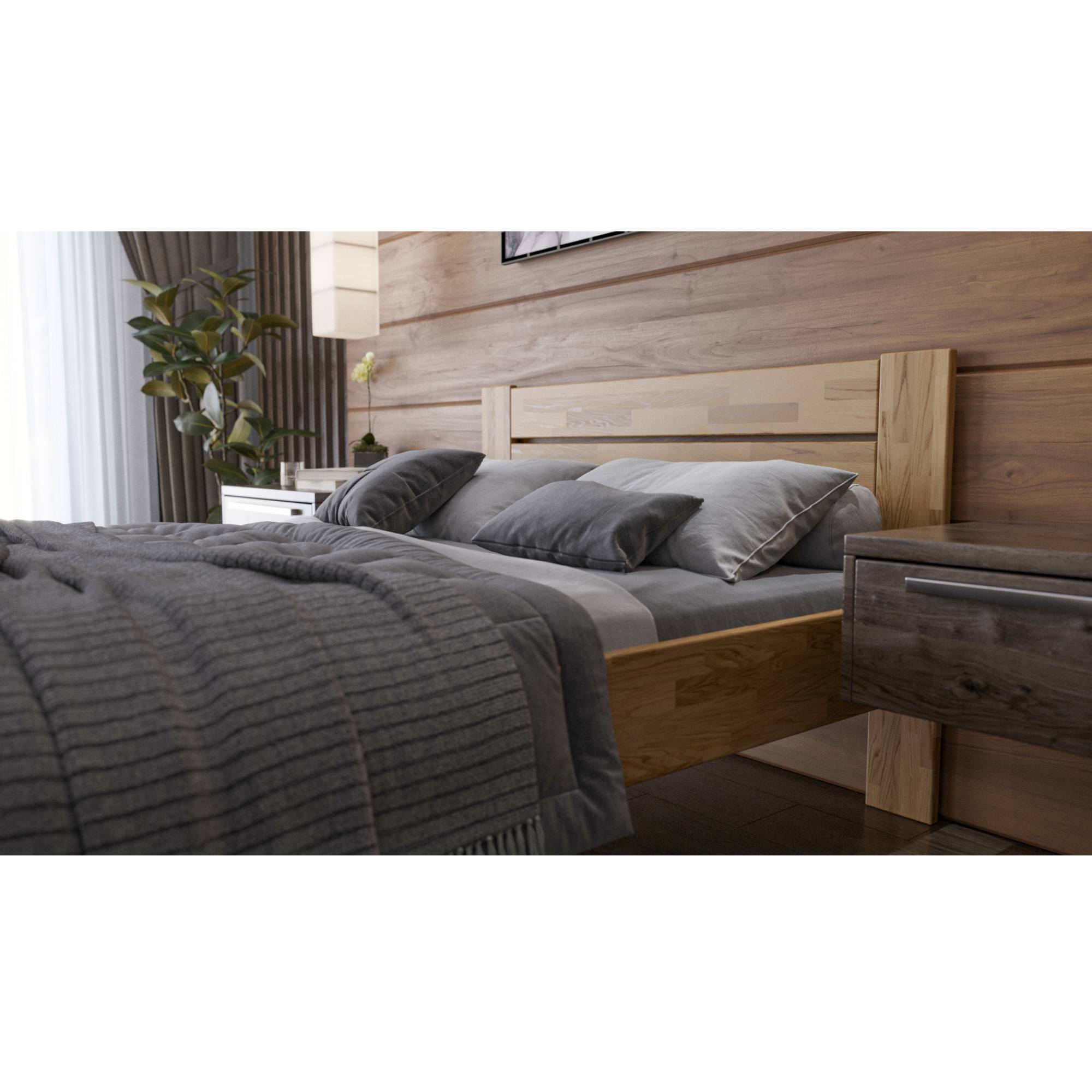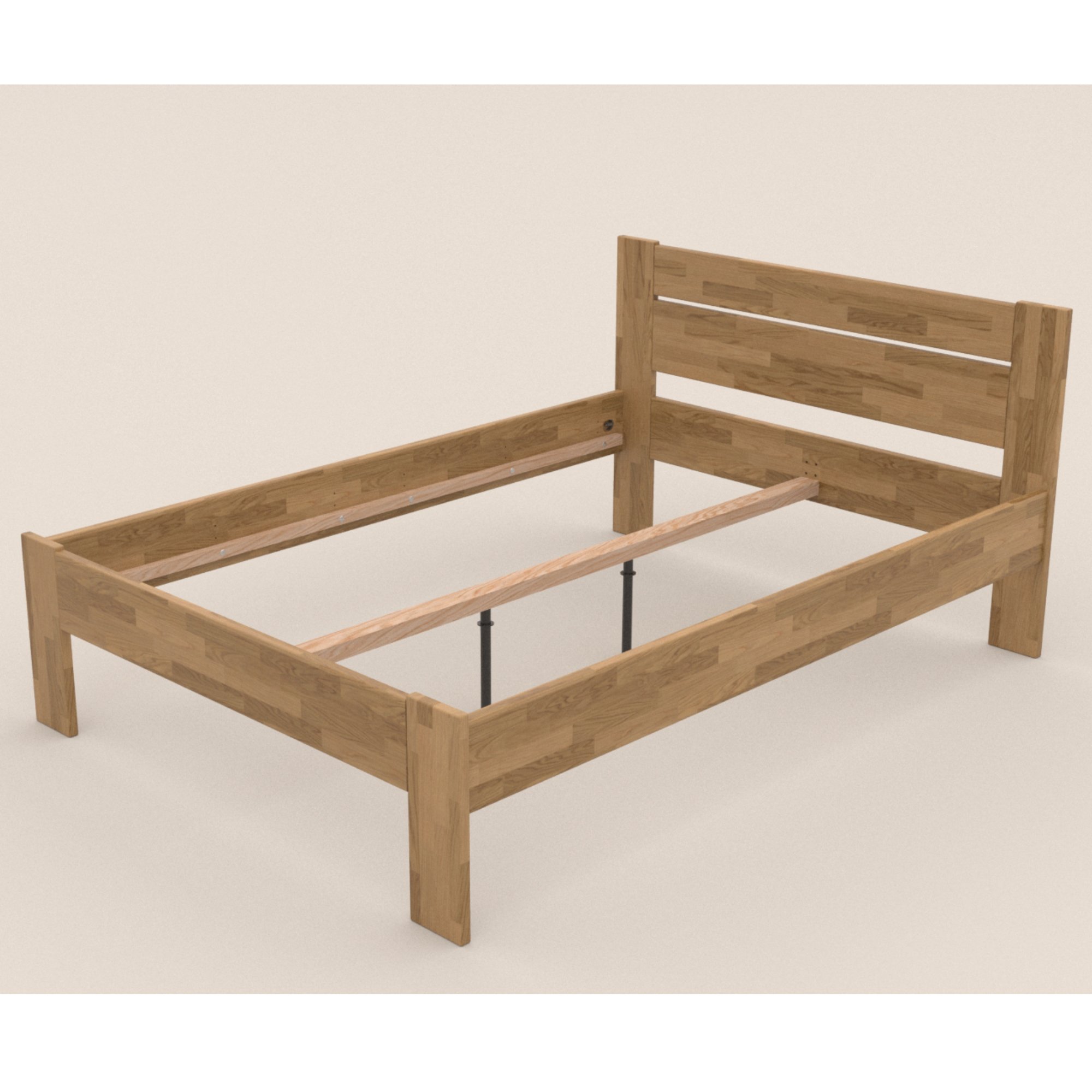 Postel je vyrobena z masivního bukového a dubového dřeva, zaleží jen na vás, jaký typ dřeva si vyberete. Masivní dřevo má vysokou nosnost, odolnost a je nenáročné na údržbu. Povrchová olejová úprava dřeva prodlužuje jeho životnost a zároveň poskytuje odolnost proti oděru. Tato úprava je oblíbená hlavně díky tomu, že škrábance nejsou na první pohled viditelné a hlubší stopy se dají odstranit čištěním a místní opravou. Tloušťka materiálu, ze kterého je postel vyrobena je 27 mm.