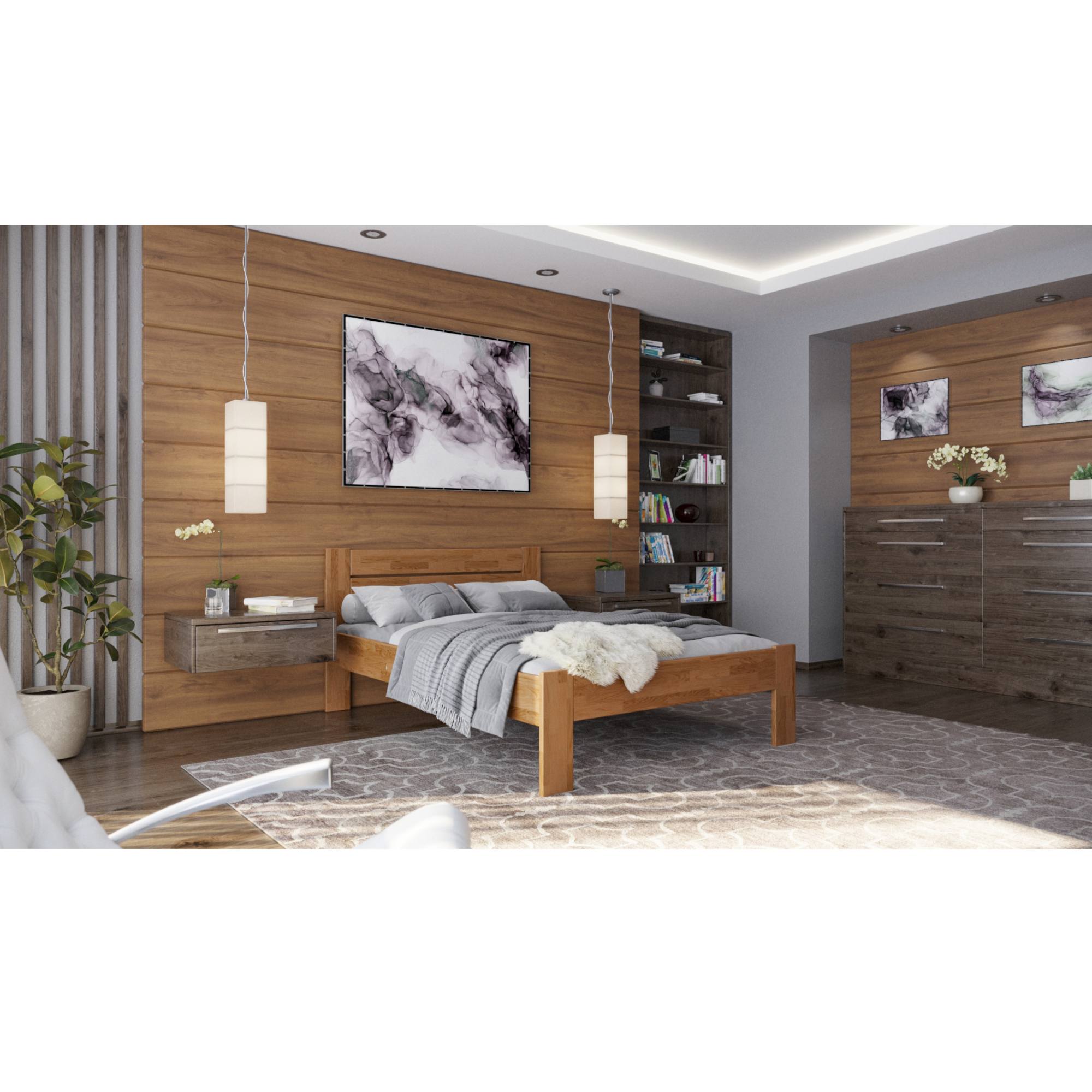 - Doplňující poznámka: Postel z dubového masivního dřeva je mořená do odstínu světlý ořech. Nosnost pro jednu ložnou plochu 98 kg.