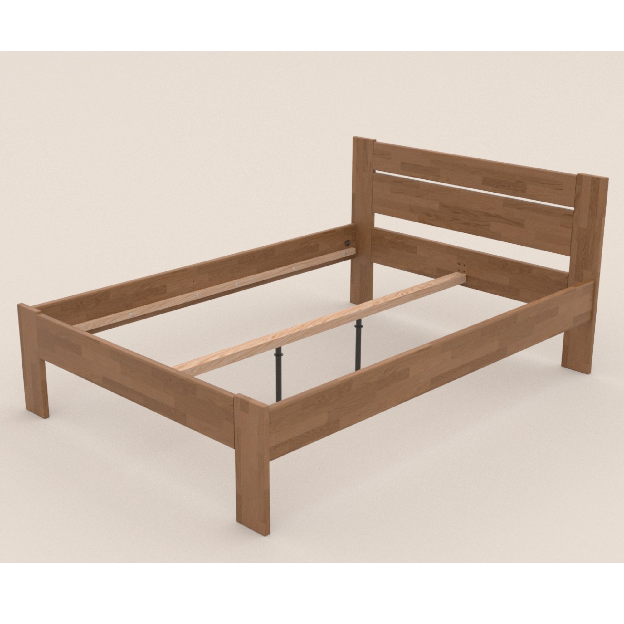 Postel je vyrobena z masivního bukového a dubového dřeva, zaleží jen na vás, jaký typ dřeva si vyberete. Masivní dřevo má vysokou nosnost, odolnost a je nenáročné na údržbu. Povrchová olejová úprava dřeva prodlužuje jeho životnost a zároveň poskytuje odolnost proti oděru. Tato úprava je oblíbená hlavně díky tomu, že škrábance nejsou na první pohled viditelné a hlubší stopy se dají odstranit čištěním a místní opravou. Tloušťka materiálu, ze kterého je postel vyrobena je 27 mm.