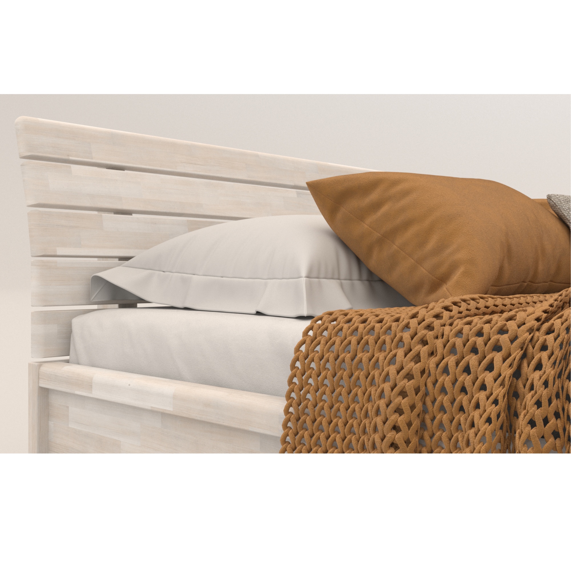- Doplňující poznámka: Postel z bukového masivního dřeva je mořená do bílého odstínu. Nosnost 130 kg pro jednu ložnou plochu.