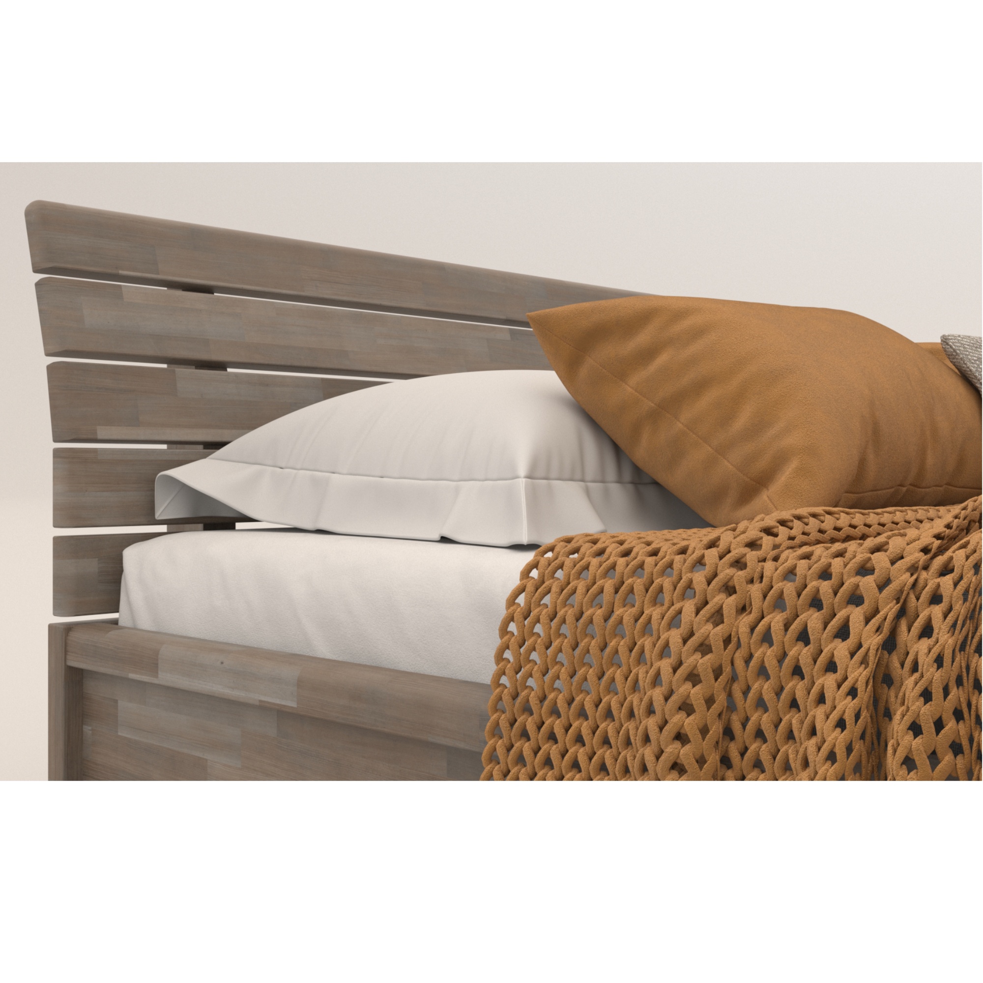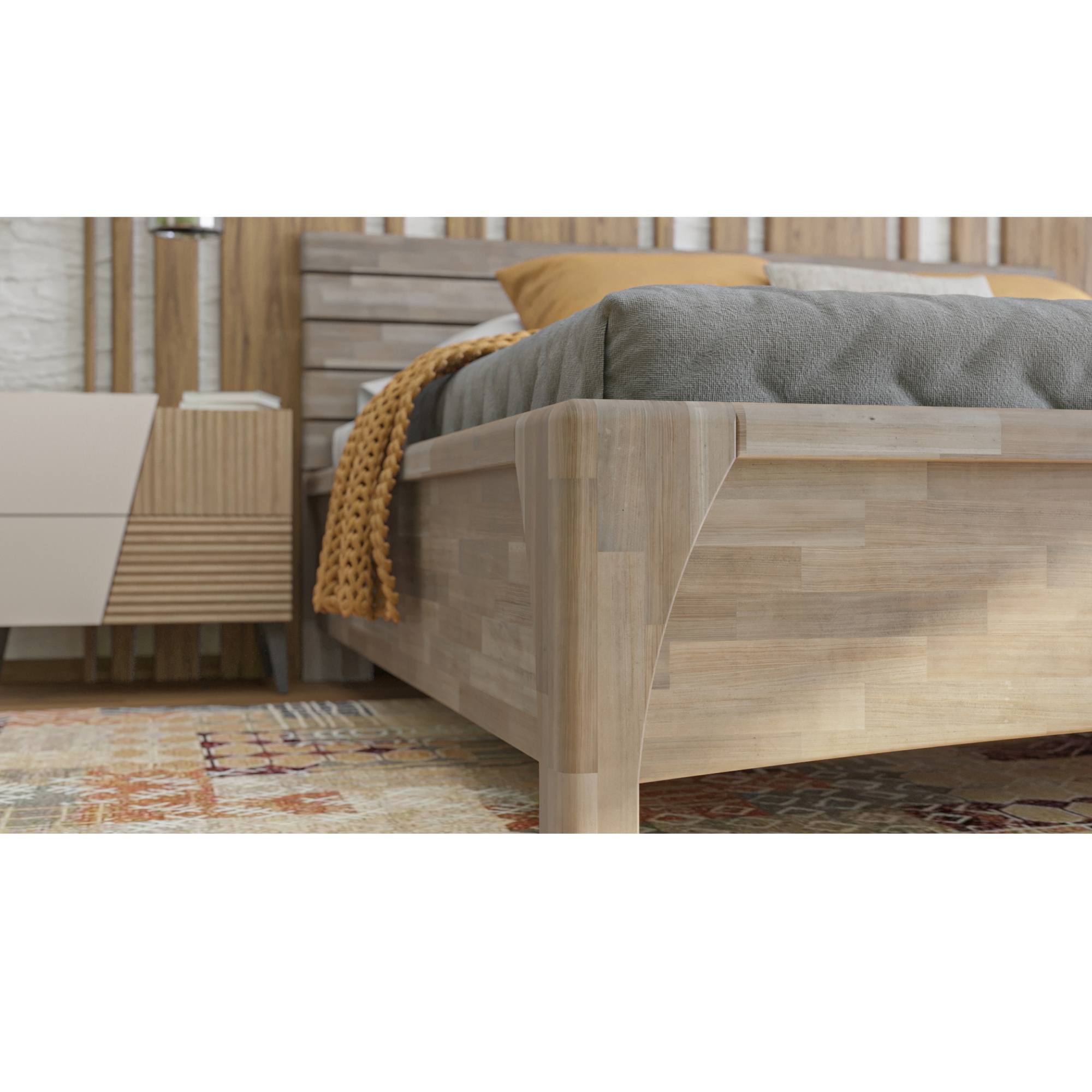 - Doplňující poznámka: Postel z bukového masivního dřeva je mořená do šedého odstínu. Nosnost 130 kg pro jednu ložnou plochu