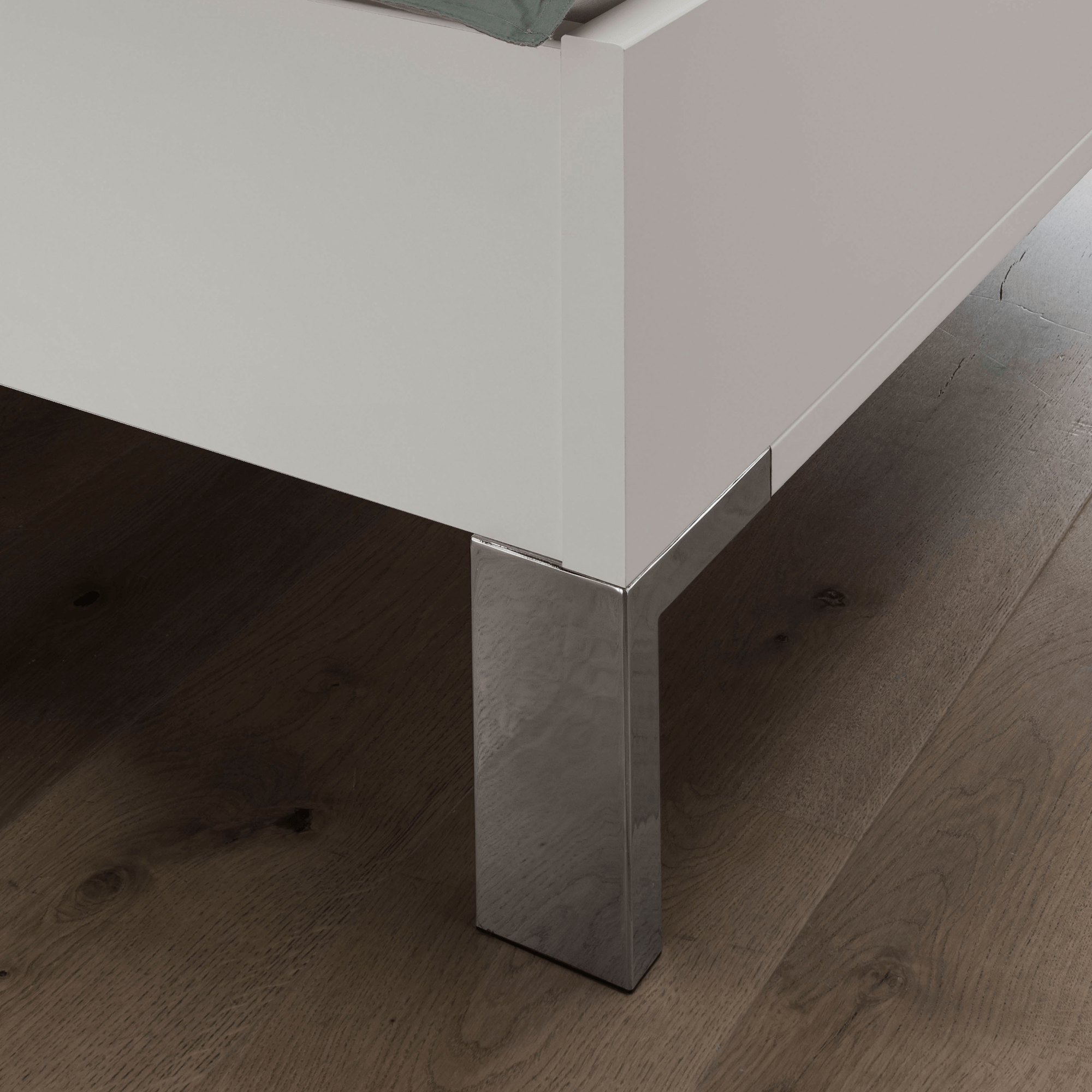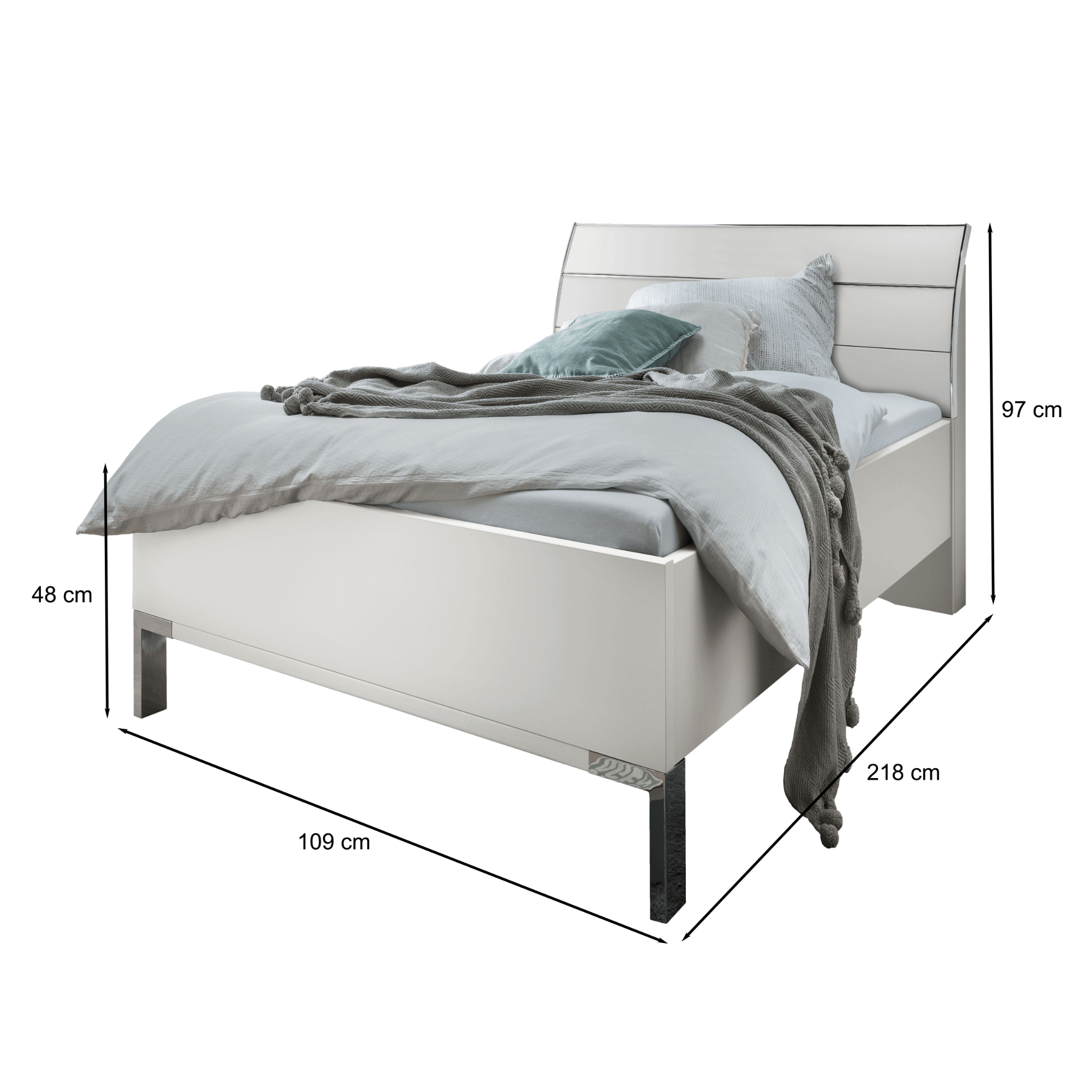 Postel je vyrobena z laminovaného dřevěného materiálu v provedení se stříbrnými chromovými lištami, které zajímavě doplňují její futuristický vzhled. Doplněna je o výrazné, prohnuté čelo pro pohodlnější opření během odpočinku po náročném dni. Výšku lůžka lze variabilně nastavit. Postel je dodávána bez roštu a matrace. Ideální matraci a rošt si můžete vybrat z naší široké nabídky a sestavit si tak komfortní lůžko přesně dle vašich představ.