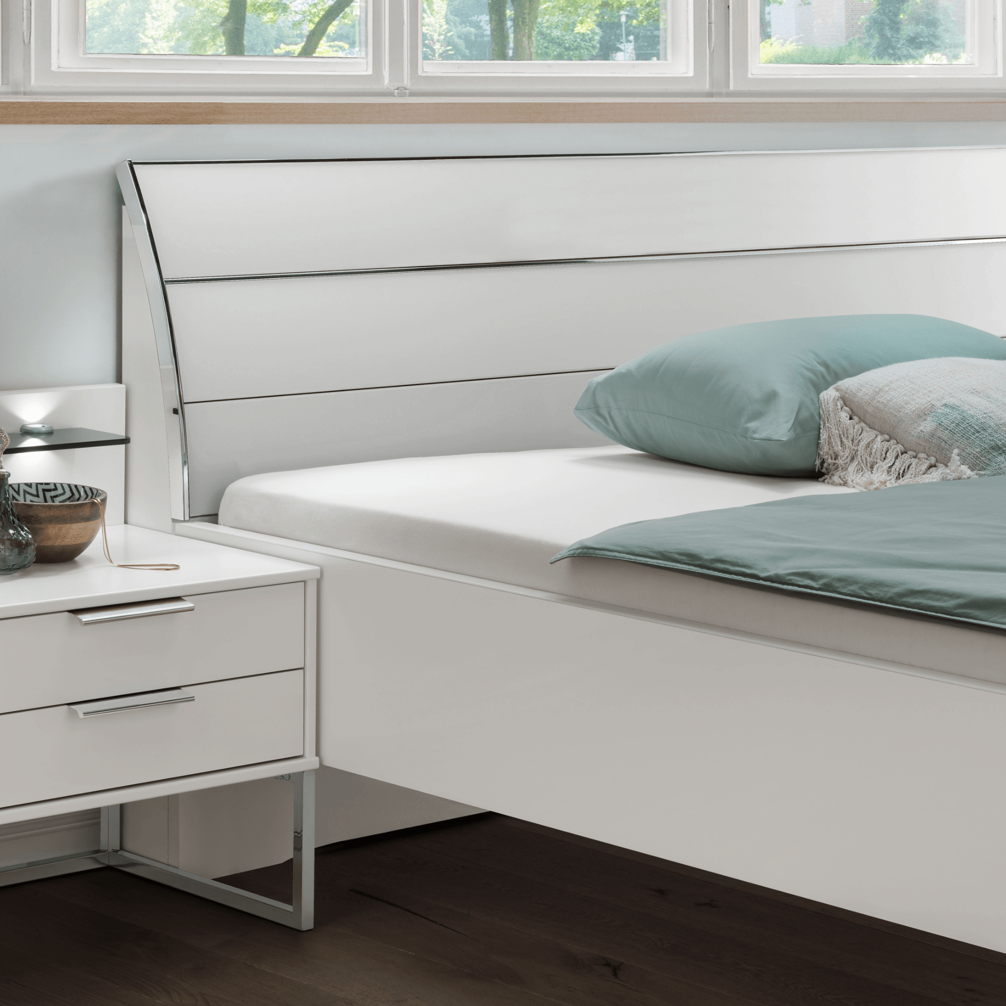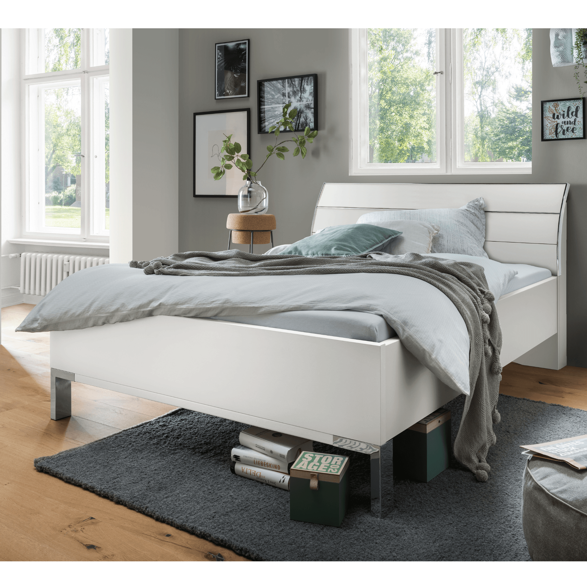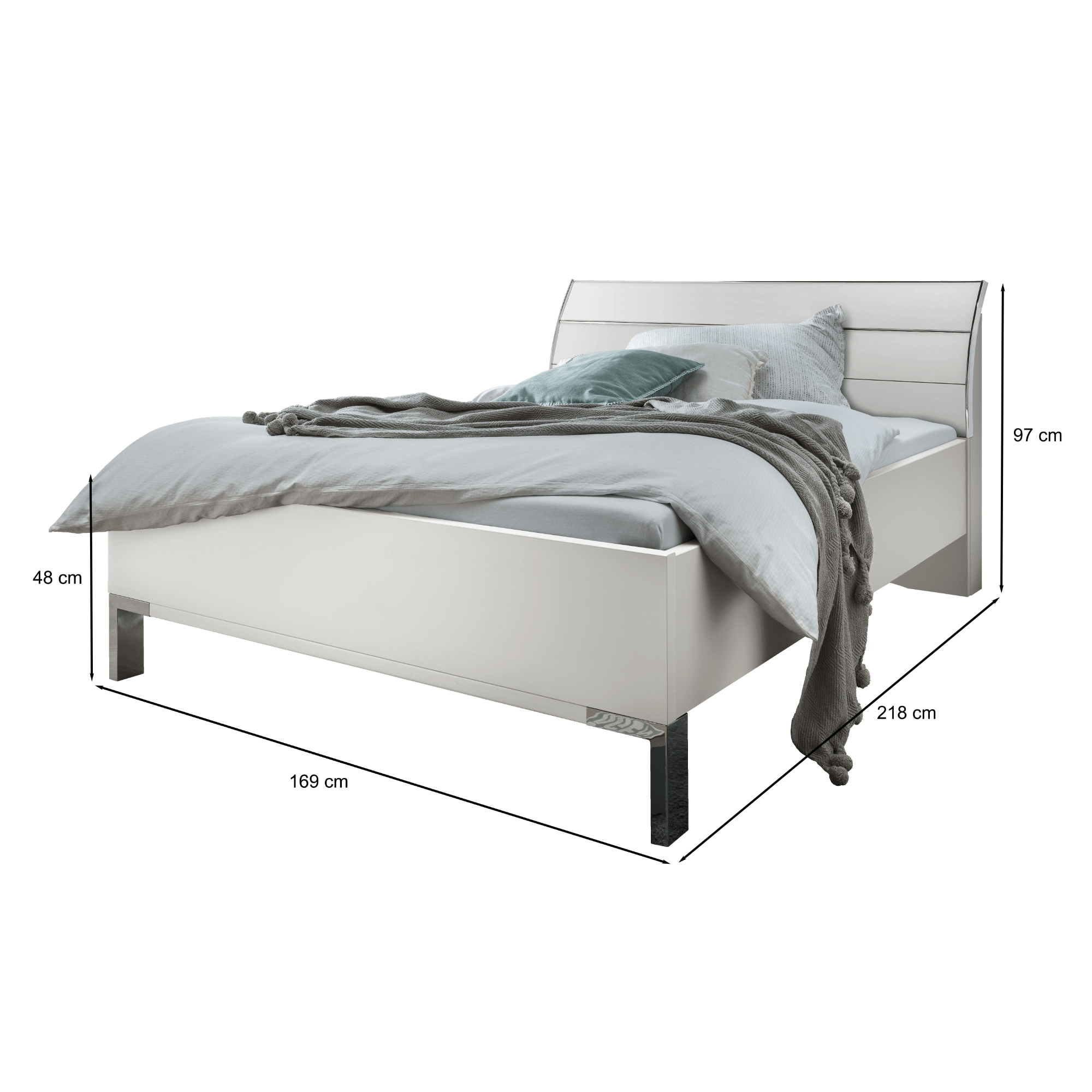 Postel je vyrobena z laminovaného dřevěného materiálu v provedení se stříbrnými chromovými lištami, které zajímavě doplňují její futuristický vzhled. Doplněna je o výrazné, prohnuté čelo pro pohodlnější opření během odpočinku po náročném dni. Výšku lůžka lze variabilně nastavit. Postel je dodávána bez roštu a matrace, ale jistě si vyberete z naší široké nabídky a sestavíte si perfektní lůžko přesně dle vašeho vkusu a potřeb.