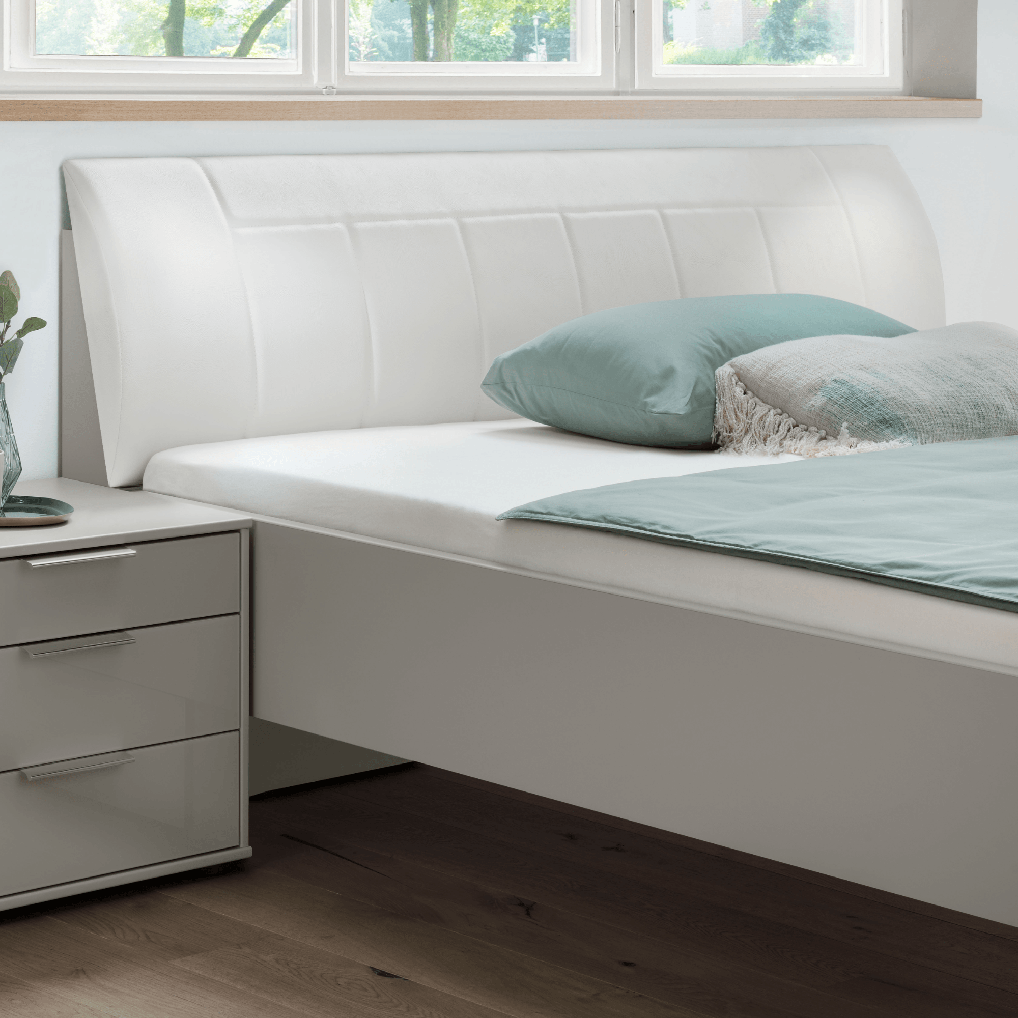 Postel je vyrobena z laminovaného dřevěného materiálu, díky kterému se vám bude postel snadno udržovat. Vysoké, prohnuté čelo čalouněné syntetickou kůží v bílé barvě je nejen vzhledově atraktivním prvkem, ale především ideálním pomocníkem pro pohodlné opření. Výšku lůžka si můžete variabilně nastavit výběrem ze 4 poloh. Postel je dodávána bez matrace a roštu, ale jistě si vybere z našeho širokého sortimentu a vytvoříte kompletní lůžko přesně dle vašich představ.