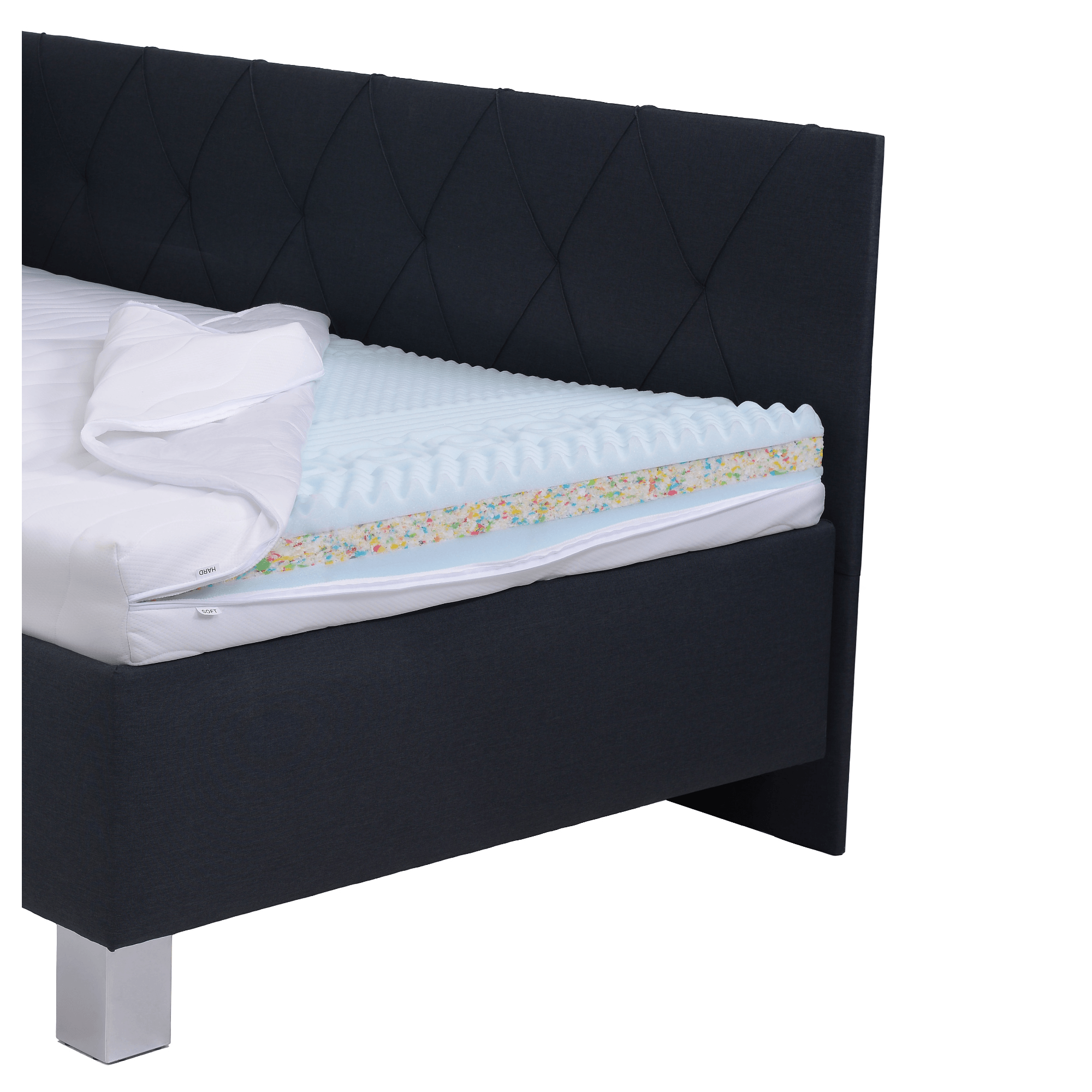 Dvoulůžko o velikosti ložné plochy 140x200 cm je vybaveno kvalitním lamelovým roštem s lamelami se zvýšenou pevností a vynikající pružností, které přispívají k delší životnosti celé postele. Boční výklop roštu umožňuje snadný přístup do úložného prostoru v rámu postele. Na roštu je uložena partnerská matrace, která má ideální termoregulační vlastnosti a umožňuje volbu tuhosti matrace mezi tvrdší a měkčí stranou. Vrstvené elastické pěny se perfektně přizpůsobí tvaru těla a utváří tak ty nejlepší podmínky pro kvalitní spánek. Potah matrace je snímatelný a pratelný při teplotě 30 °C.