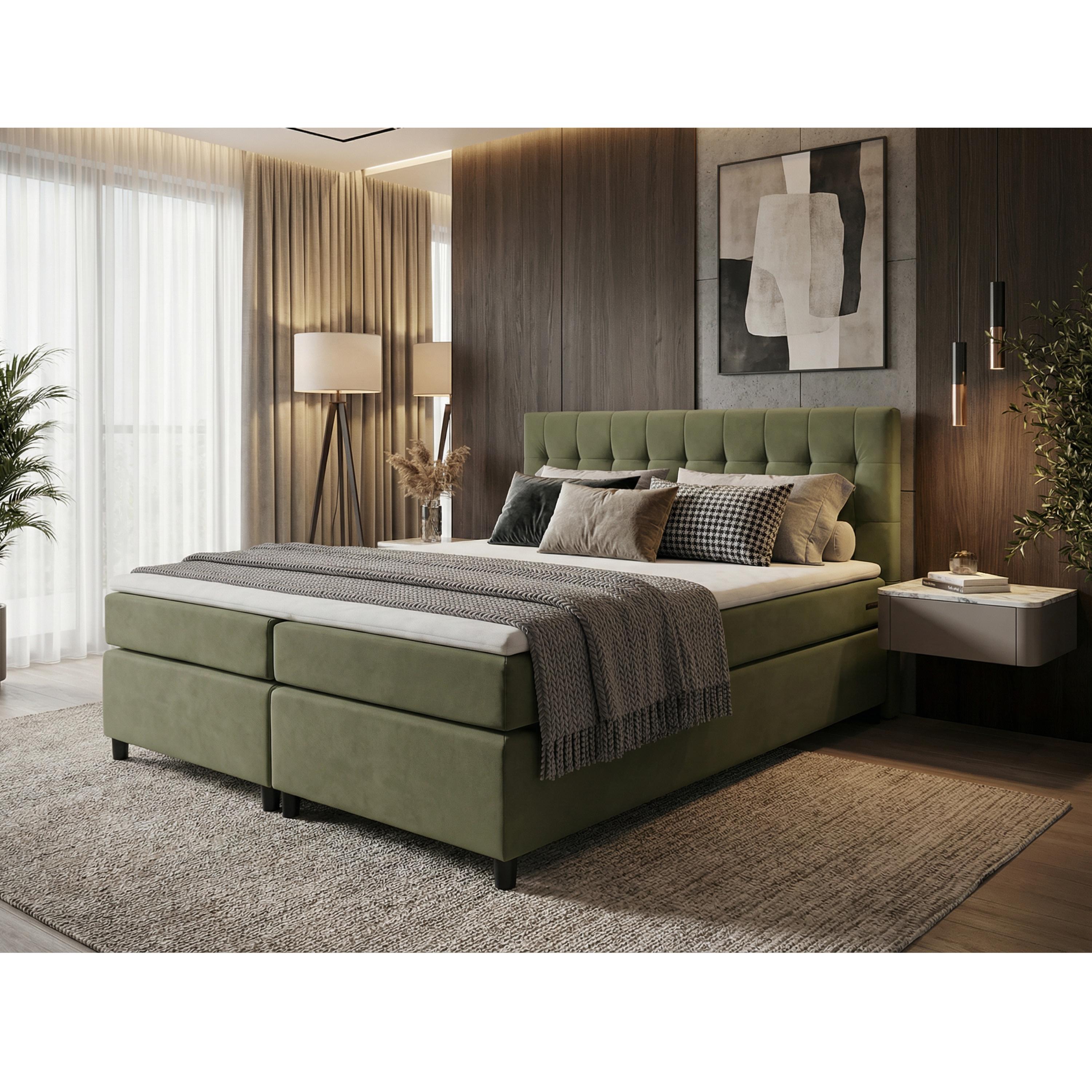 Postel s matrací a topperem BIRNA 2 BSB - olivová, 160x200 cm