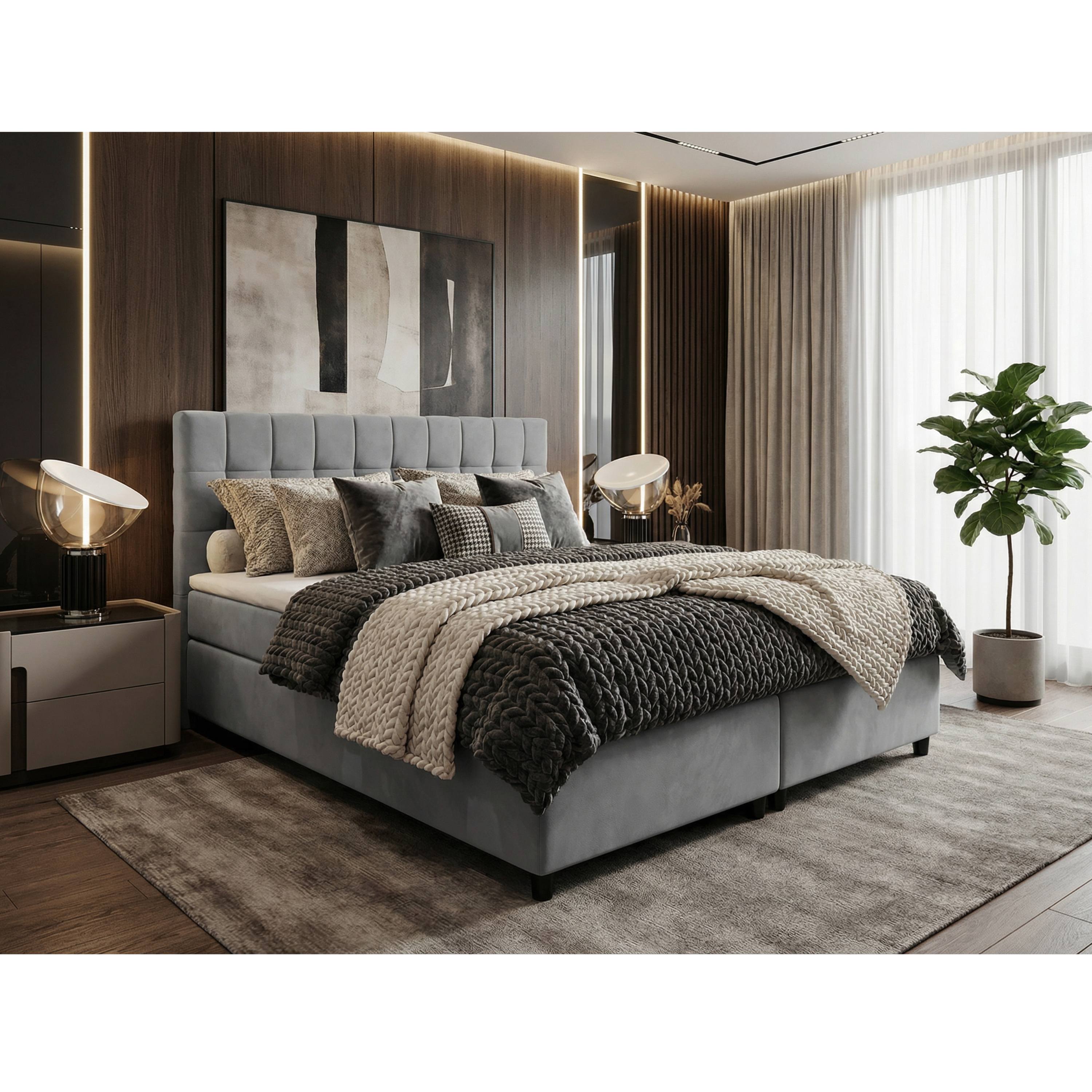 Postel s matrací a topperem BIRNA 2 BSB - světle šedá, 180x200 cm