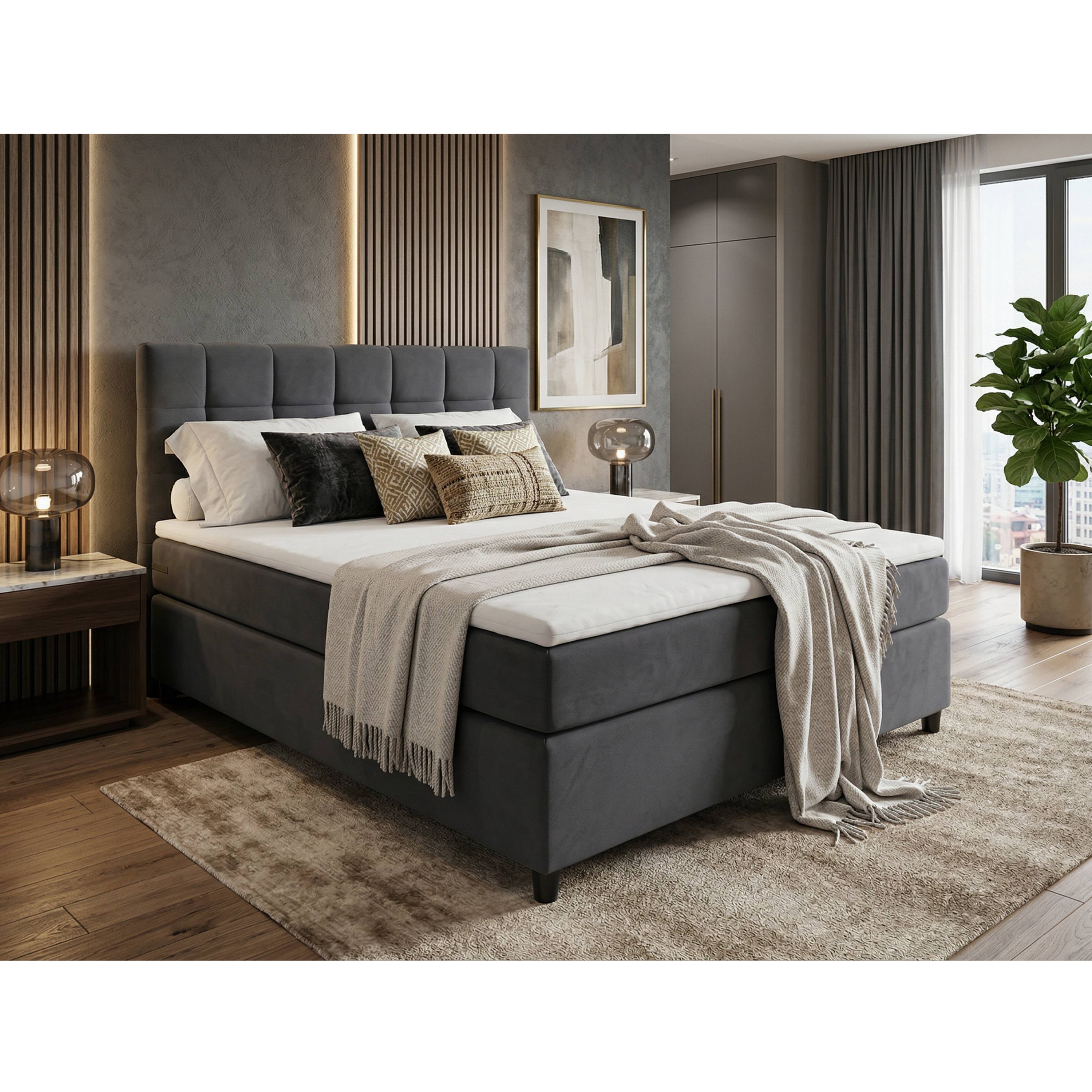 Postel s matrací a topperem BIRNA 2 BSB - tmavě šedá, 120x200 cm