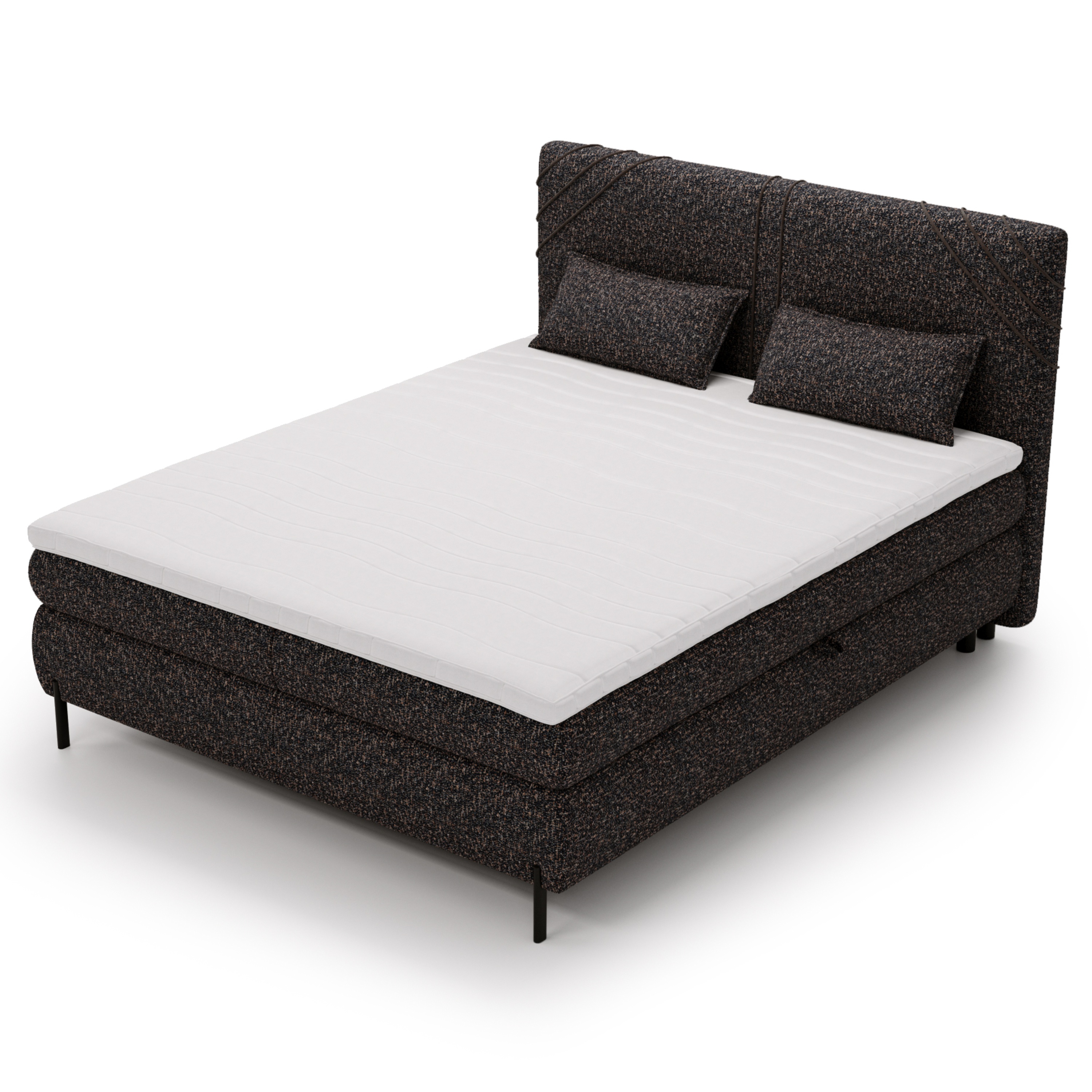 Postel s matrací a topperem CHOCO - grafitová, 180x200 cm