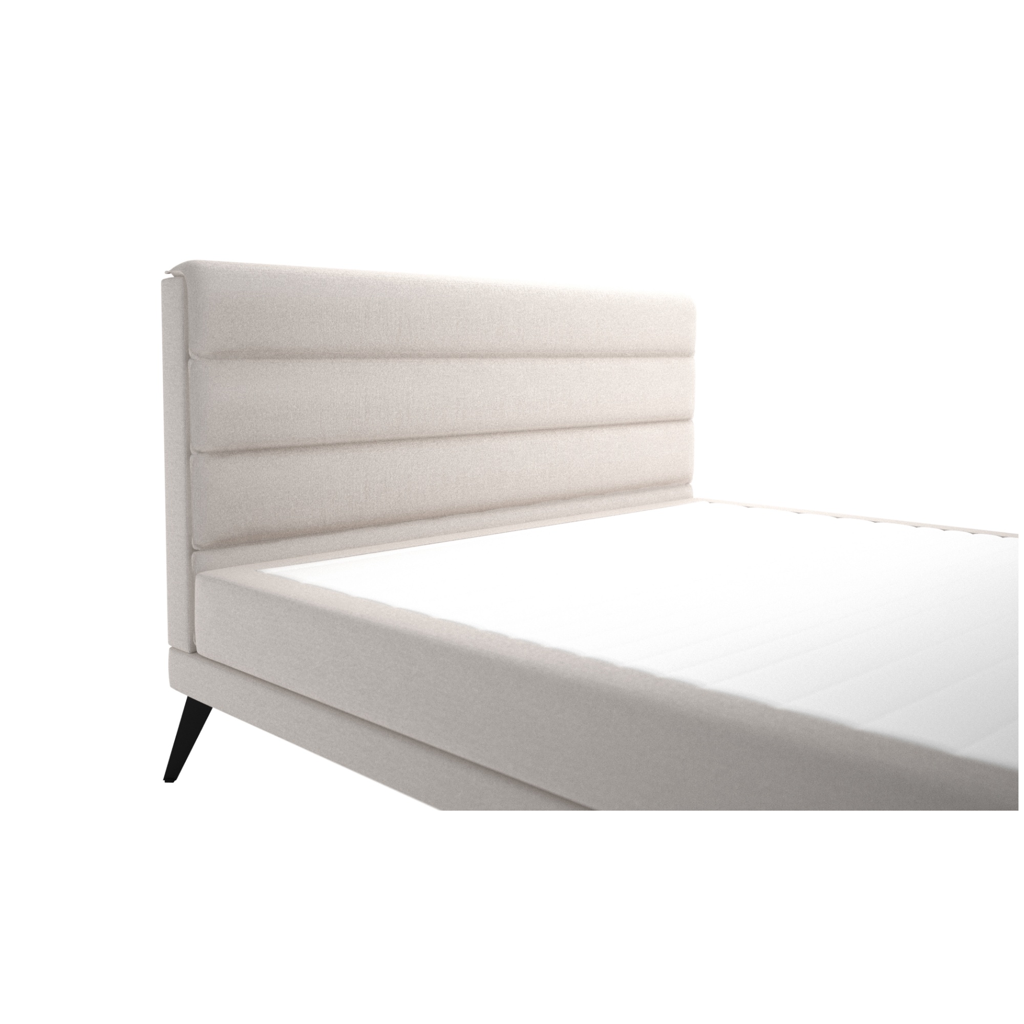 Tvořena je masivním smrkovým rámem čalouněným velmi příjemnou hladkou tkaninou. Na lamelovém roštu je pak volně vložená matrace z kvalitní studené pěny. Komfort navíc skvěle podtrhuje vysoké čalouněné čelo, které poskytne oporu při četbě oblíbených knih či sledování filmů a seriálů. Maximální stabilitu zajišťuje čtveřice designových kovových nohou.