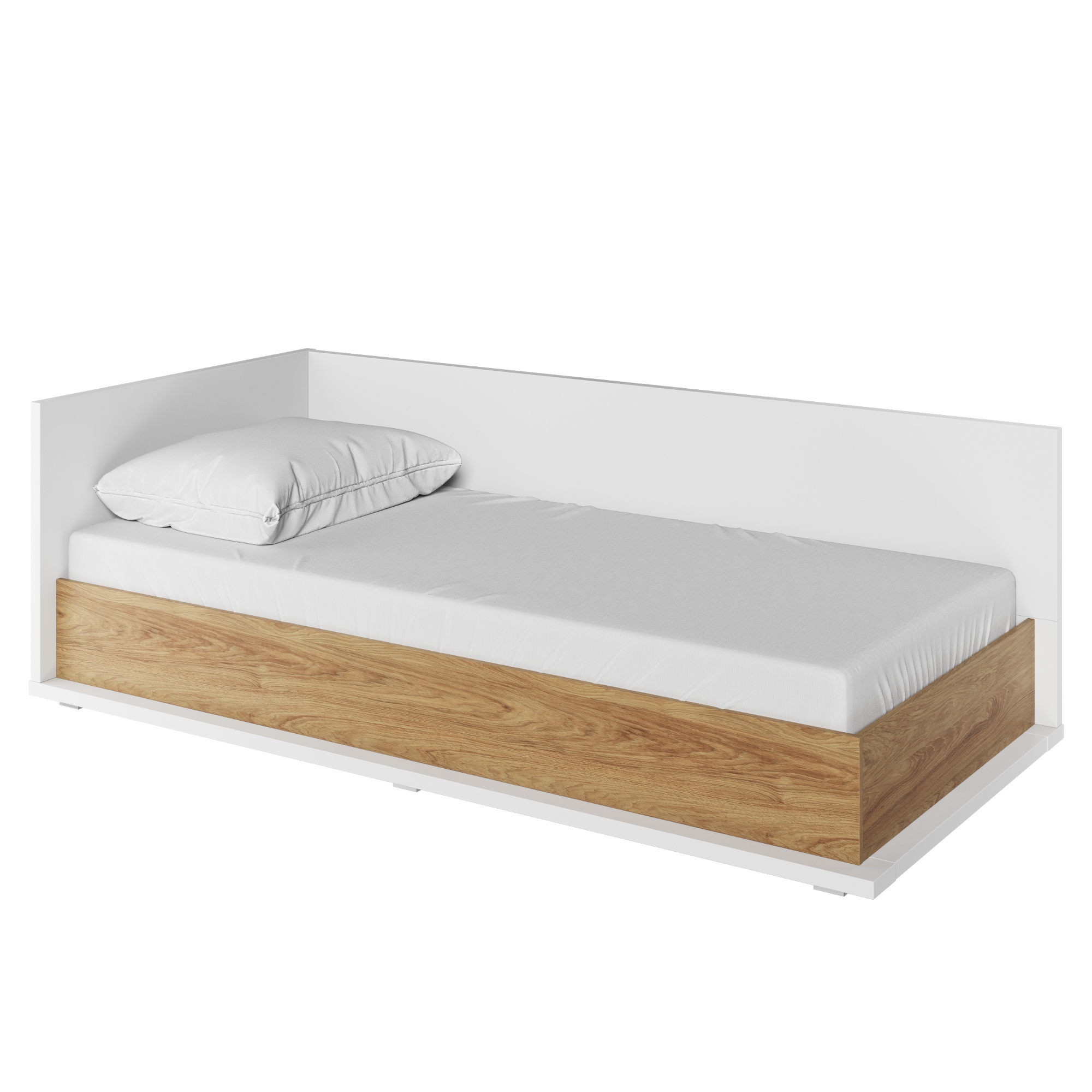Postel s matrací MASSI 09 - levá, dub hikora/bílá, 90x200 cm