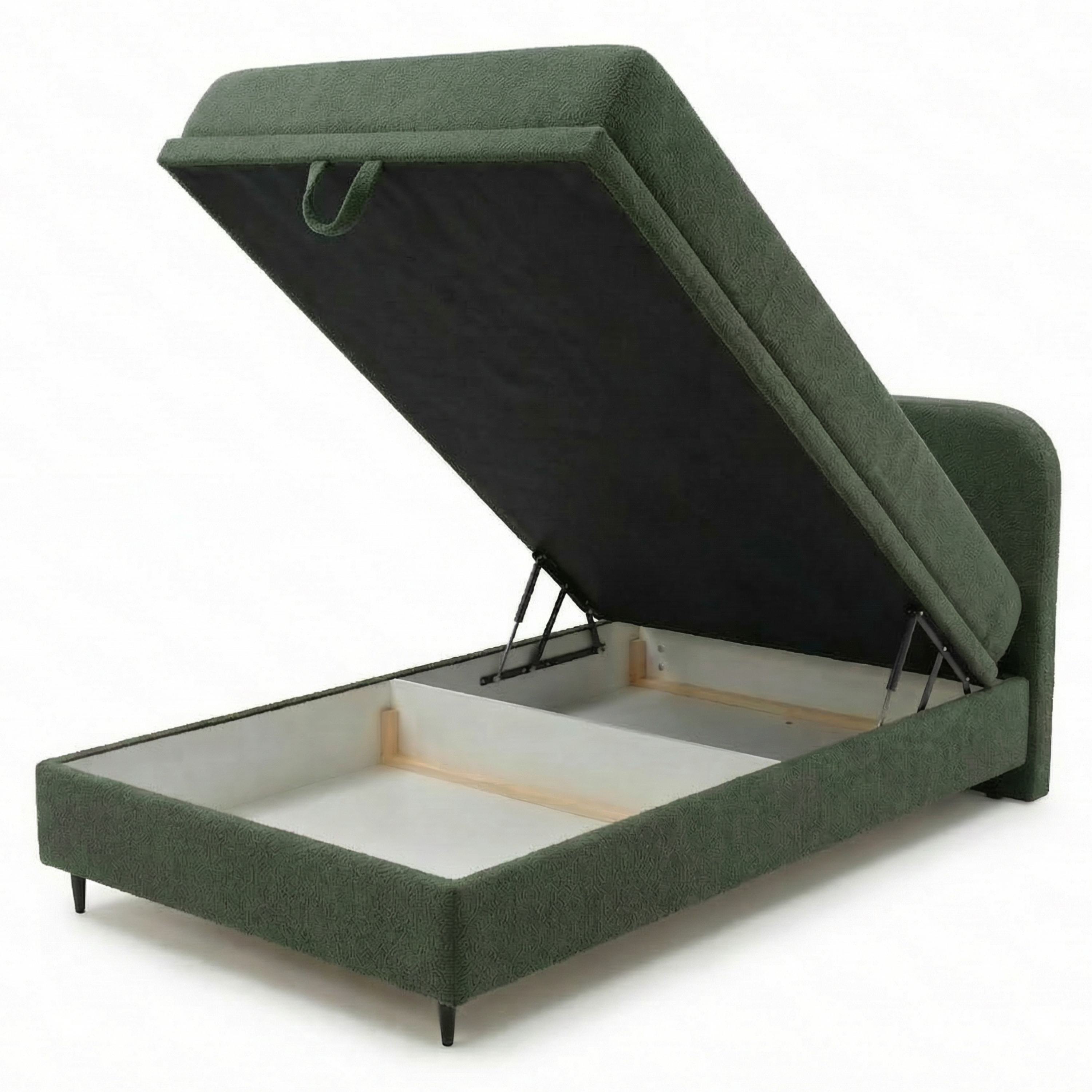 Postel je dodávána včetně 7-zónová matrace s jádrem z taštičkových pružin v kombinaci s pěnovou vrstvou. Pro skladování aktuálně nepoužívaných lůžkovin a dalších předmětů můžete využít členitý úložný prostor v rámu postele, který je snadno přístupný díky čelnímu výklopu matrace.