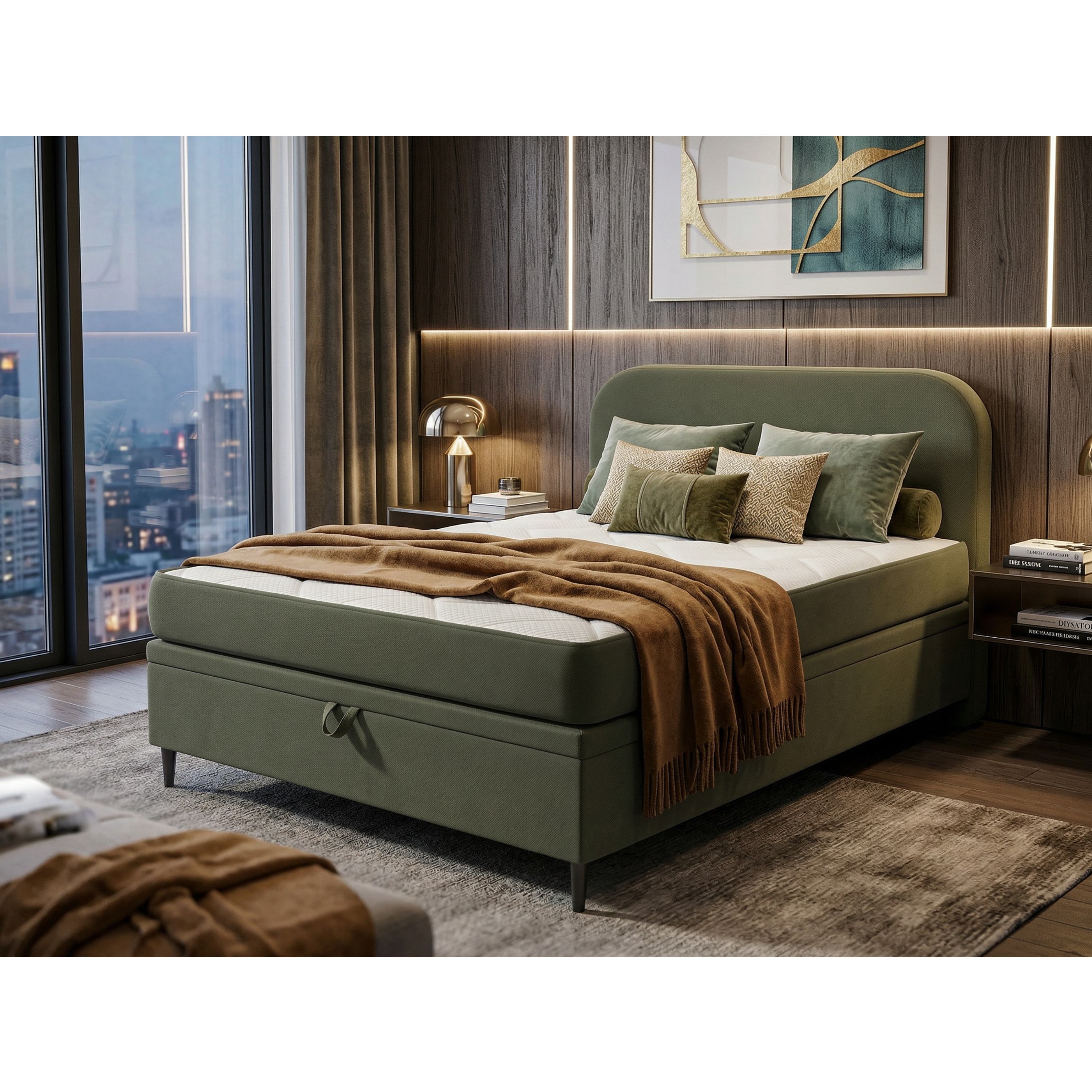 Postel s matrací MOREVIEW - olivová, 120x200 cm