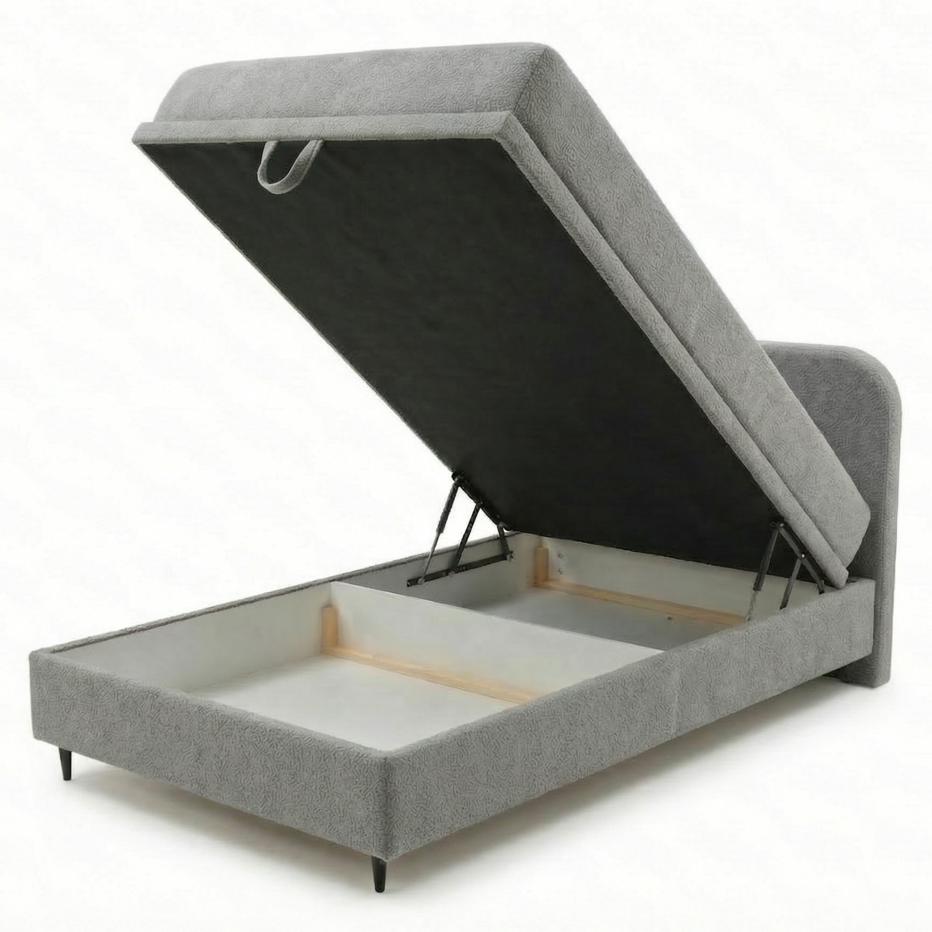 Postel je dodávána včetně 7-zónová matrace s jádrem z taštičkových pružin v kombinaci s pěnovou vrstvou. Pro skladování aktuálně nepoužívaných lůžkovin a dalších předmětů můžete využít členitý úložný prostor v rámu postele, který je snadno přístupný díky čelnímu výklopu matrace.